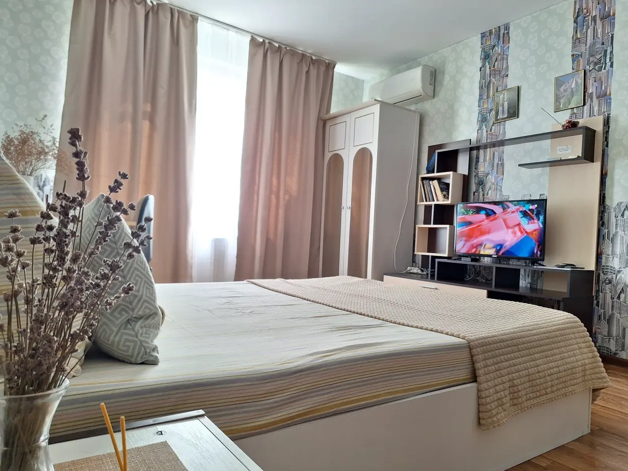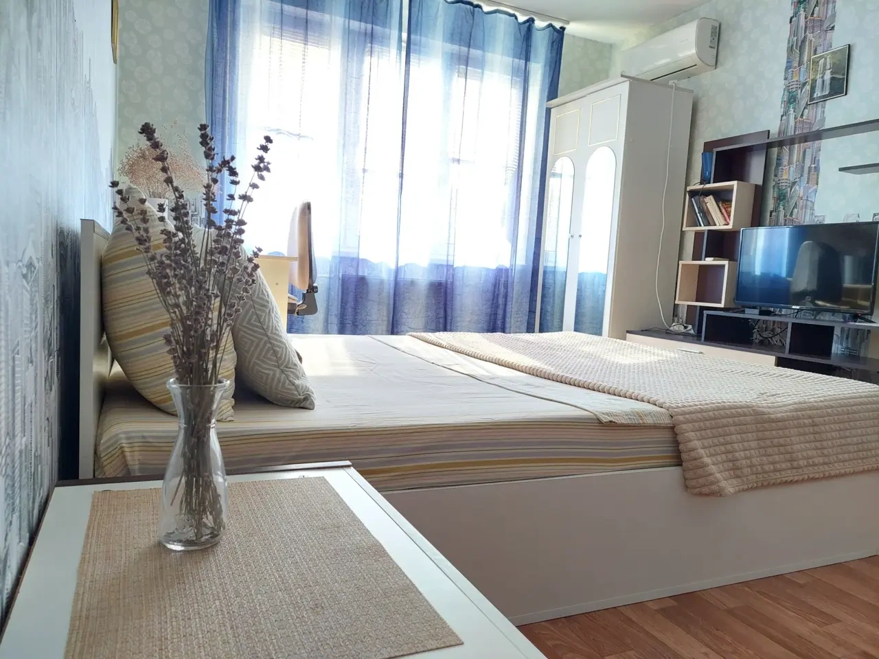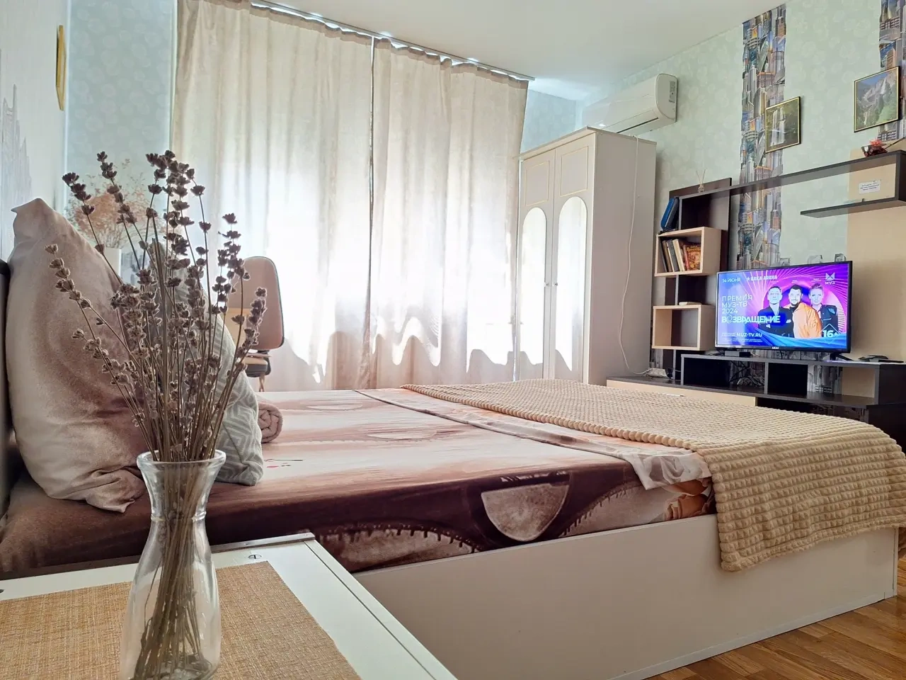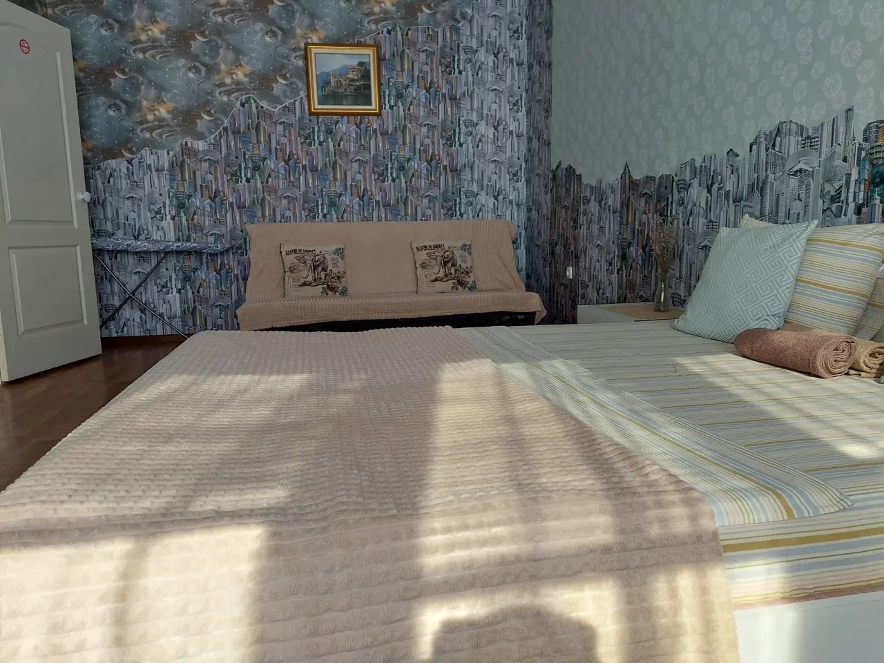 В комнате - шикарная кровать160×200 и раскладной 2-спальный диван 140×200.
