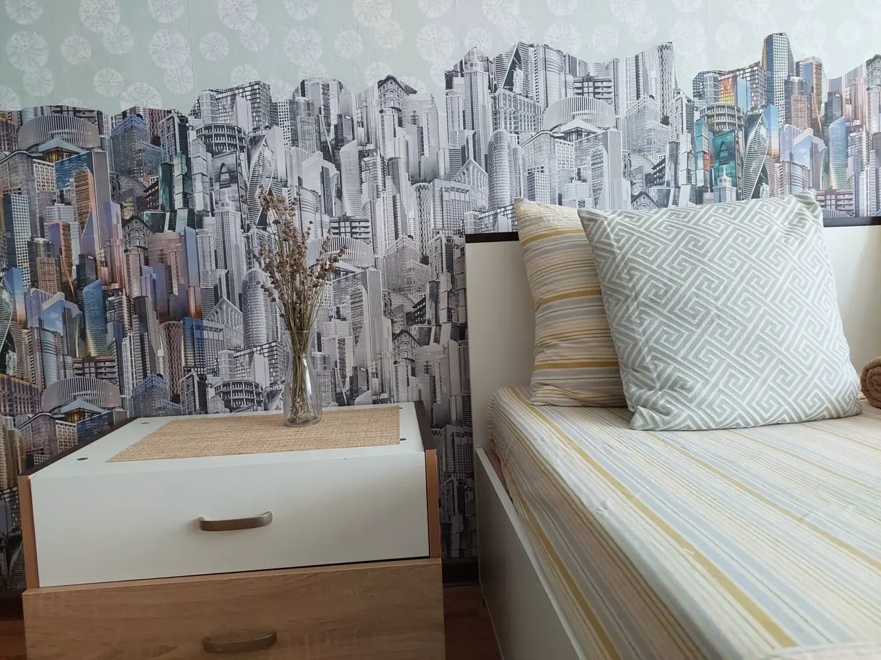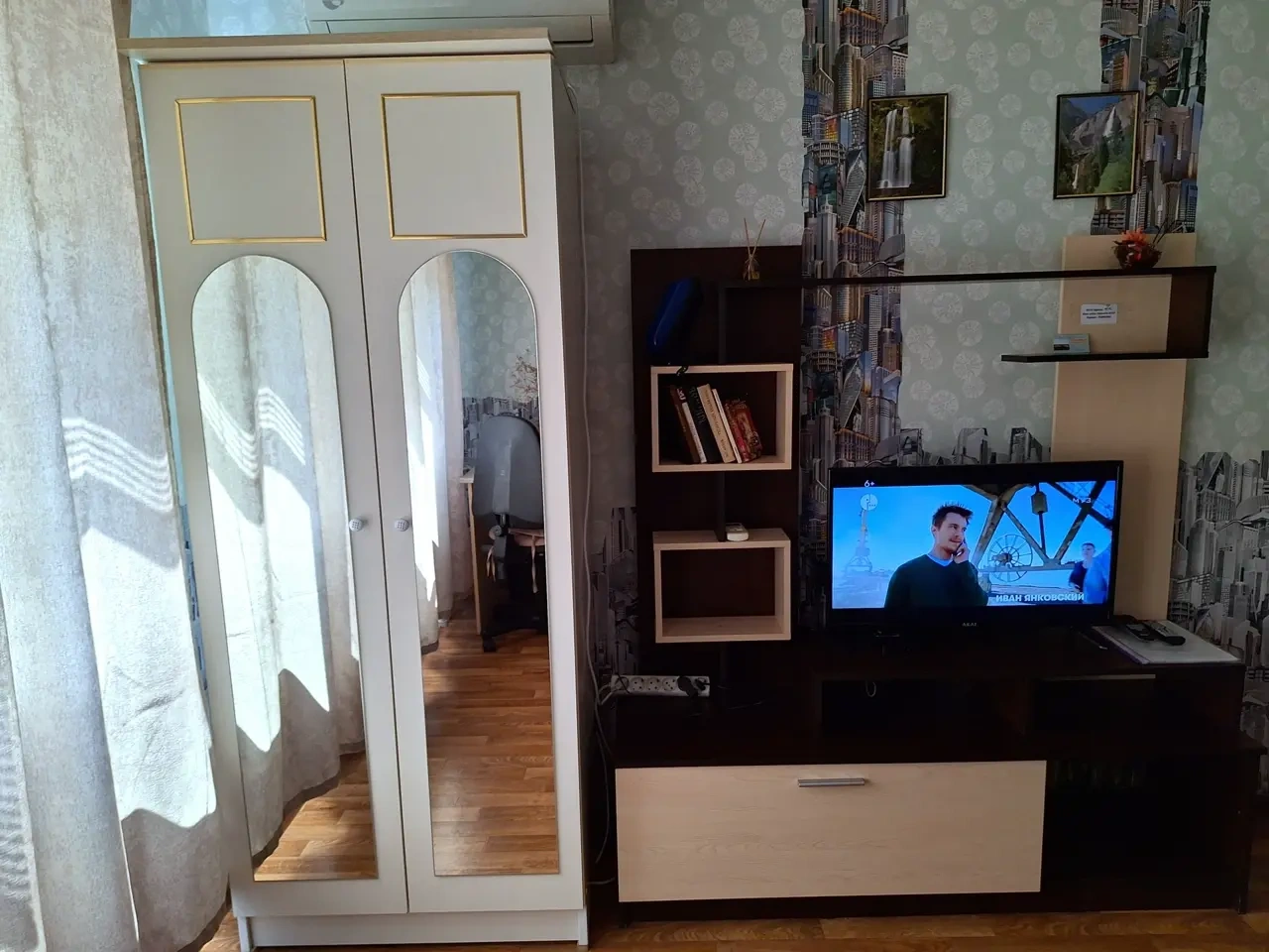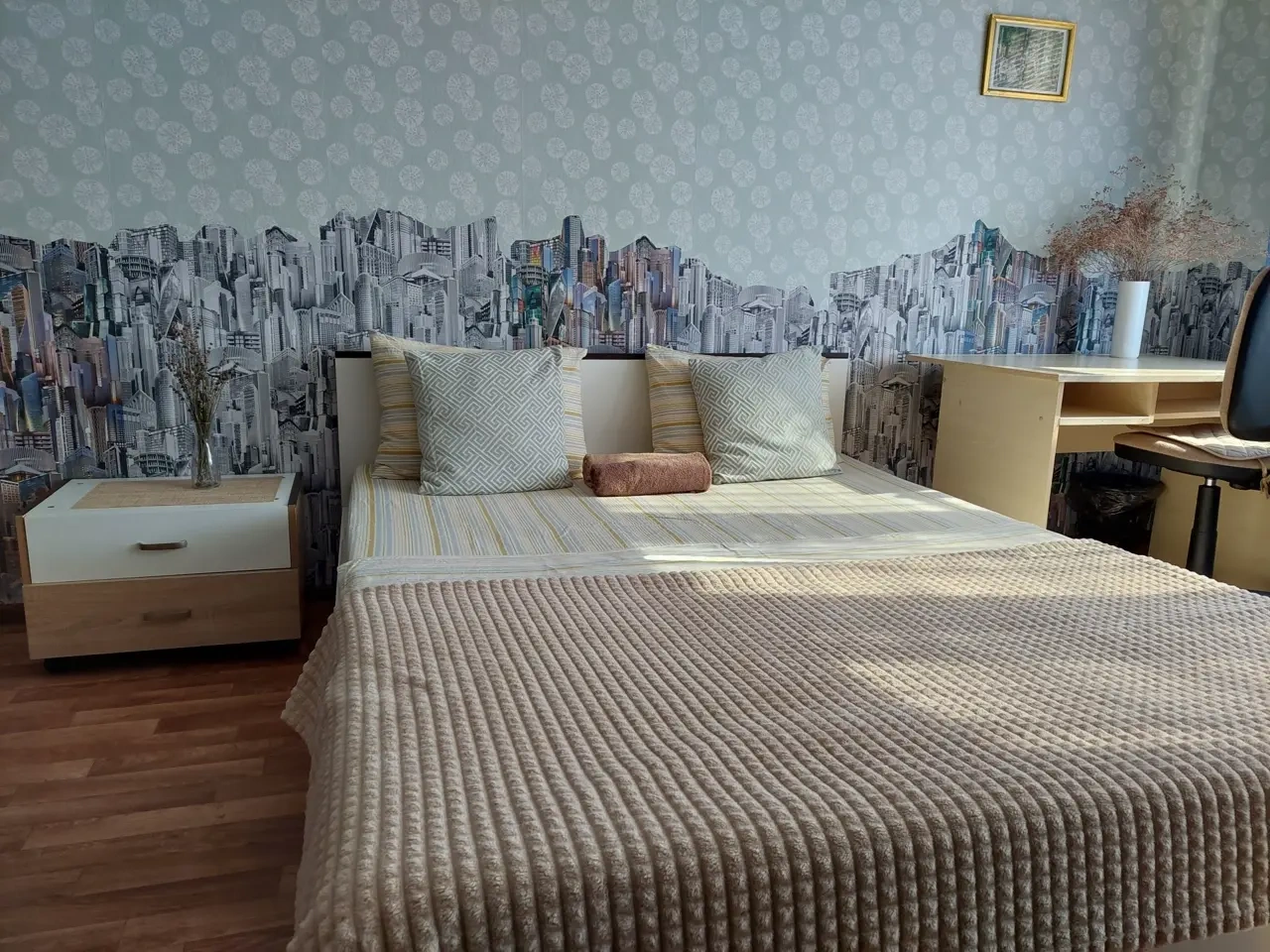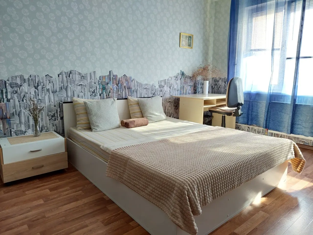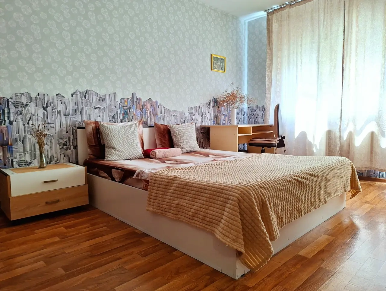 В комнате - шикарная кровать160×200 и раскладной 2-спальный диван 140×200.