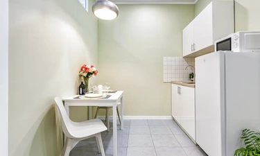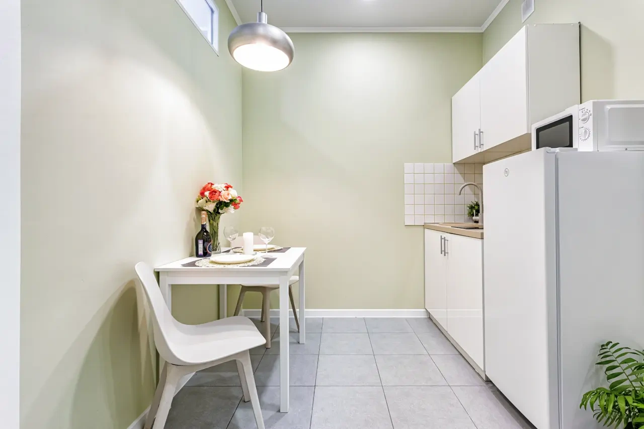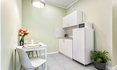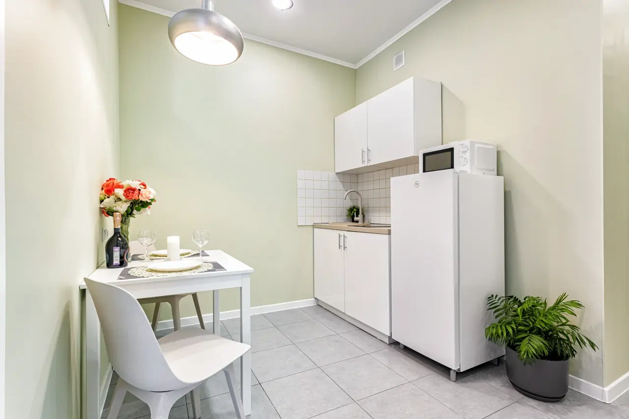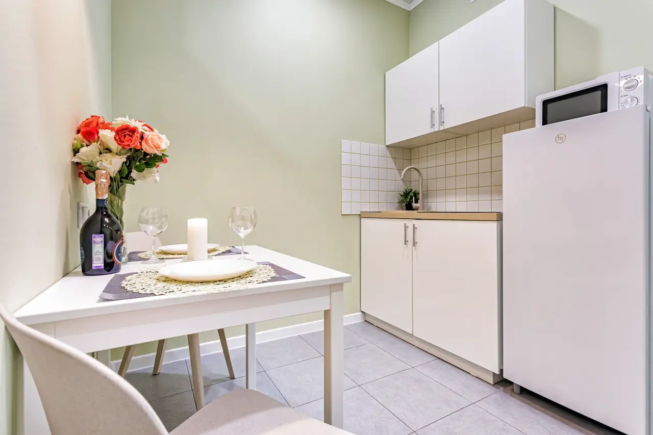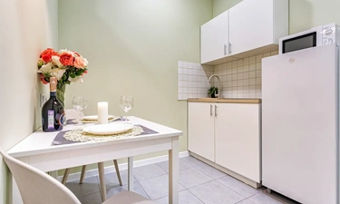 В апартаментах есть всё необходимое: бесплатный интернет, электрический чайник, варочная панель, микроволновая печь, холодильник, посуда. Также в распоряжении фен, стиральная машина, утюг, постельное белье и полотенца.