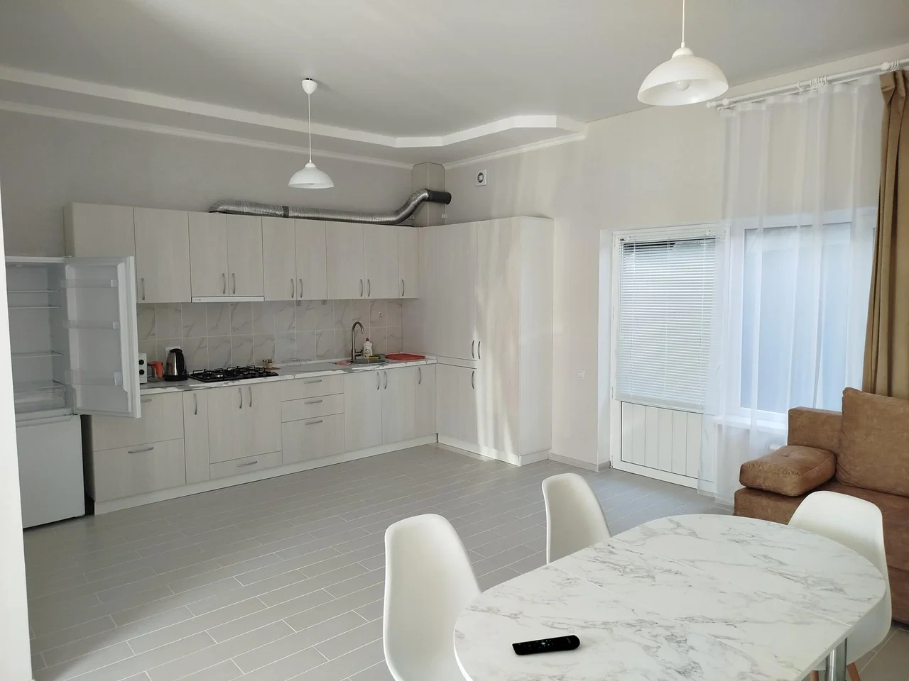 Таунхаус полностью мебелирован, укомплектован техникой, есть посуда. Большая парковка, Wi-Fi и телевидение во всех комнатах.