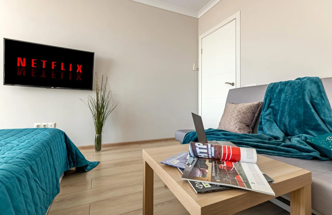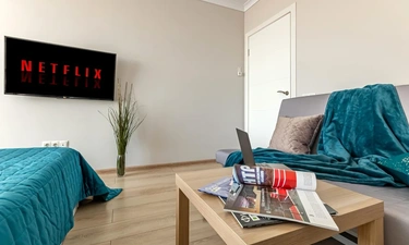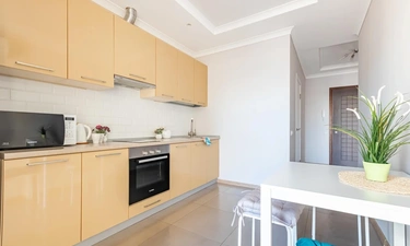 двуспальная кровать, диван 2-х местный, телевизор, шкаф, кухня со всей бытовой техникой, стол обеденный, стулья, беспроводной Wi-Fi , кабельное телевидение.