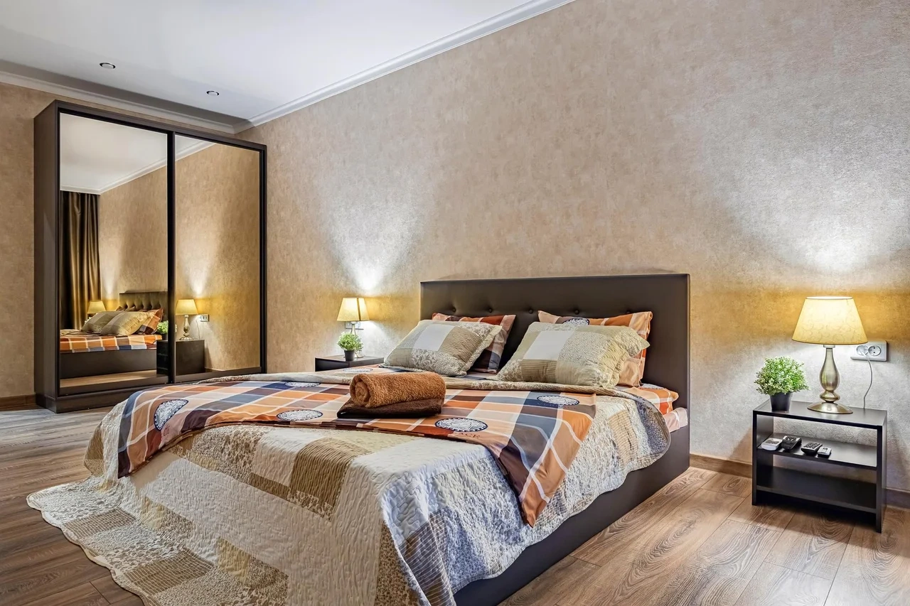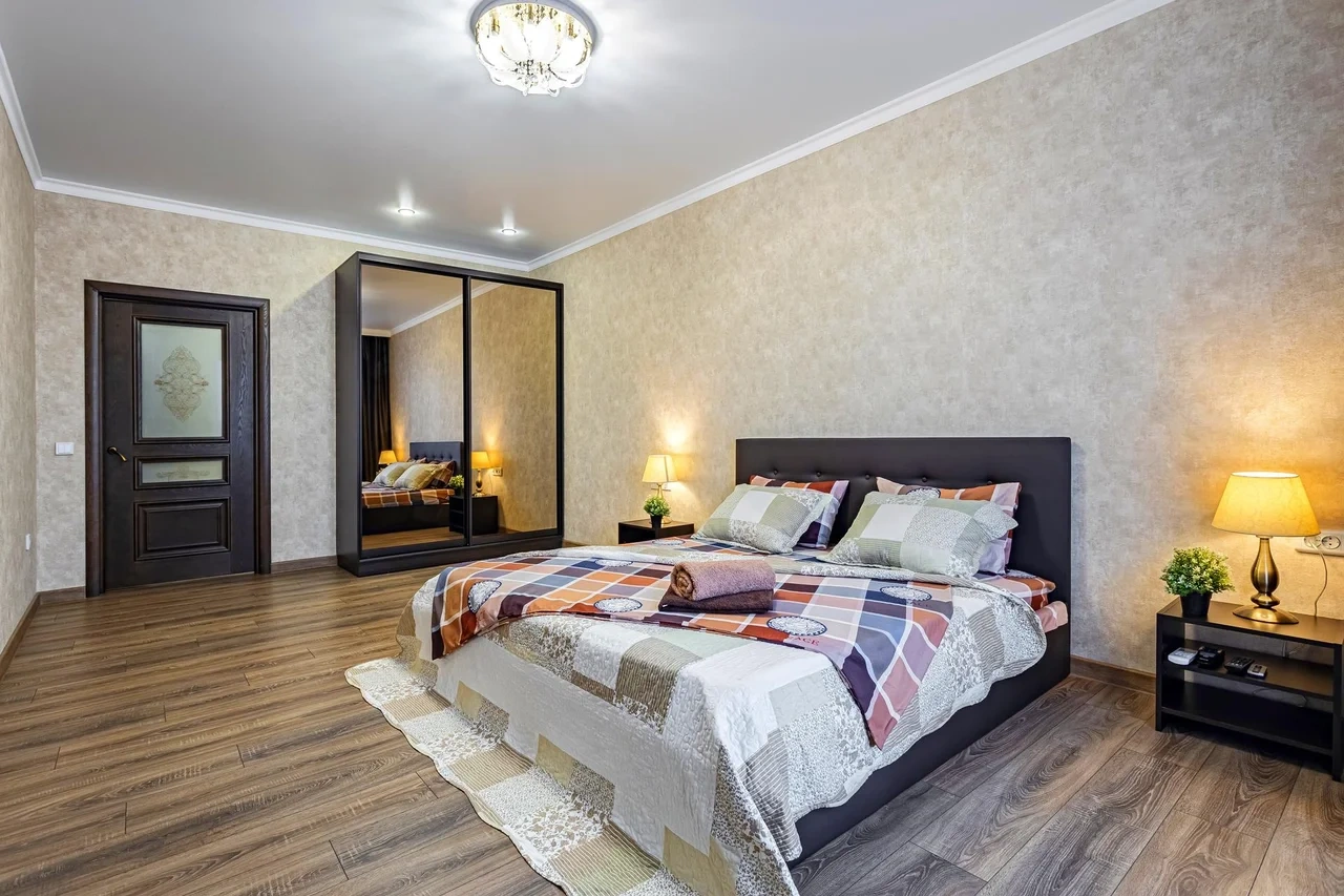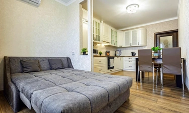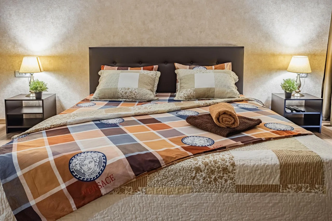 Удобное размещение от 1 до 4 человек. (большая 2-спал. кровать KingSize с ортопед.матрасом, + 2-спал. расклад. диван).