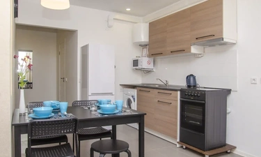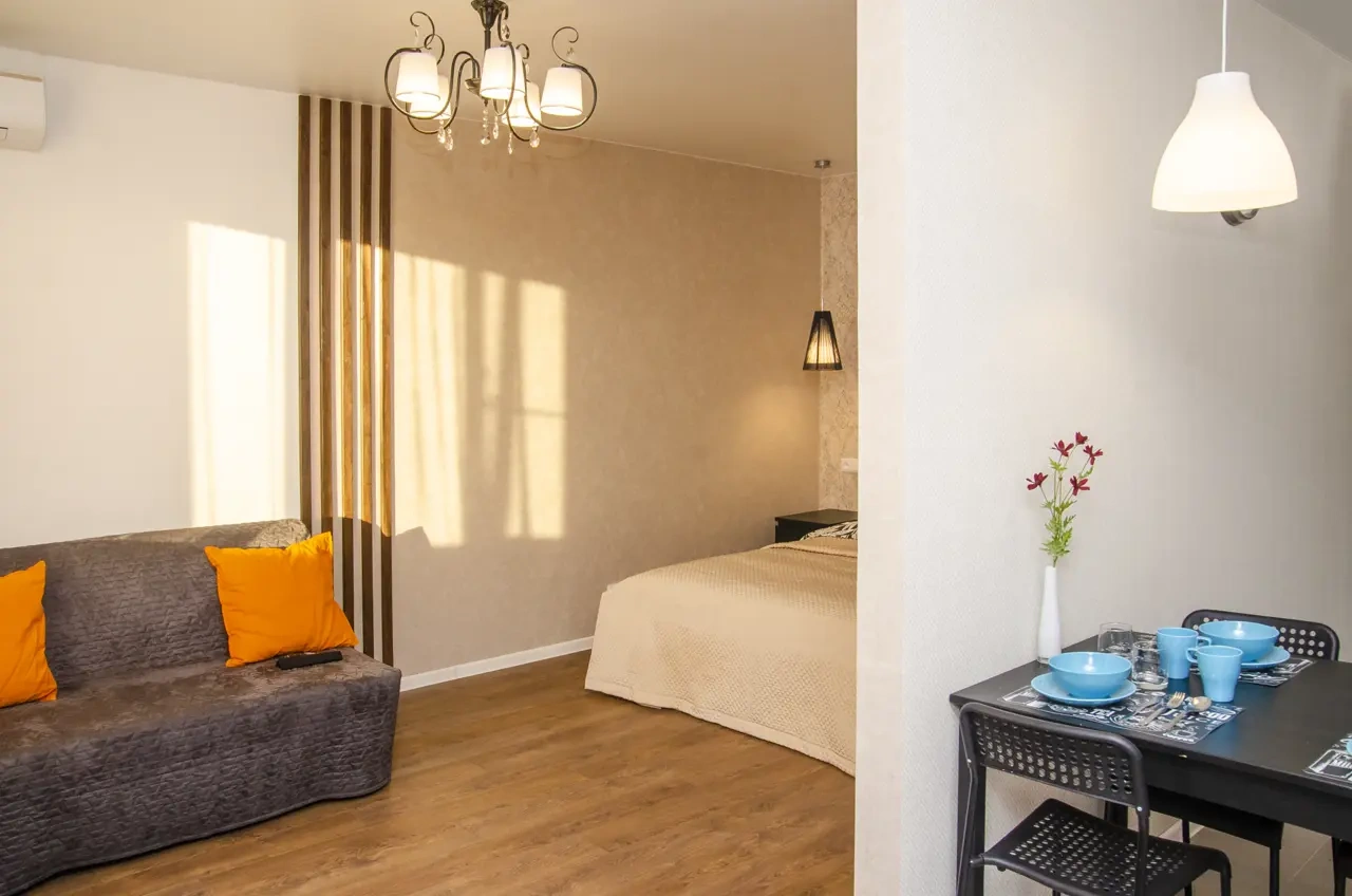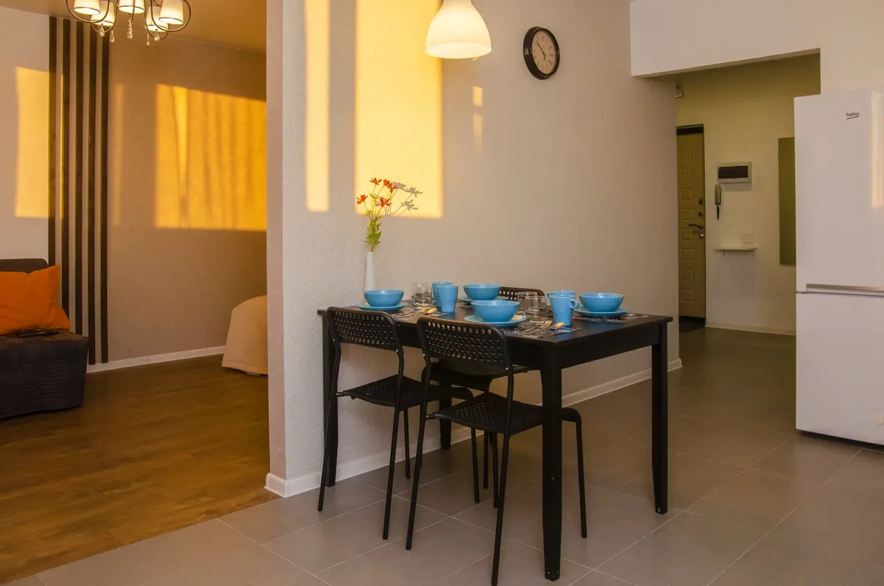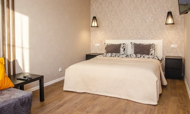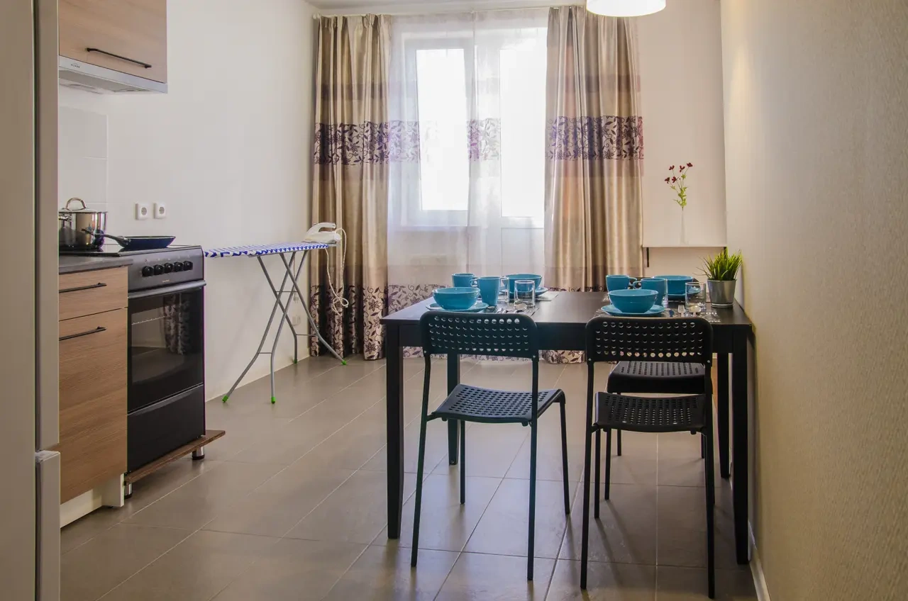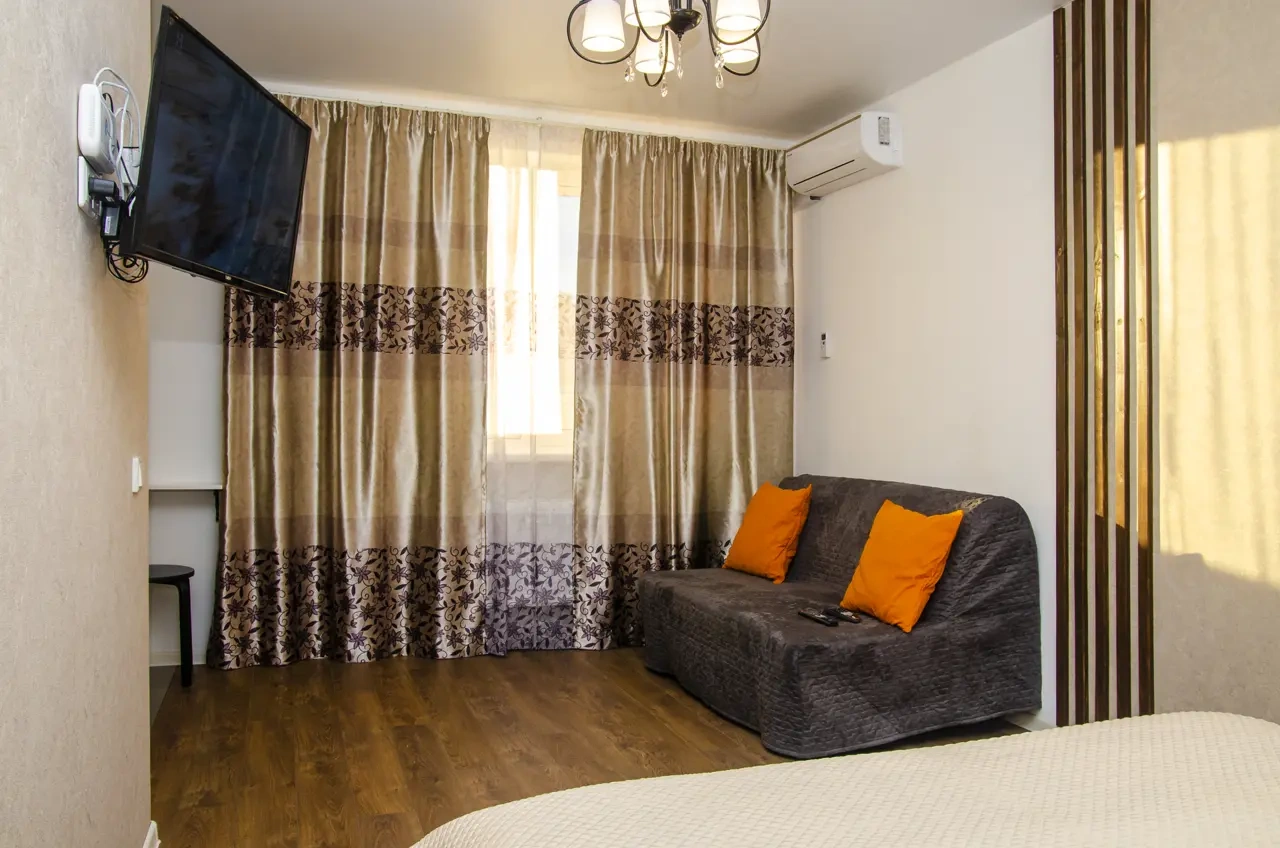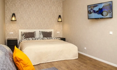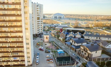 Однокомнатная квартира в новом доме со свежим ремонтом в Краснодаре посуточно находится в шаговой доступности от «Города спорта», в который вошли Ледовый дворец, баскетбольная арена «Баскет Холл» и комплекс тренировочных залов «Чемпион».