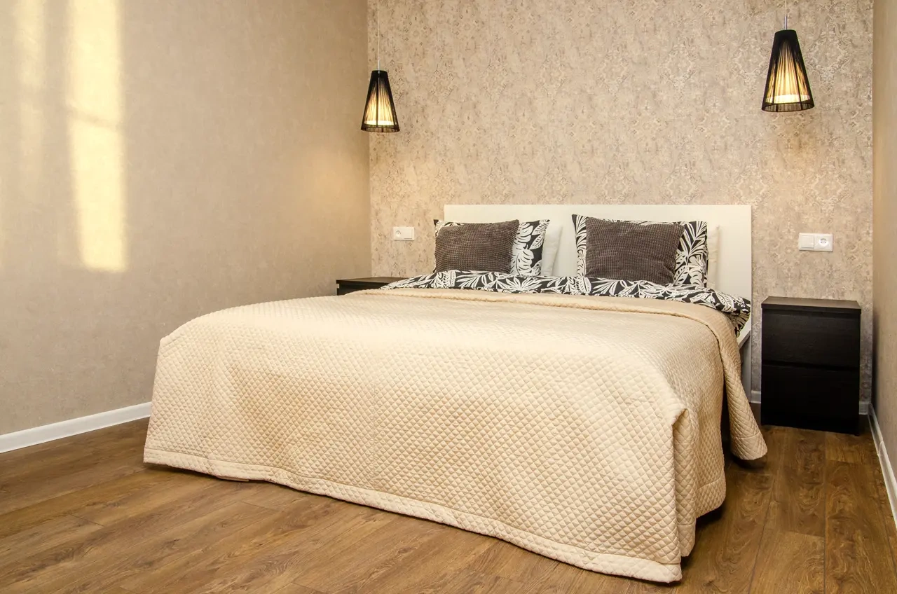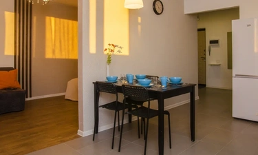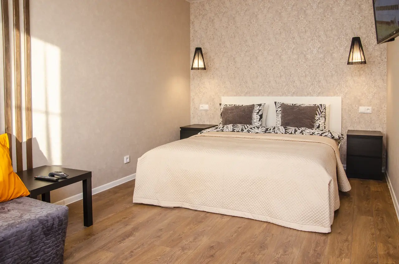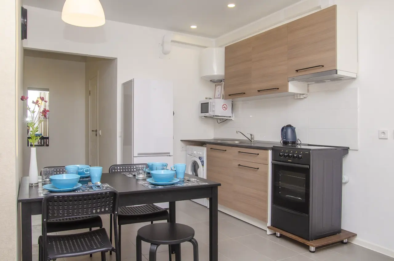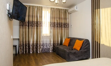 К услугам гостей двуспальная кровать и удобный диван, телевизор с плоским экраном и бесплатный Wi-Fi, сплит-система. На кухне имеется холодильник, микроволновка, ,варочная плита, духовой шкаф, бойлер, электрочайник и кухонные принадлежности, стиральная машина, утюг с гладильной доской, сушилка для белья. Все фото настоящие, квартира в реальности выглядит именно так, как на картинке – не агенство.