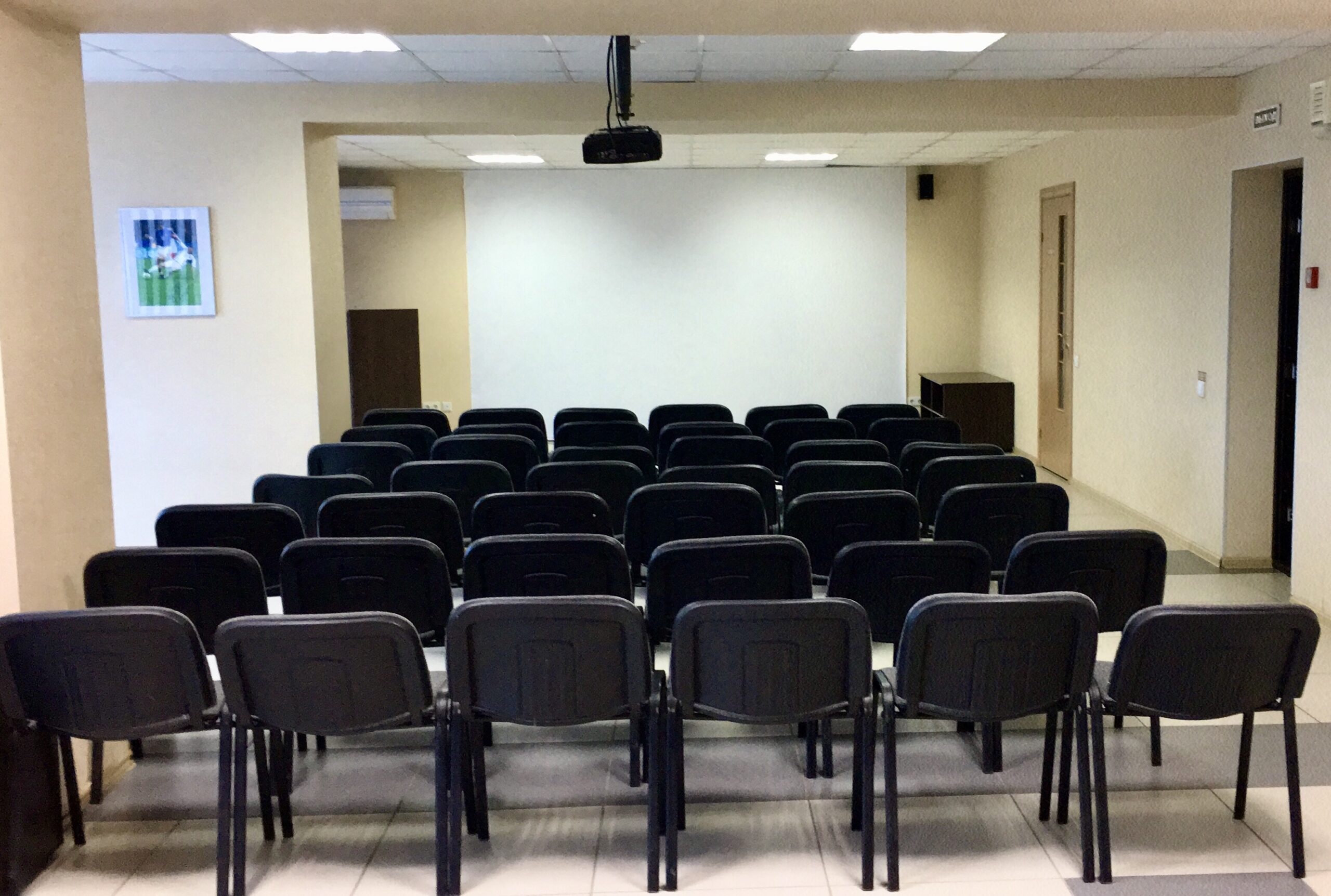 4 этаж здания оборудован конференц-залом, с оборудованием (колонки, ноутбук, проектор) вместимостью до 60 человек.