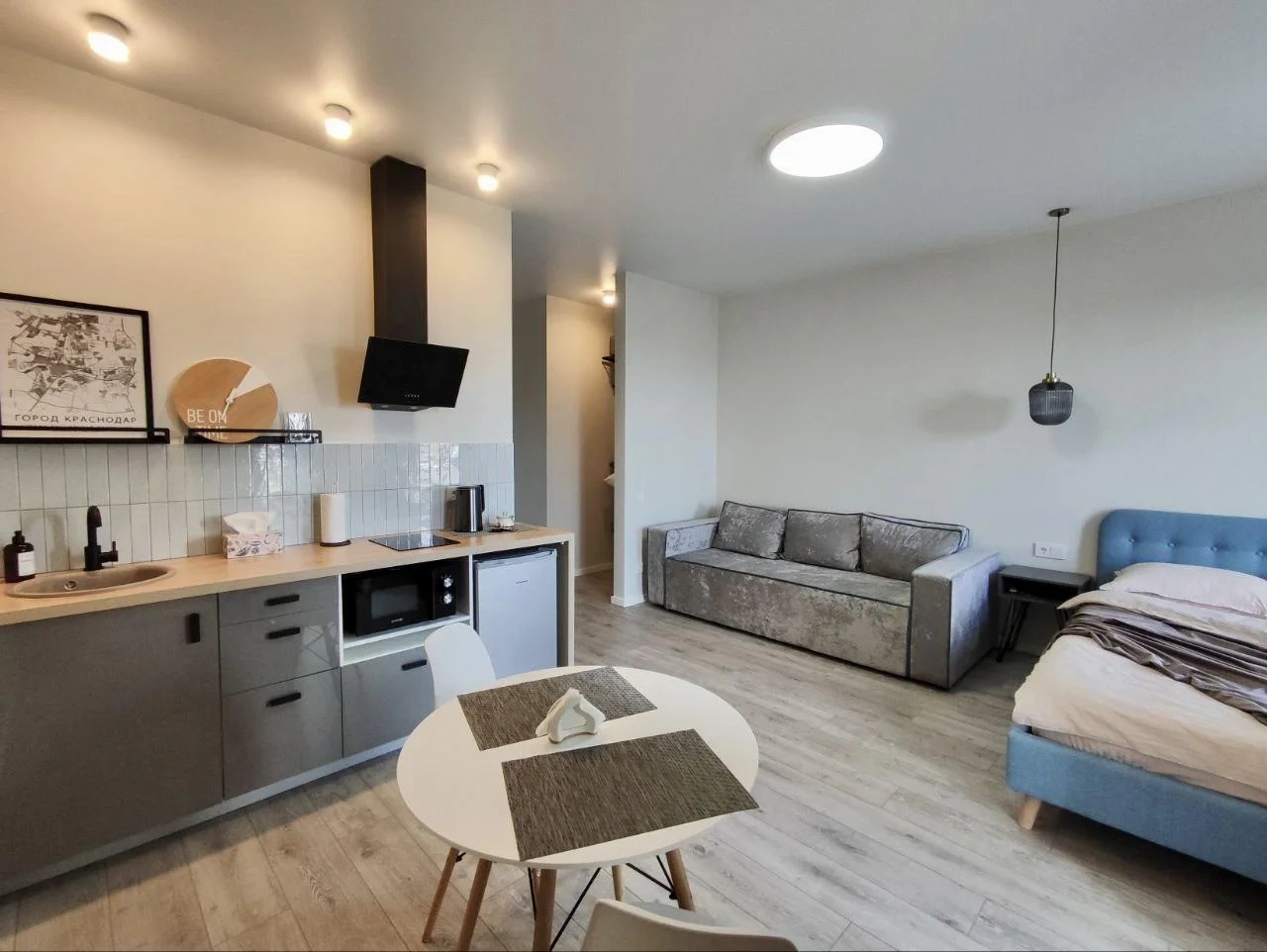 В квартире есть все необходимое для комфортного проживания: мебель, бытовая техника, посуда для приготовления и приема пищи, гладильная доска и сушка. Также в квартире есть интернет Wi-Fi, сплит-система и смарт-TV.