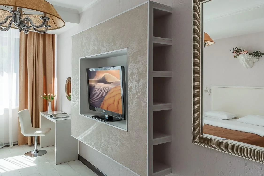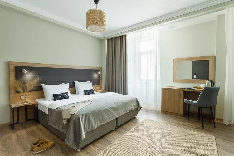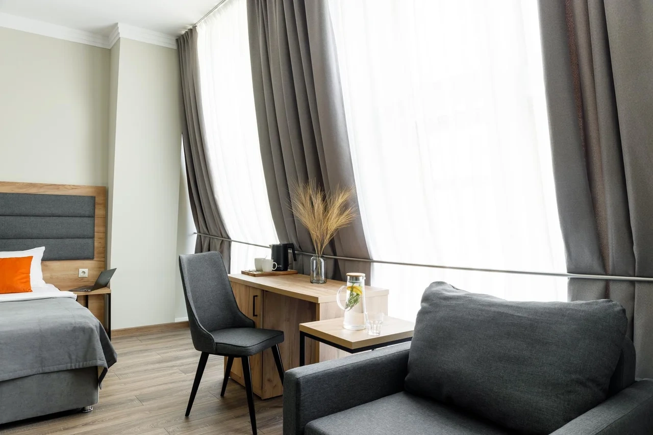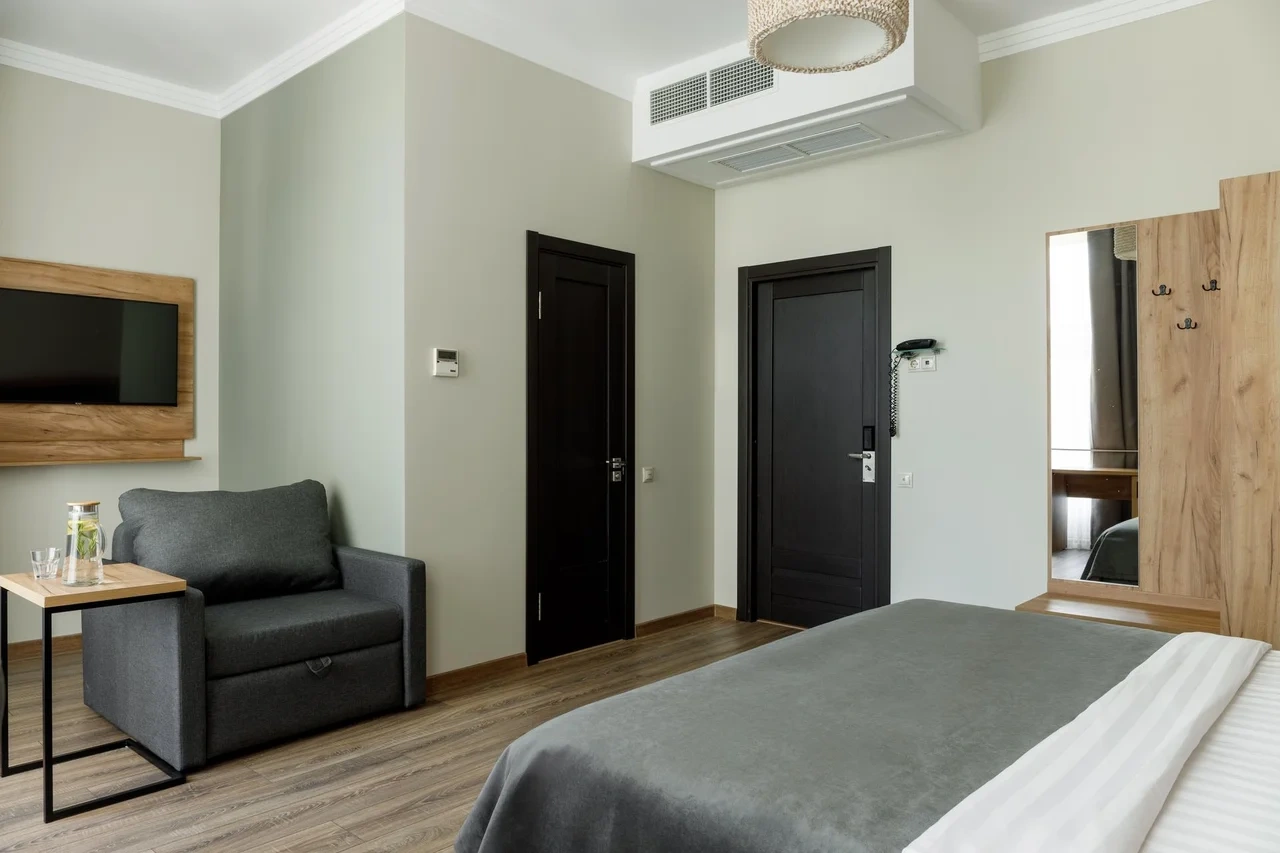 Просторный комфортный одноместныйдвухместный номер категории "Стандарт." Номер можно оснастить дополнительным местом или детской кроваткой (по запросу). Размещение детей до 3-х лет бесплатно. Предоставляется манеж. Размещение детей от 3-х до 12 лет взимается дополнительная плата 600 рублей с предоставлением дополнительного места. Размещение детей с 12 до 18 лет взимается дополнительная плата 1000 рублей с предоставлением дополнительного места.