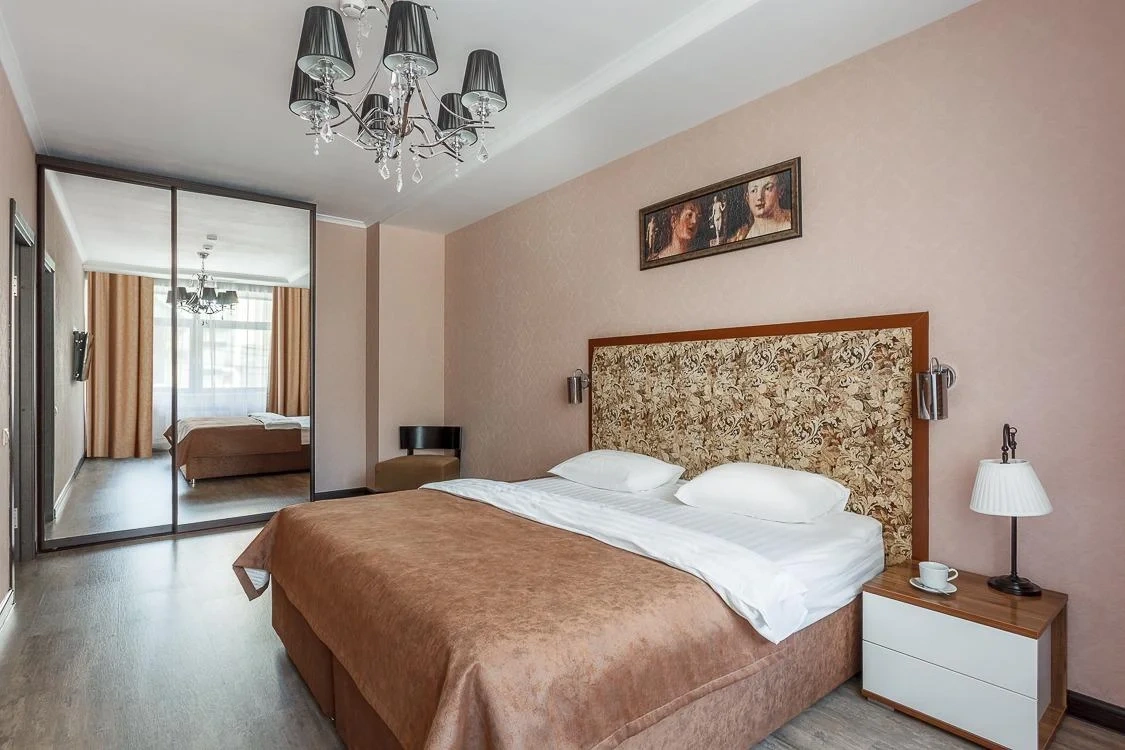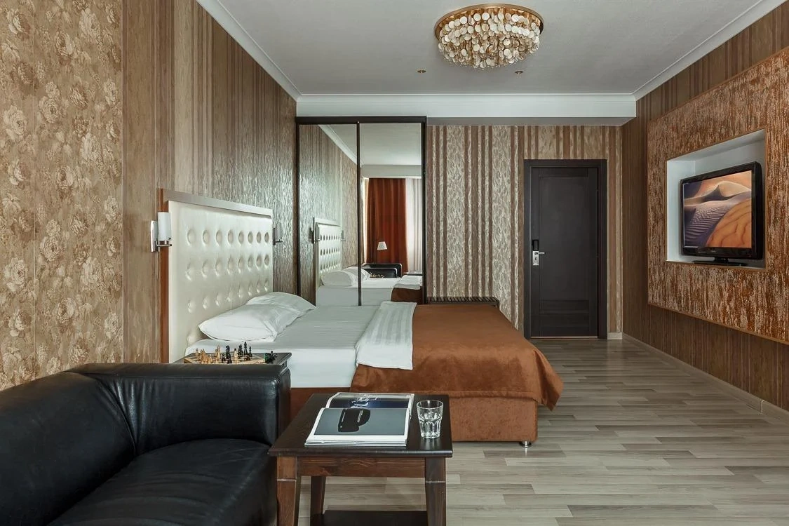 Просторный 2-х комнатный номер. Отдельная гостиная комната с диваном, 2-мя креслами и журнальным столиком и спальня. Большая ванная комната с ванной и душем. Предоставляется манеж. Размещение детей от 3-х до 12 лет взимается дополнительная плата 900 рублей с предоставлением дополнительного места. Размещение детей с 12 до 18 лет взимается дополнительная плата 1500 рублей с предоставлением дополнительного места.