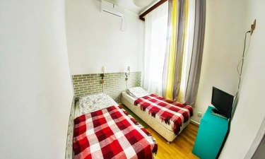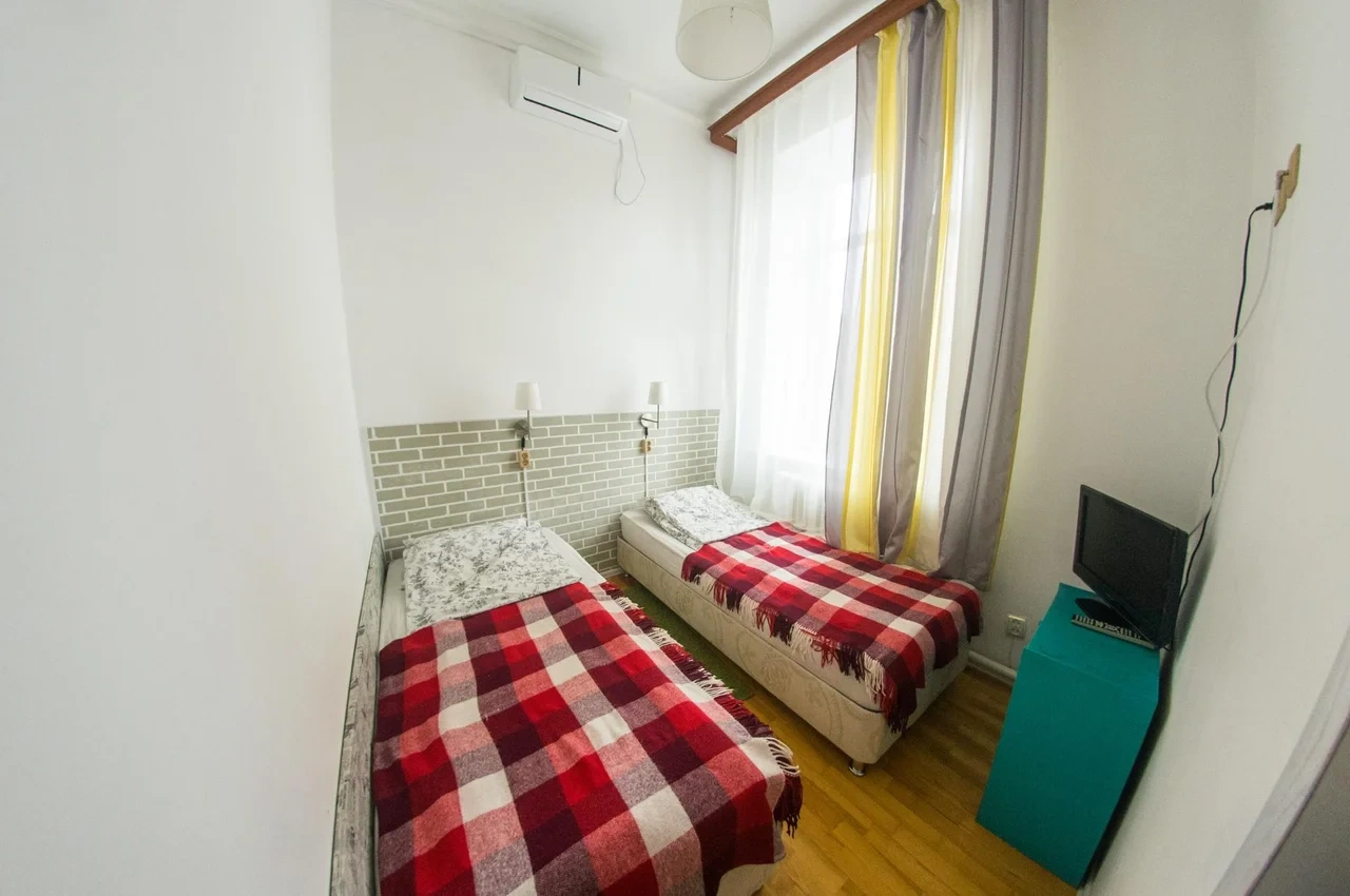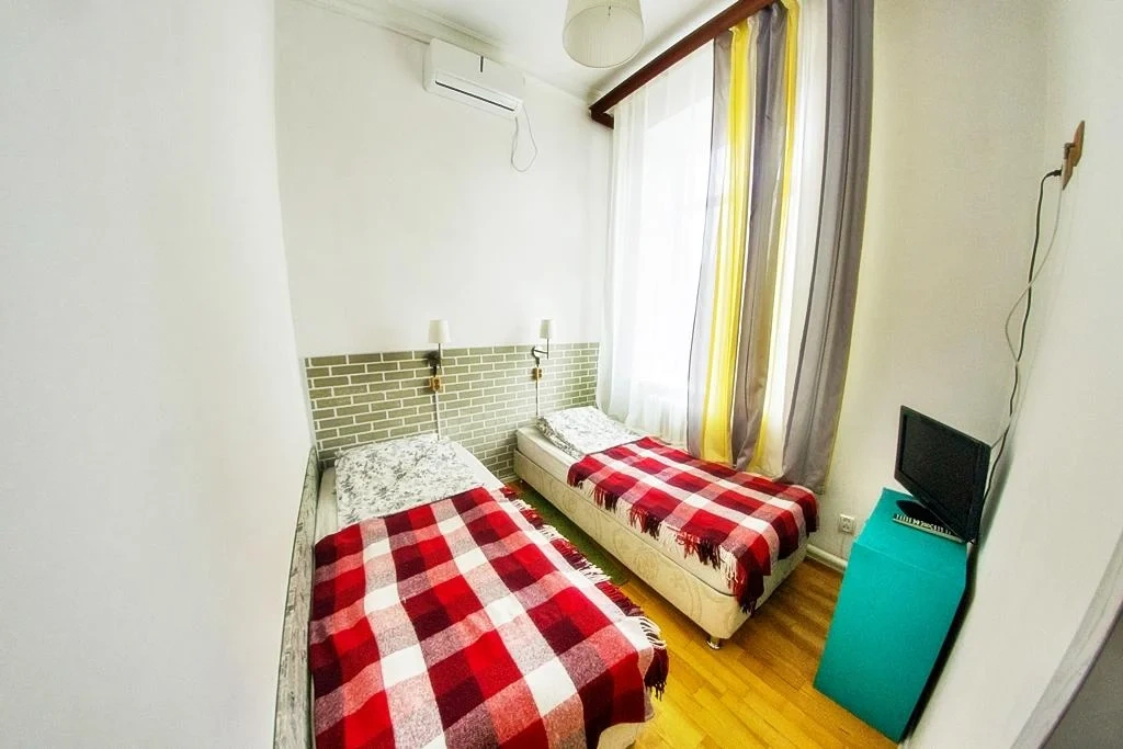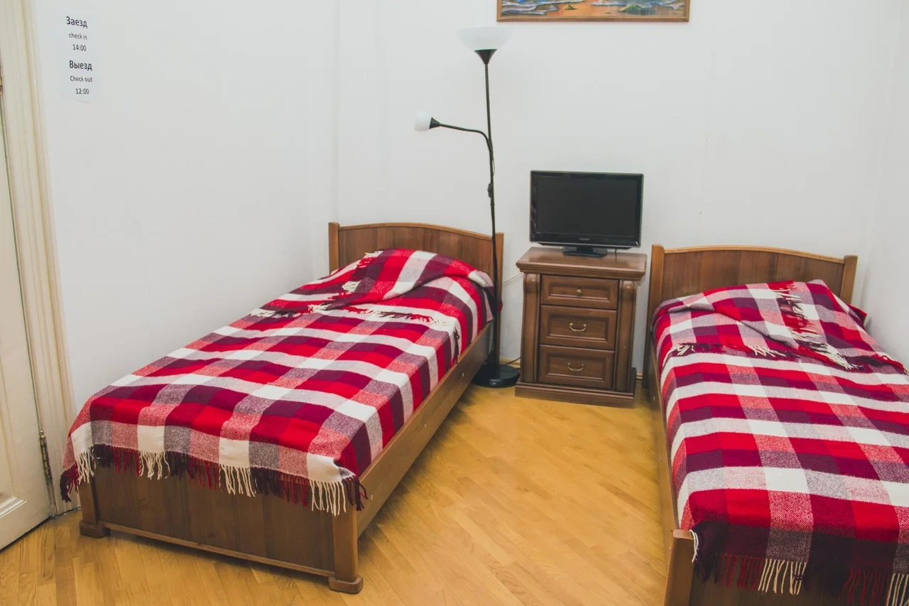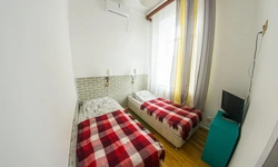 Комфортный светлый номер с двумя односпальными кроватями размером 90*200см., которые легко трансформируются в большую двуспальную кровать 180*200см., ортопедические матрасы порадуют вашу спину, тумбочка, зеркало, вешалки, телевизор с DVD плеером и большая коллекция фильмов бестселлеров, сплит-система, Wi-Fi. В стоимость проживания входит постельное белье, полотенце, пользование кухней, гостиной. За отдельную плату можно приобрести предметы личной гигиены и тапочки. Цена указана за номер! Выгода очевидна всего 550₽ с человека! Завтрак каша овсяная и кофе или чай на выбор - 30₽ Парковка на закрытой территории хостела - 150₽ Заезд с 14.00, выезд в 12.00, ранний заезд и поздний выезд оплачиваются дополнительно по прайсу.