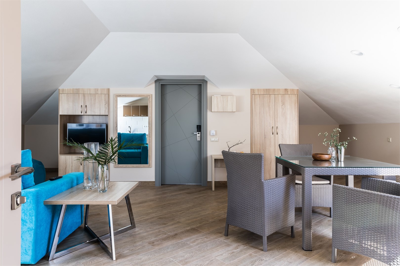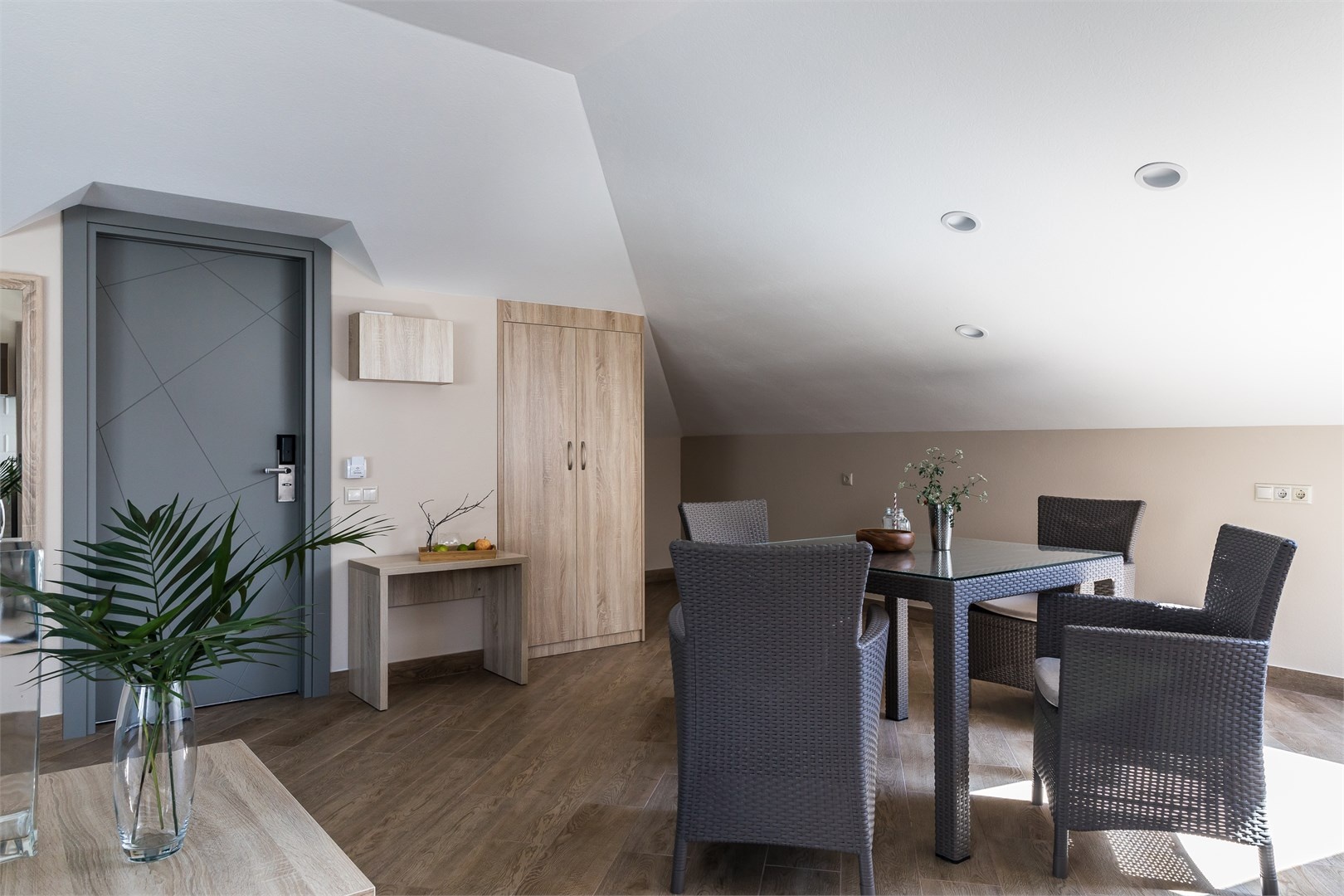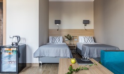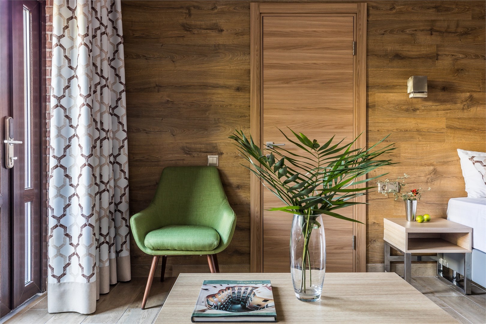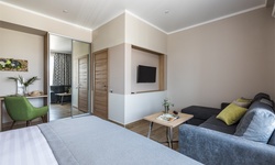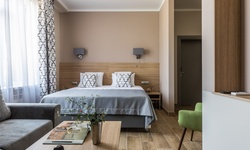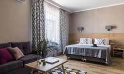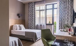 Стилизованный интерьер, уютные, просторные номера, благородные тона, большие окна, изысканные ткани, королевские матрасы, элегантный декор, мягкая мебель - создают приятную атмосферу для вашего отдыха. Удобная локация и безупречный сервис созданы для Вашего уюта и комфорта!