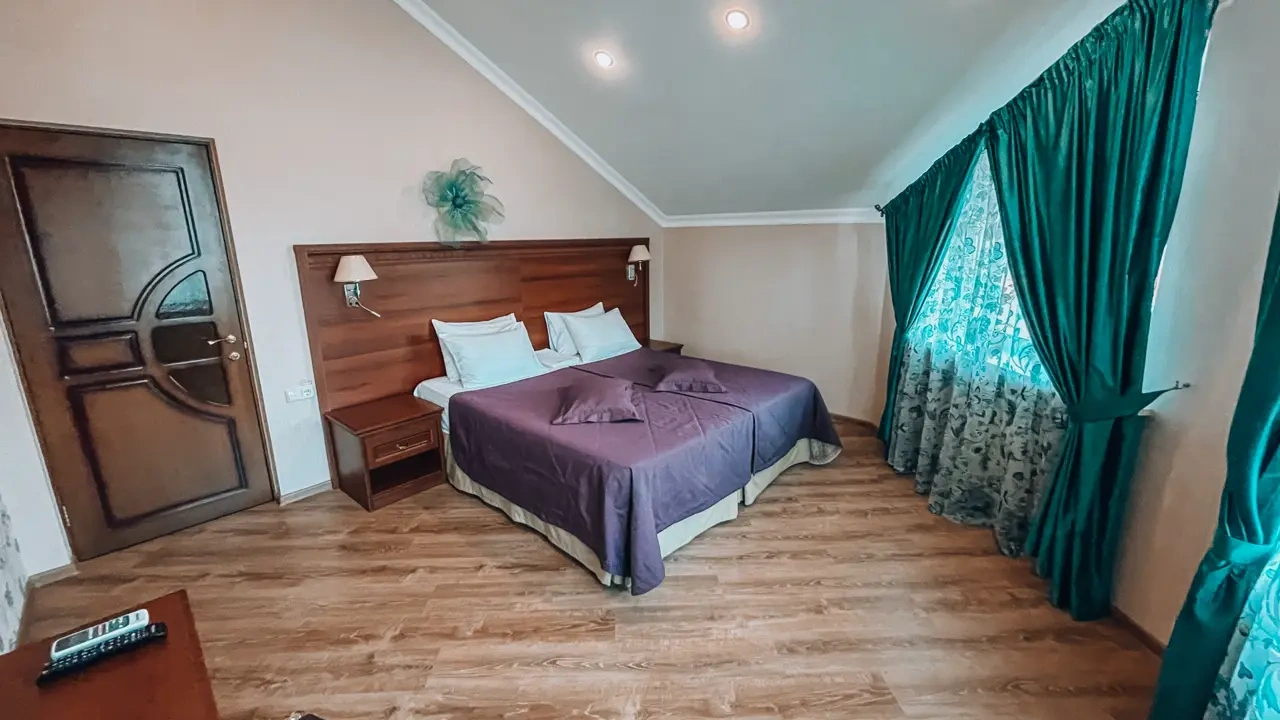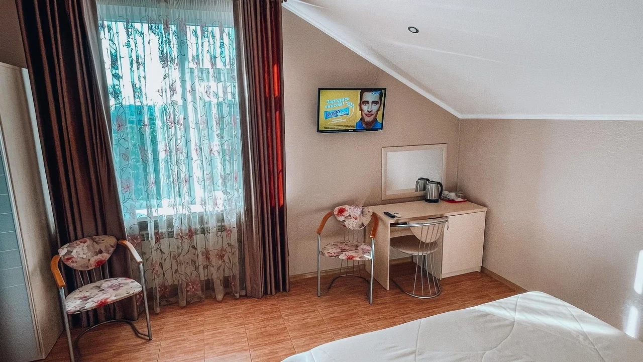 Расположен в глубине частного сектора обе подьездные дороги грунтовые, для низких машин, как наша, будут небольшие трудности. Рядом расположена река поэтому если открыто окно будут слышны лягушки. Но с закрытым окном все норм. Бельё выглядит застиранным, слегка отдаёт желтизной.