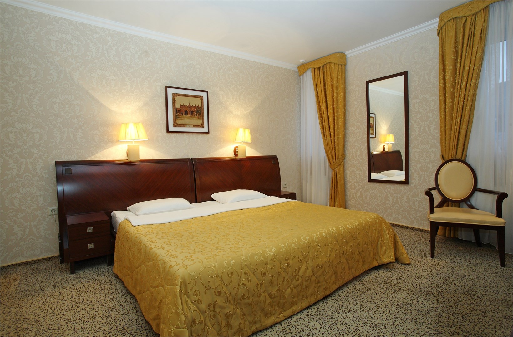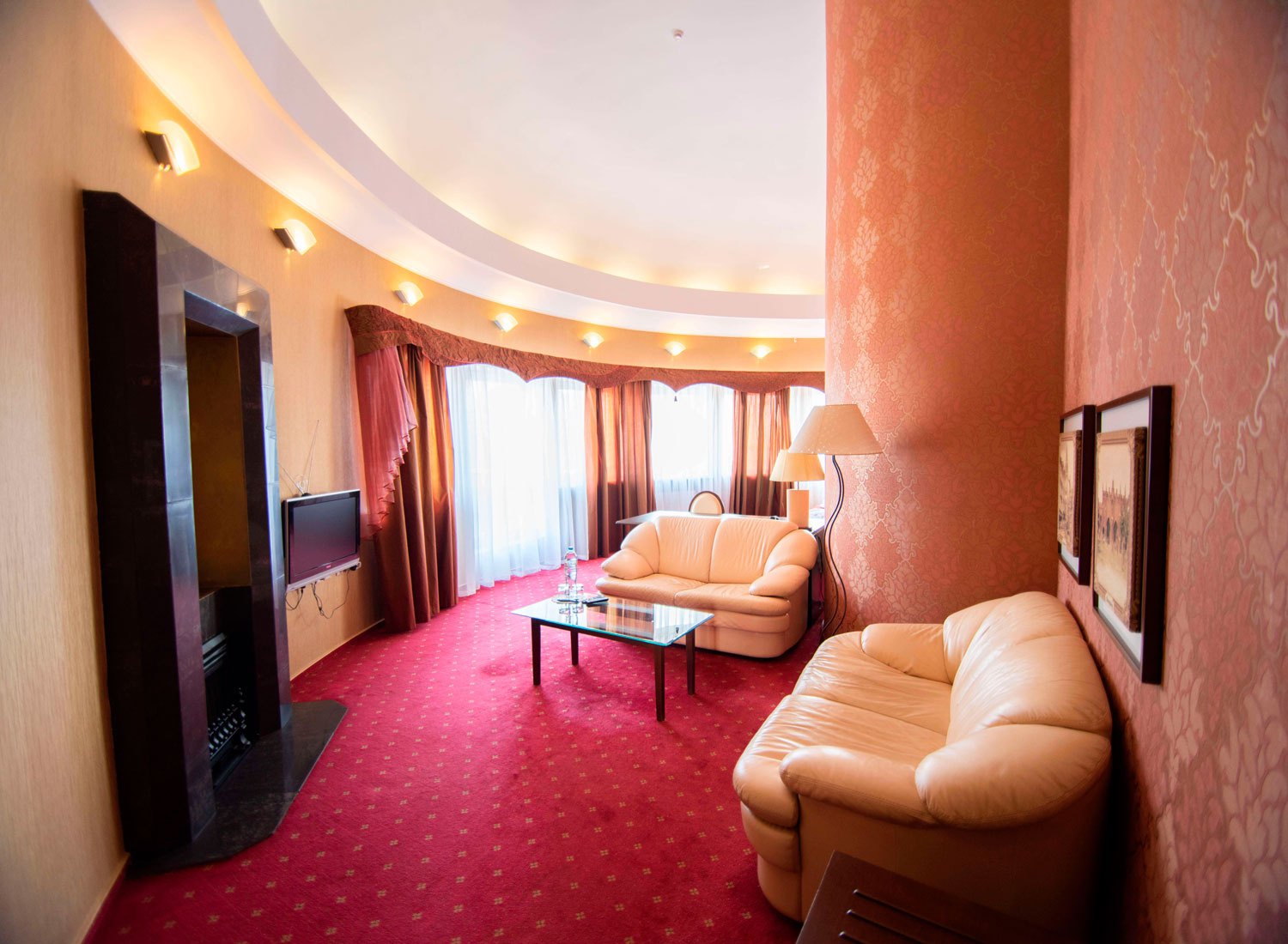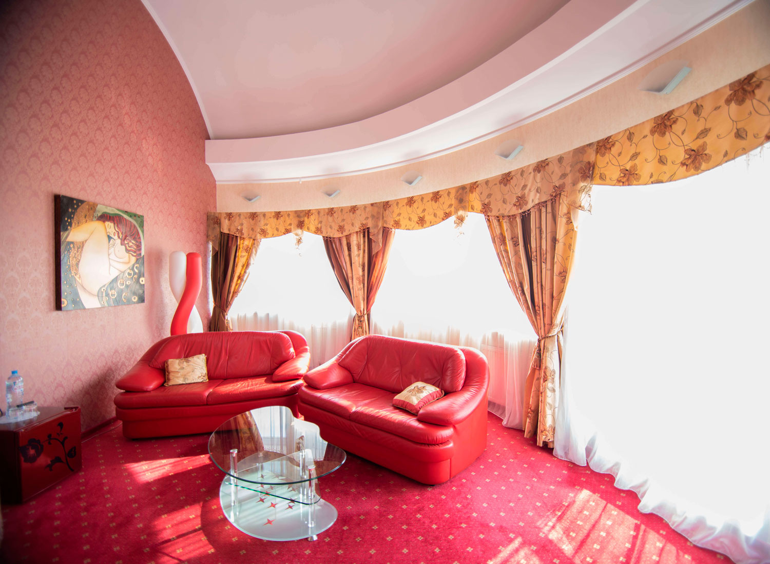 Гостевой дом «Гламур» относится к категории «дизайн-отелей», достаточно редкой категории гостиниц Калининграда. Все интерьеры выполнены по авторским дизайн-проектам. Живописные полотна и оригинальные скульптуры, декорированные колонны, тщательно подобранные портьеры и обивка мебели — все это создает особую атмосферу.