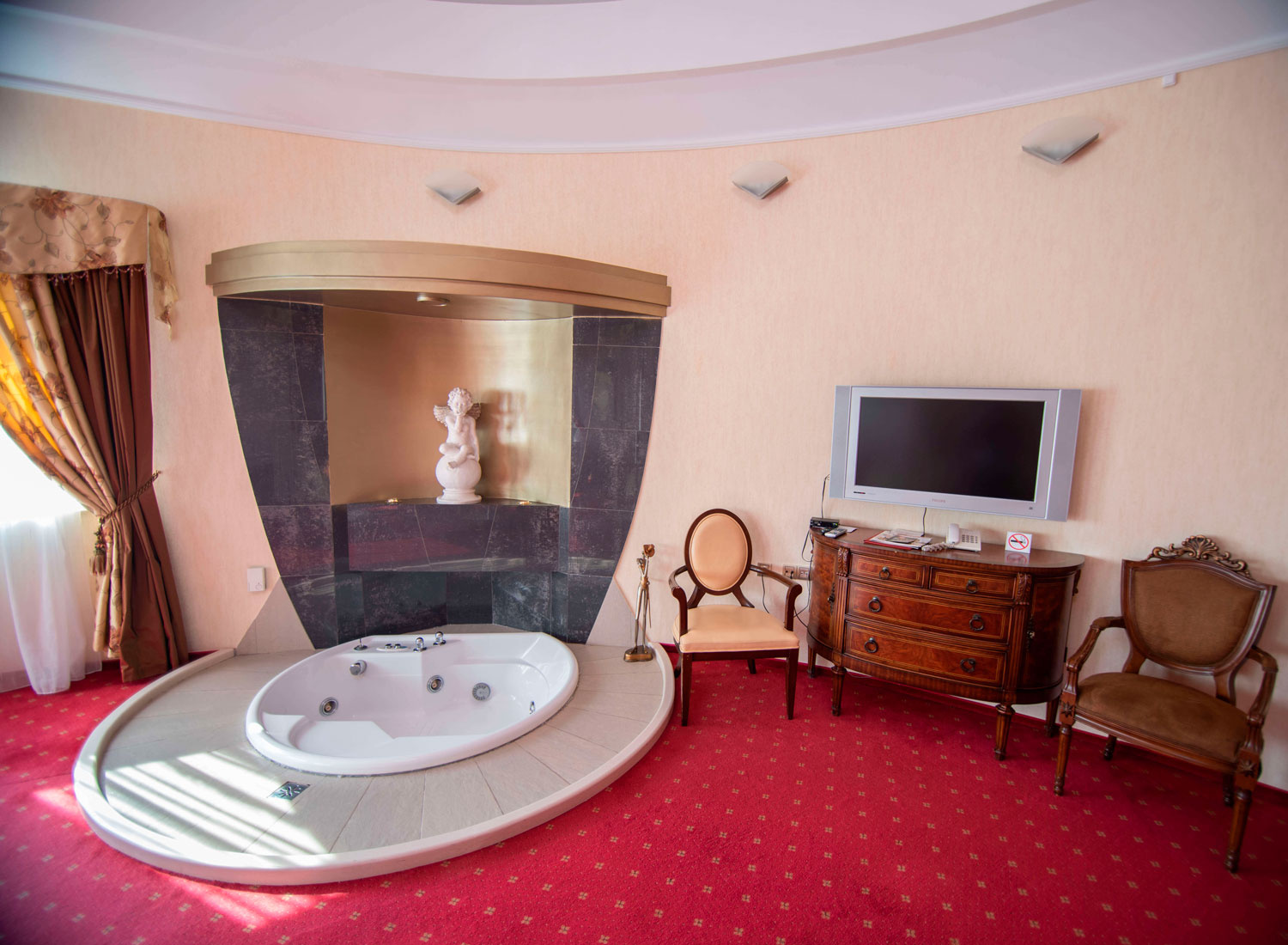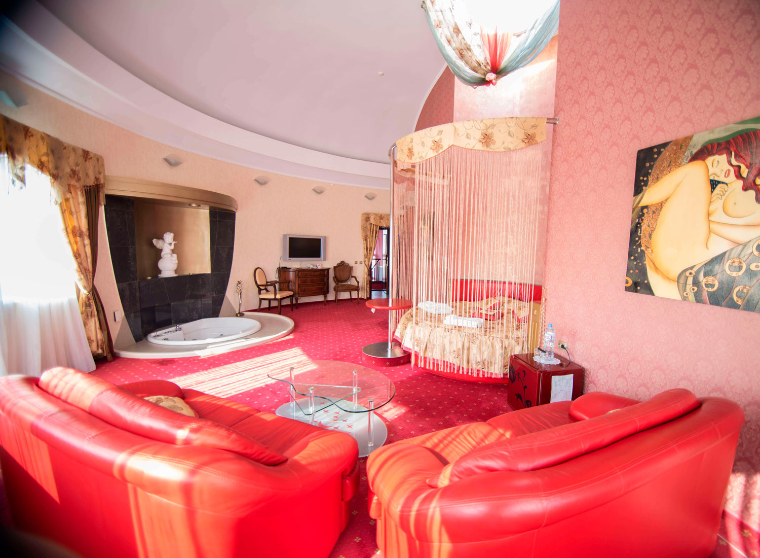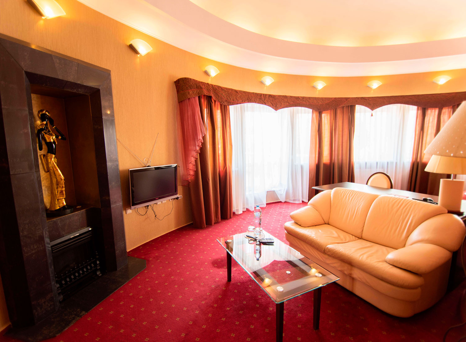 Гостевой дом «Гламур» относится к категории «дизайн-отелей», достаточно редкой категории гостиниц Калининграда. Все интерьеры выполнены по авторским дизайн-проектам. Живописные полотна и оригинальные скульптуры, декорированные колонны, тщательно подобранные портьеры и обивка мебели — все это создает особую атмосферу.