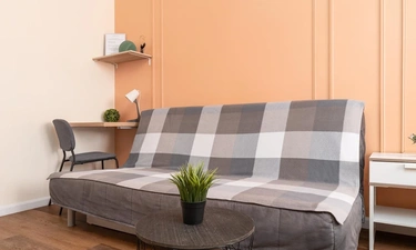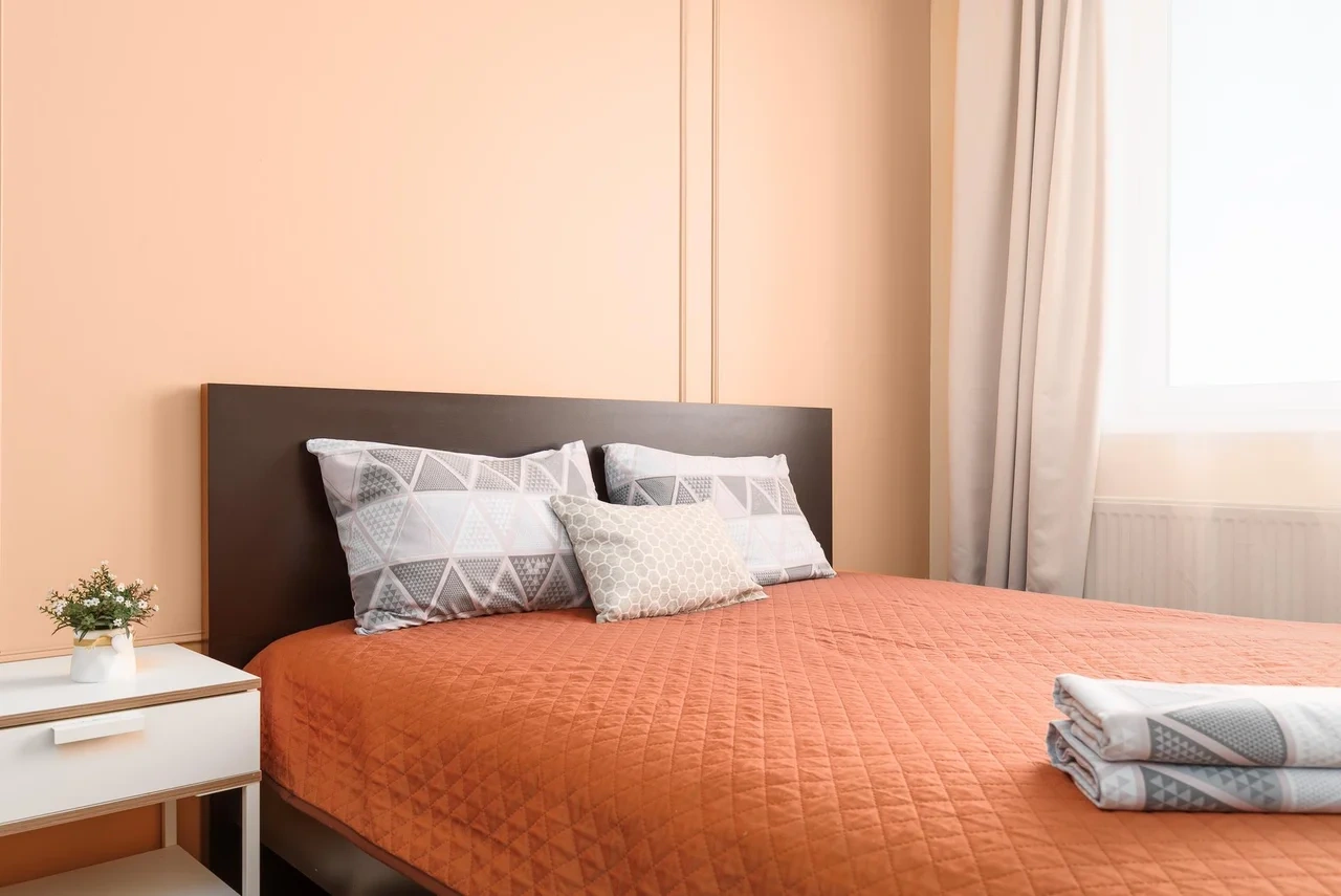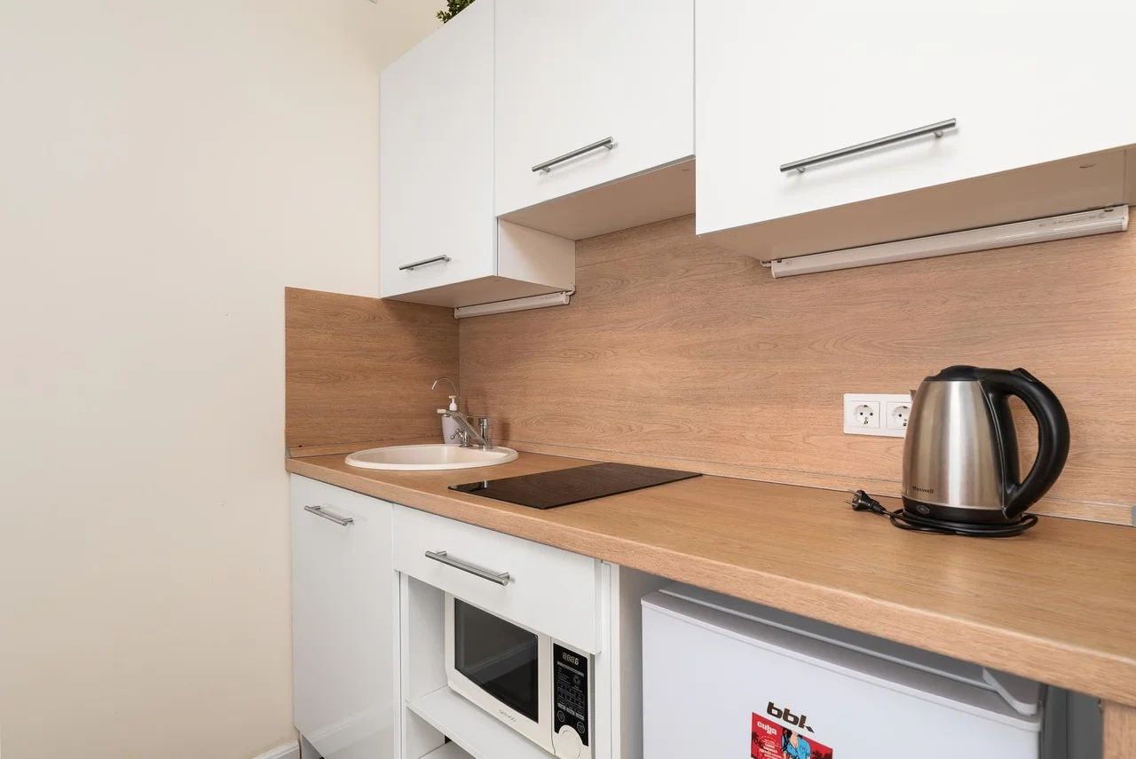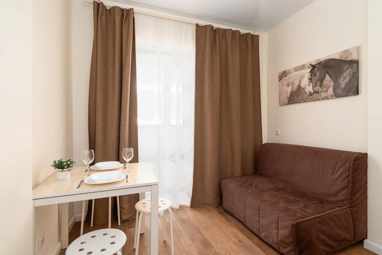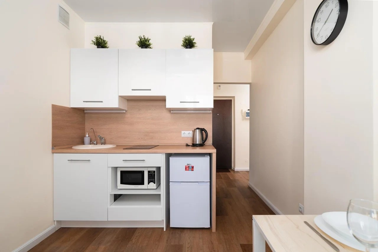 Дизайнерский ремонт выполнен в 2021 году. Эргономичное расположение мебели позволяет разместить до 5 гостей. Кухня укомплектована техникой и посудой для приготовления пищи. В спальной комнате установлены кровать с пружинным матрасом и двуспальный диван. Комната оборудована удобным рабочим местом для удаленной работы. Подключен скоростной интернет, телевидение. Спальные комплекты и полотенца предоставляются. Приветственный чай/кофе.