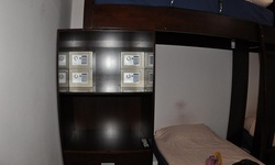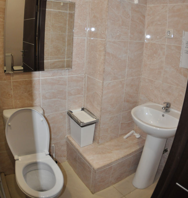 В номере царапанная мебель, один ящик был сломан. Плитка на полу со сколами. Из стены вынулась розетка. Ни одного стула в комнате, вместо стола - тумбочка. Чайник перестал работать на третий день нашего пребывания. В санузле крючок только в самой душевой. Куда девать одежду, непонятно. Диспенсер для мыла плохо работал. Туалетная бумага самого низкого качества.