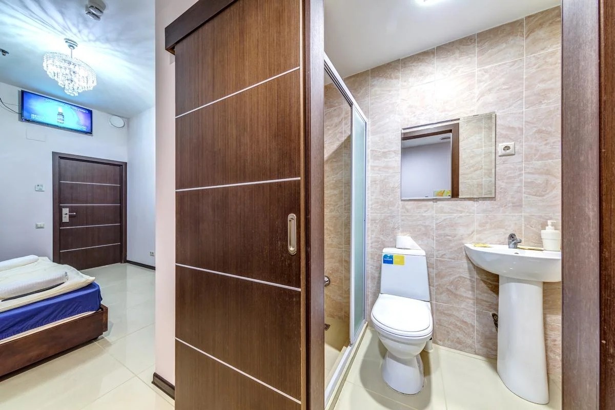 5). Номер большой, а туалет не присесть. Коленки в ведро упираются.