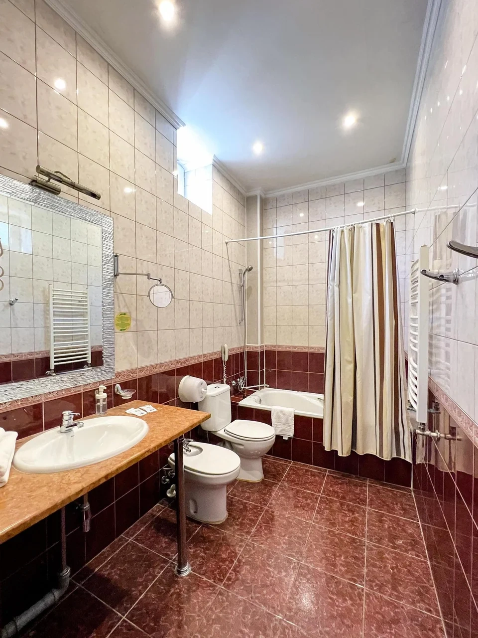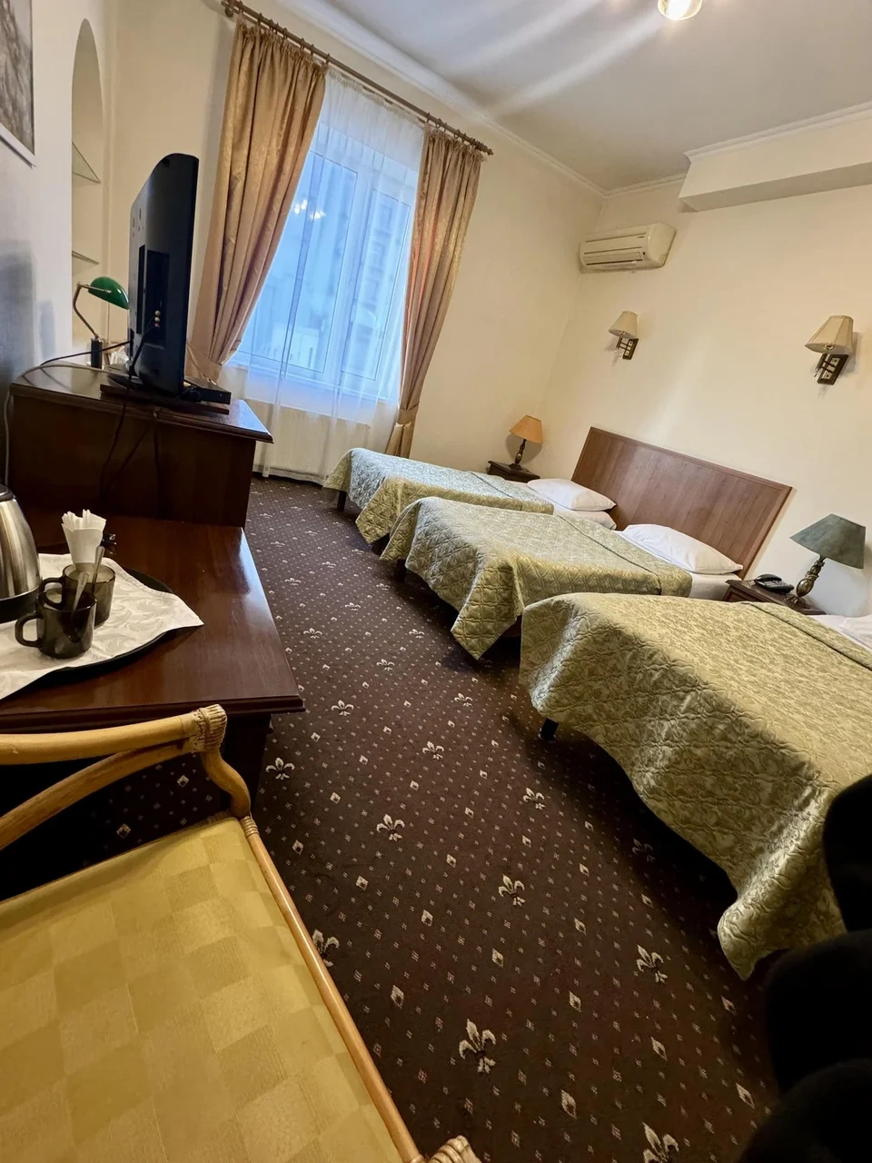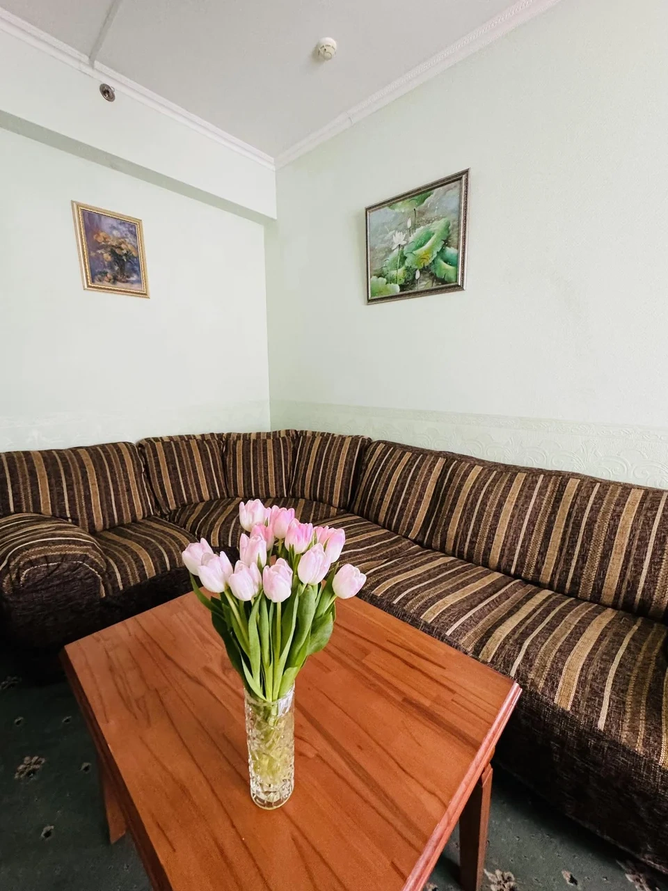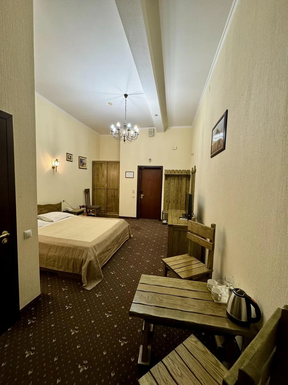 уютное место, большой номер, были и тапочки, и ковролин на полу, что зимой большой плюс. батареи регулировались отлично. ничего сломанного, что очень порадовало з такую умеренную стоимость