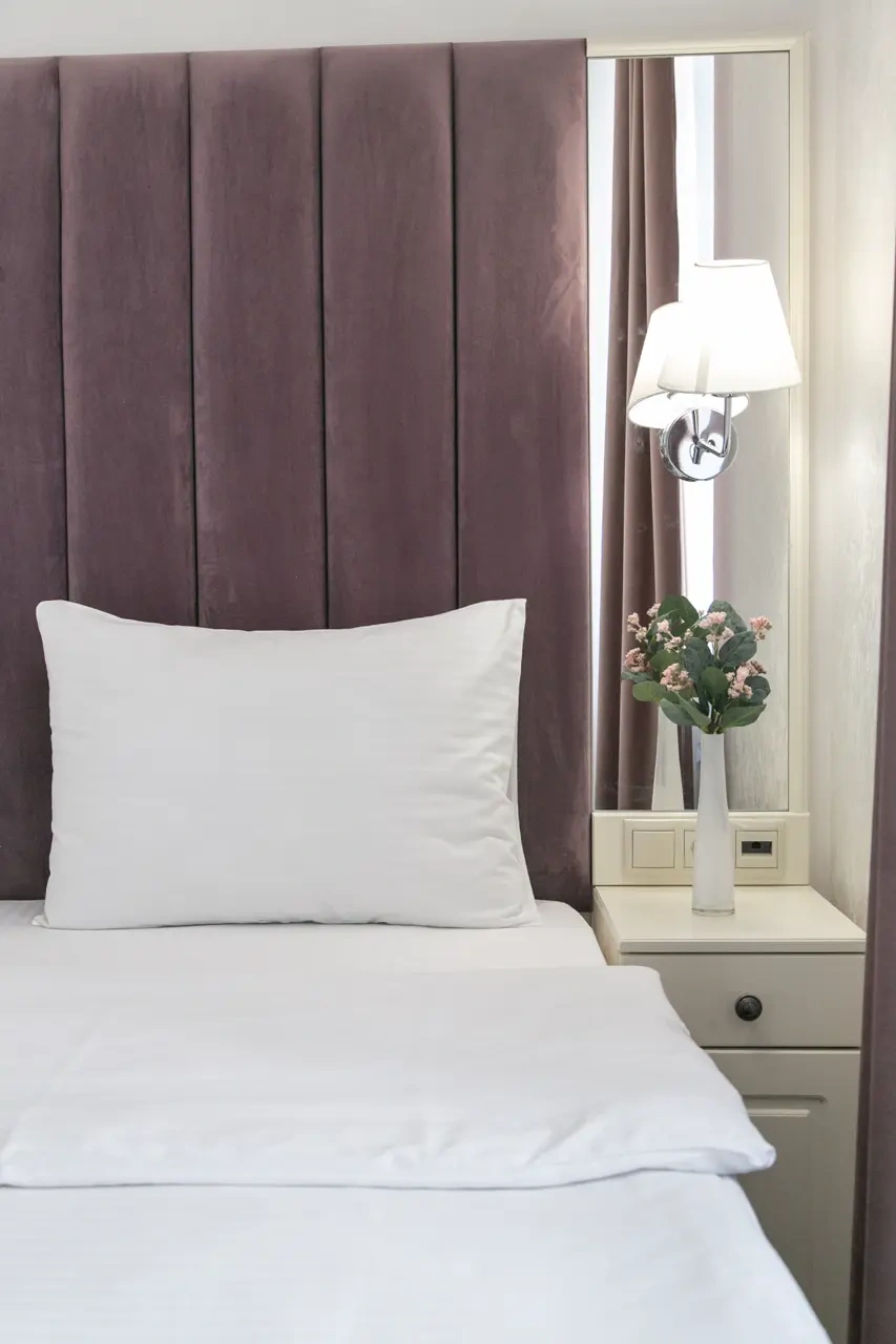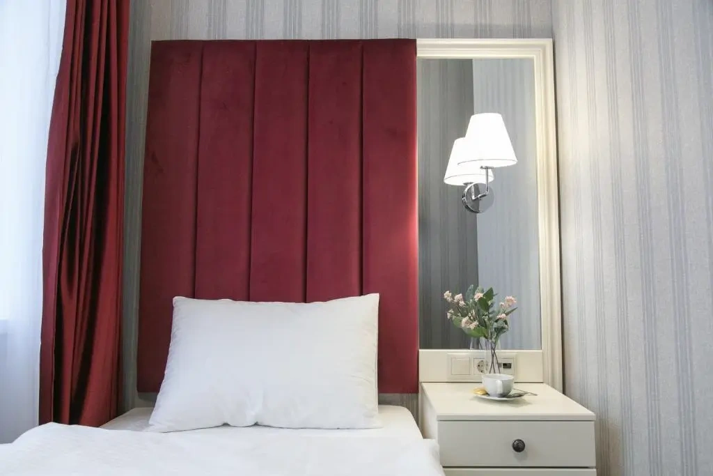 Одноместный номер оснащен одной односпальной кроватью (90*200 см) и оборудован всем необходимым для комфортного проживания: телевизором, электрочайником, напольной вешалкой, прикроватными бра, розетками, тумбочкой, ортопедическим матрацем, который обеспечит комфортный отдых любому, даже самому восприимчивому Гостю. Собственная ванная комната оборудована душем, зеркалом, феном. Тапочки и туалетные принадлежности (мыло, шампунь, гель для душа), а также чайная пара предоставляются бесплатно. WI-FI работает на всей территории отеля и предоставляется бесплатно. Вид из номера на тихую улицу или во двор. Площадь номера = 10м².