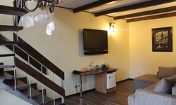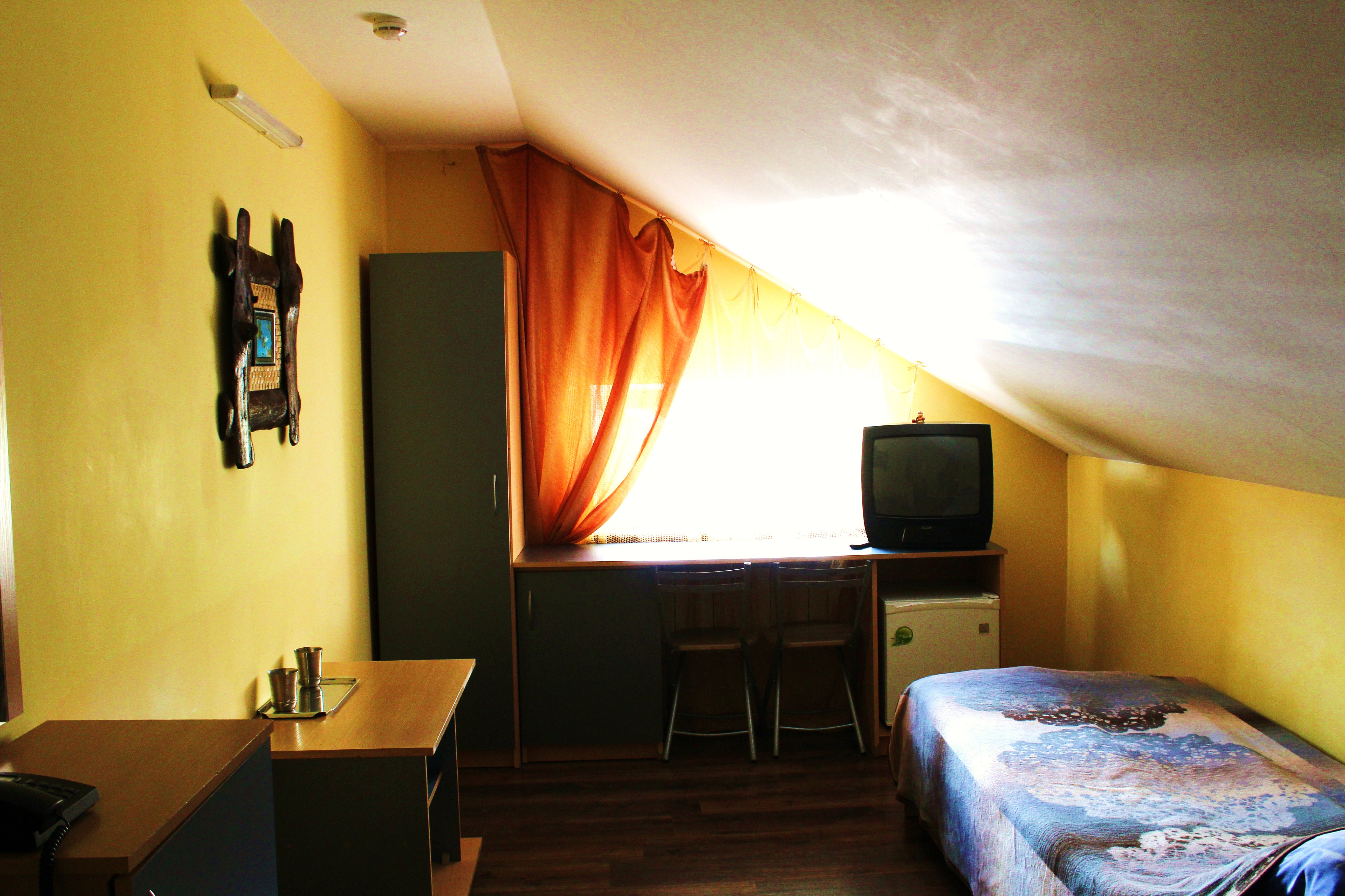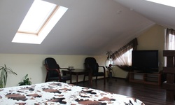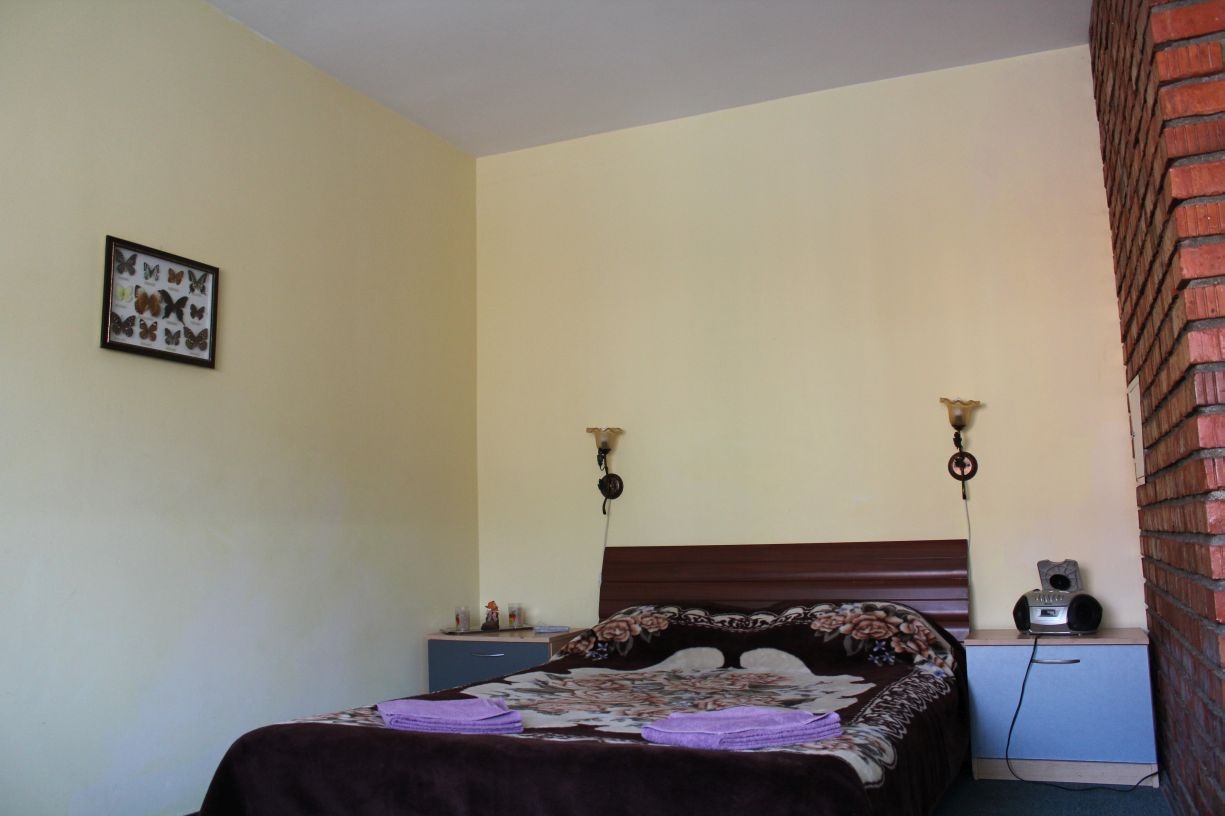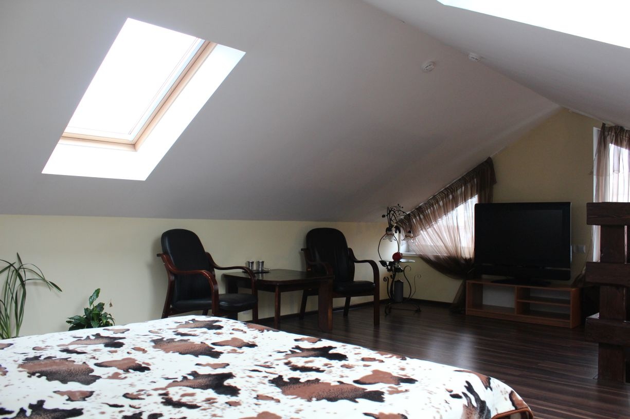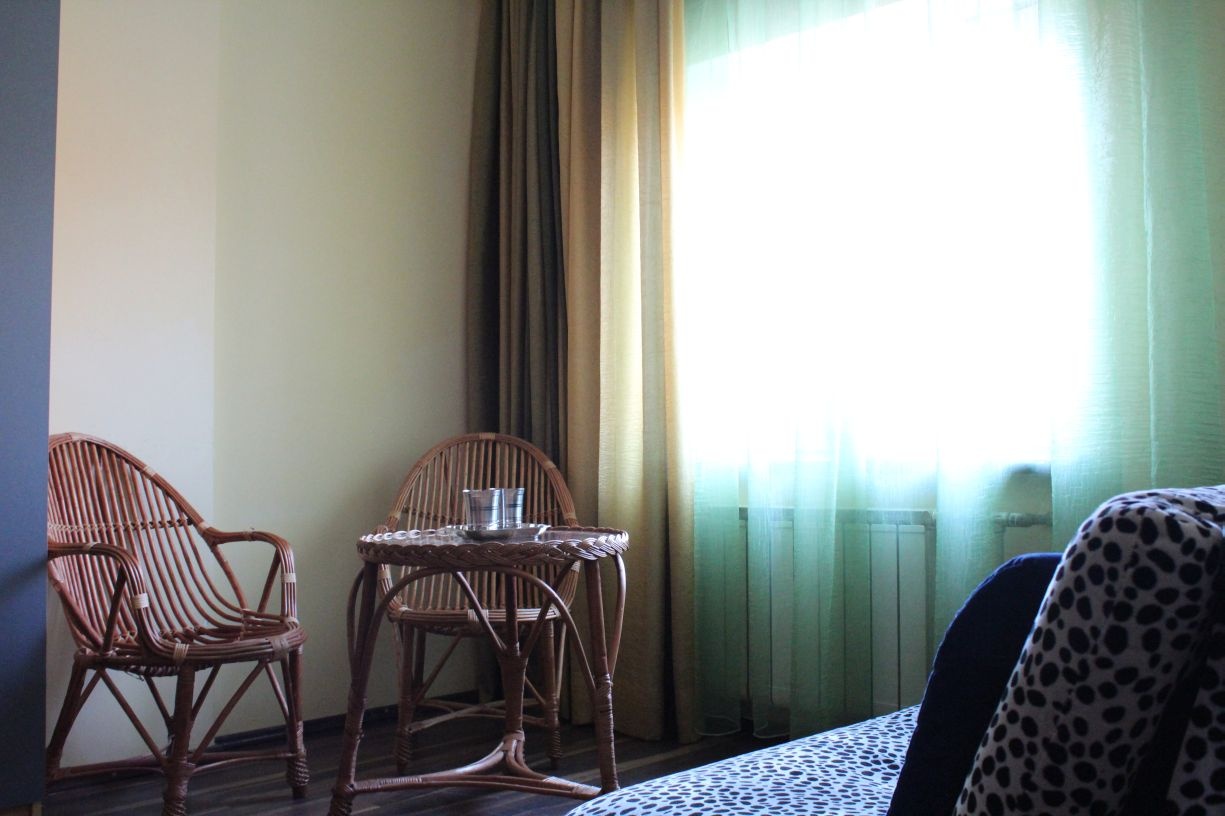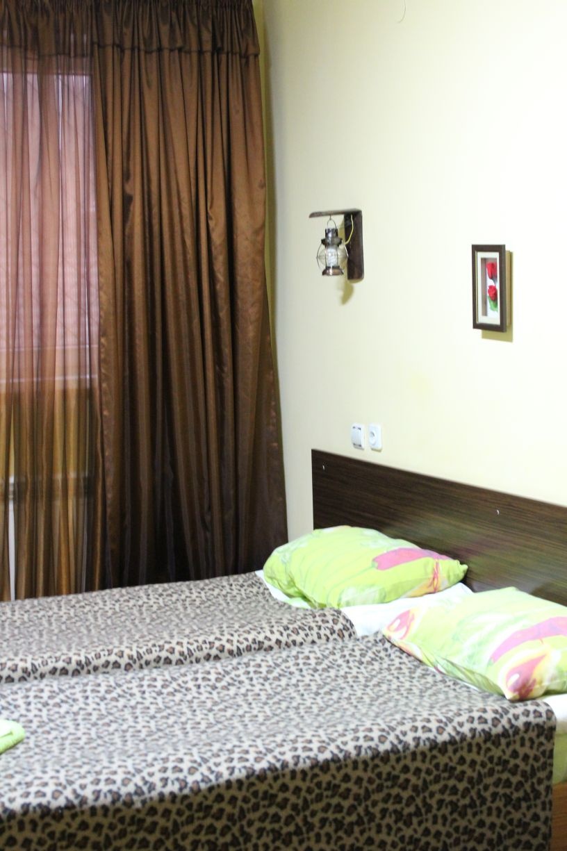 Гостям предлагается размещение в светлых комнатах, интерьер которых оформлен в рустикальном стиле в теплой цветовой гамме с использованием деревянной отделки. Все комнаты оборудованы телевизором с плоским экраном, холодильником и собственной ванной комнатой.