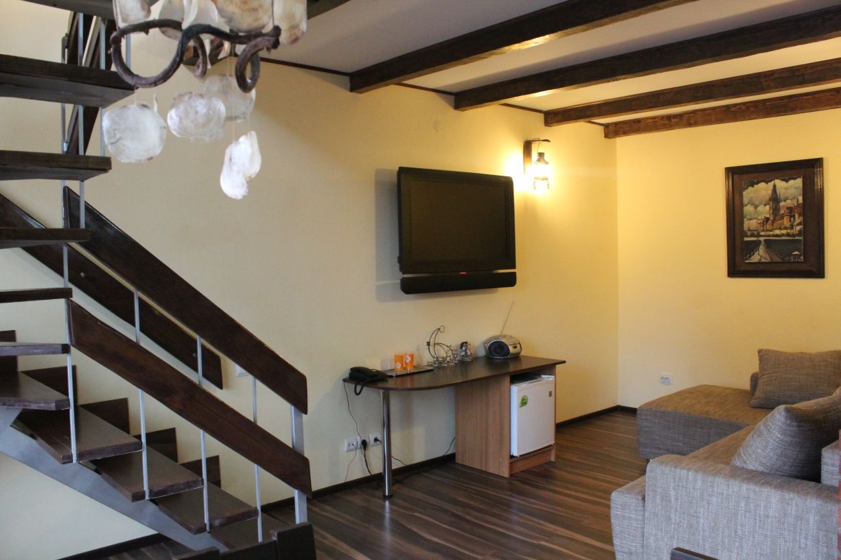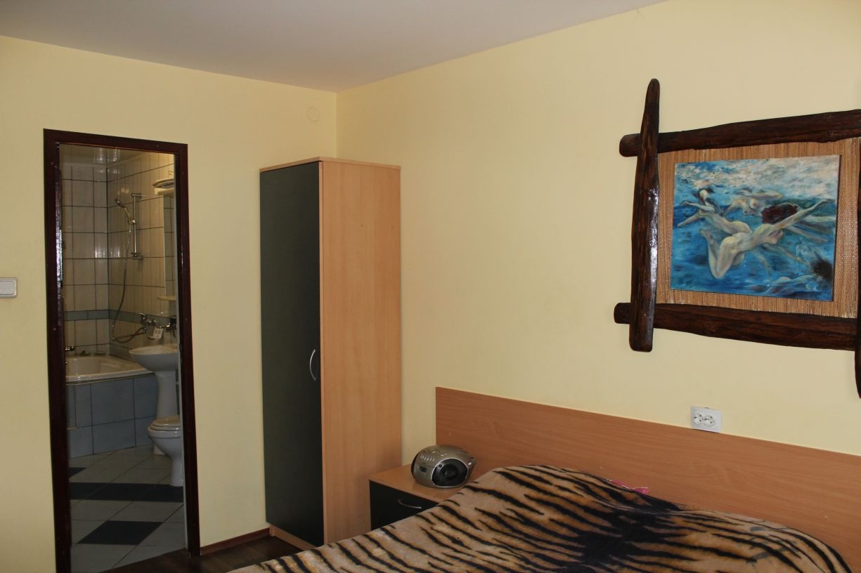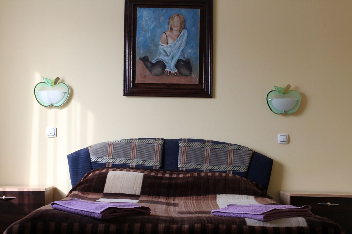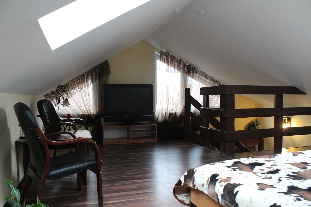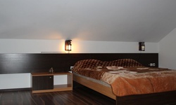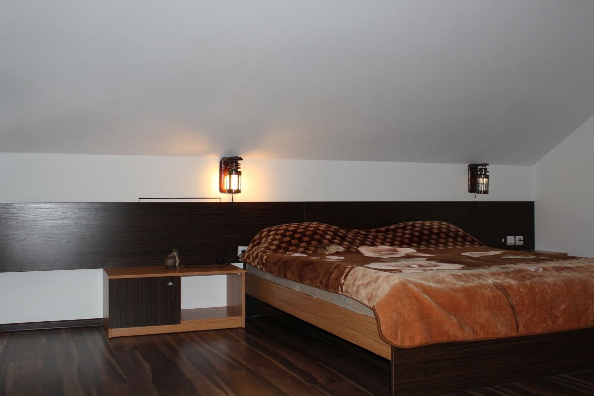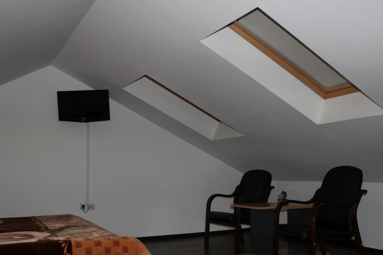 Гостям предлагается размещение в светлых комнатах, интерьер которых оформлен в рустикальном стиле в теплой цветовой гамме с использованием деревянной отделки. Все комнаты оборудованы телевизором с плоским экраном, холодильником и собственной ванной комнатой.