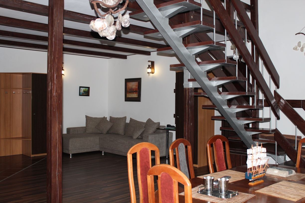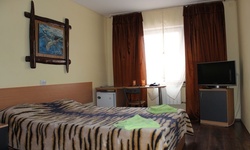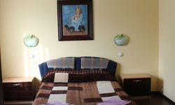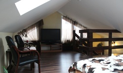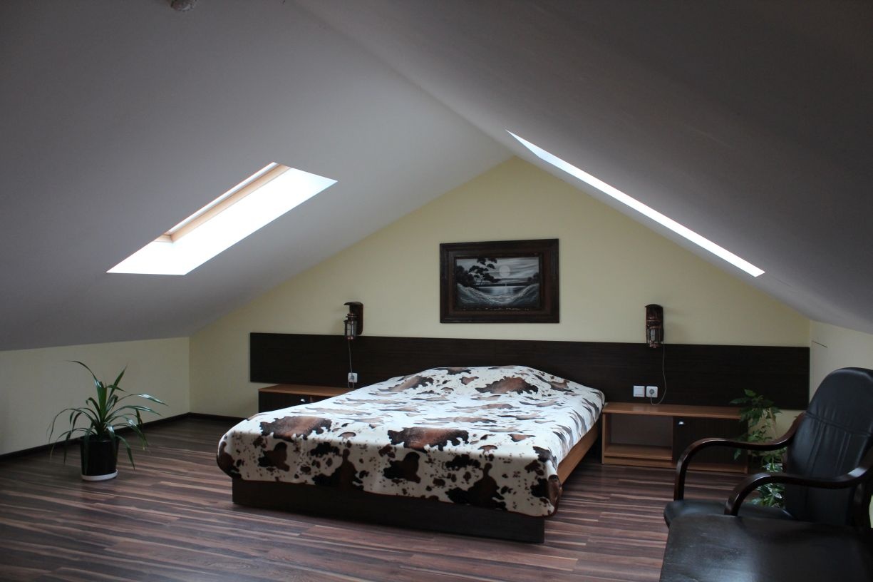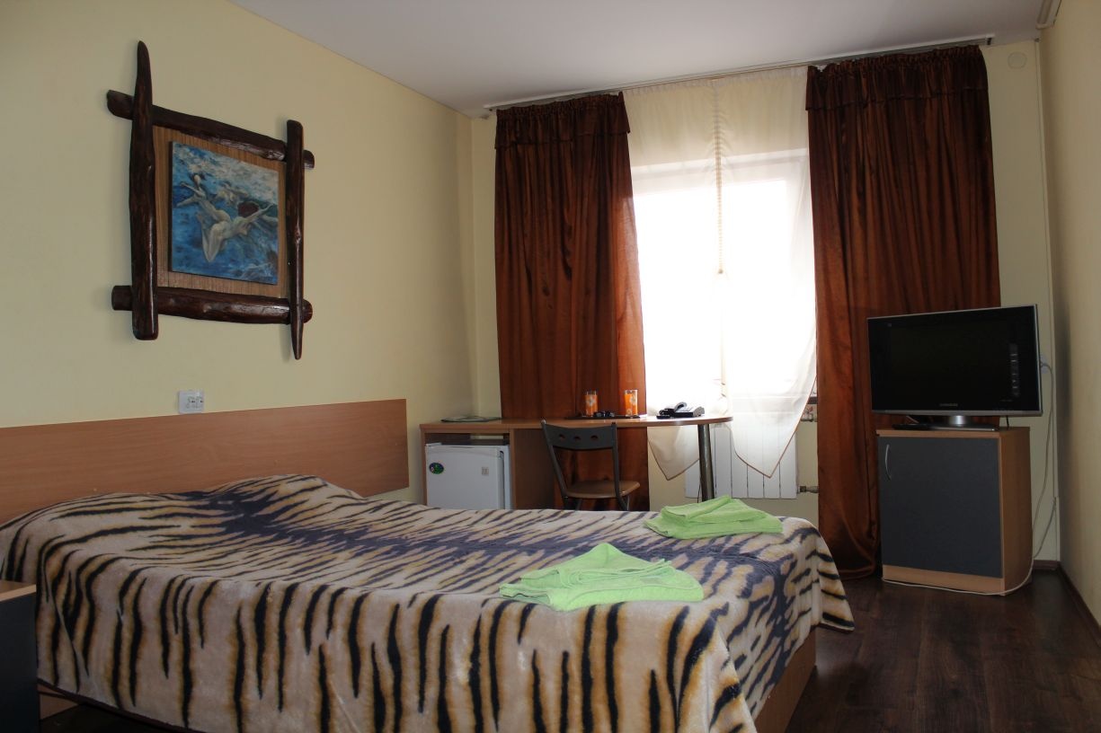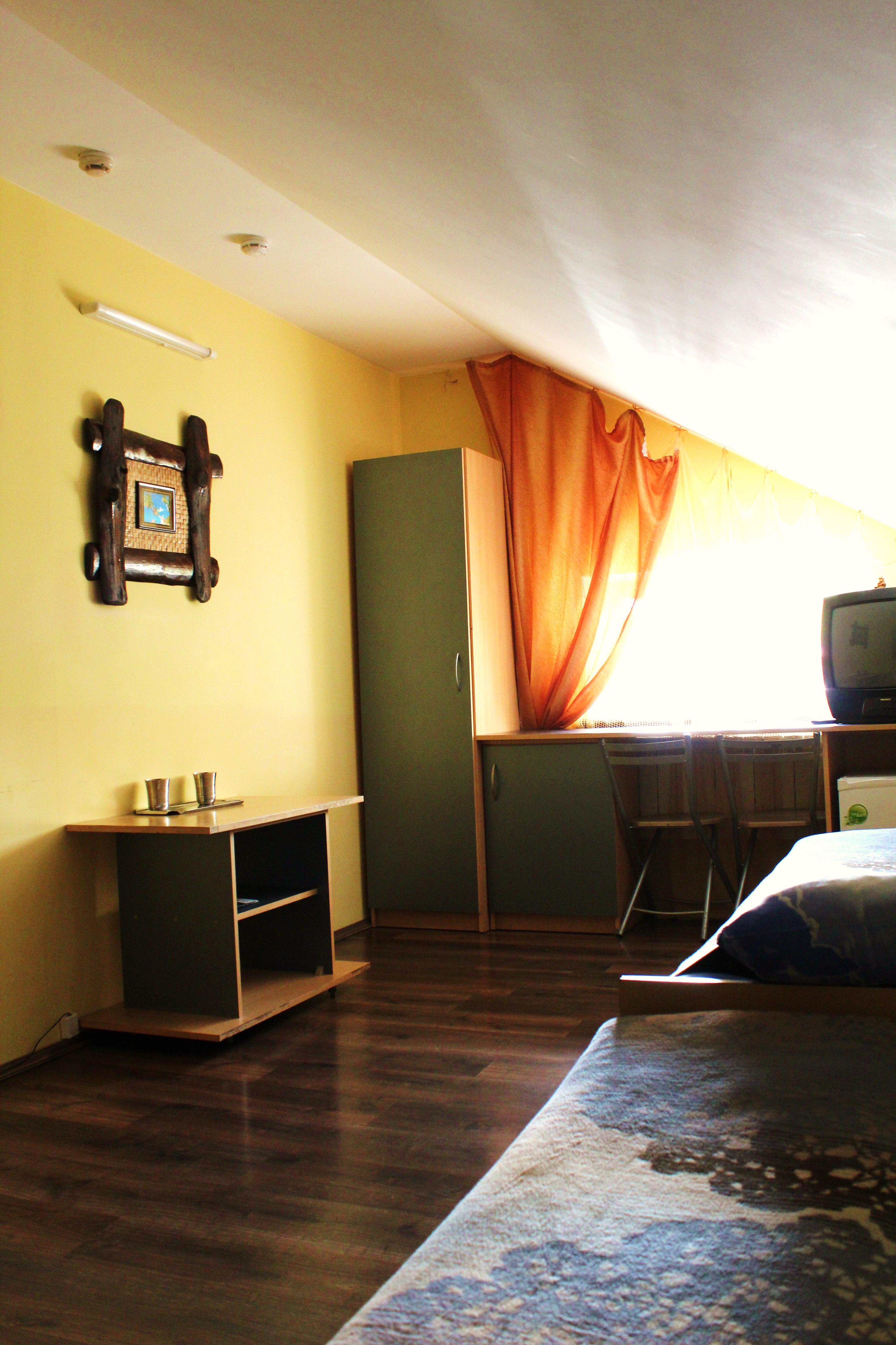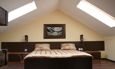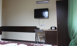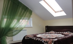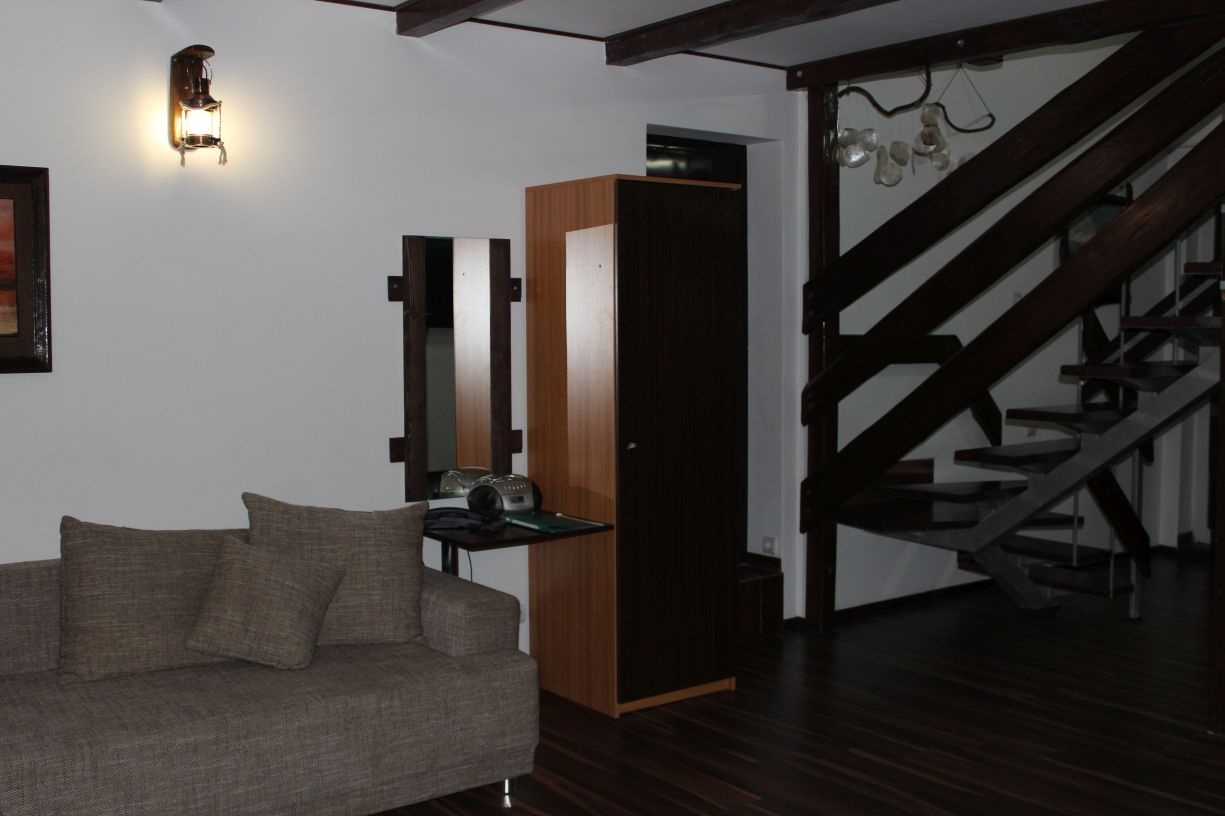 Гостям предлагается размещение в светлых комнатах, интерьер которых оформлен в рустикальном стиле в теплой цветовой гамме с использованием деревянной отделки. Все комнаты оборудованы телевизором с плоским экраном, холодильником и собственной ванной комнатой.