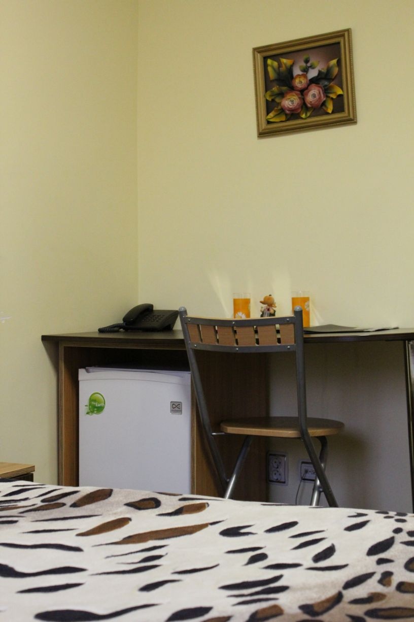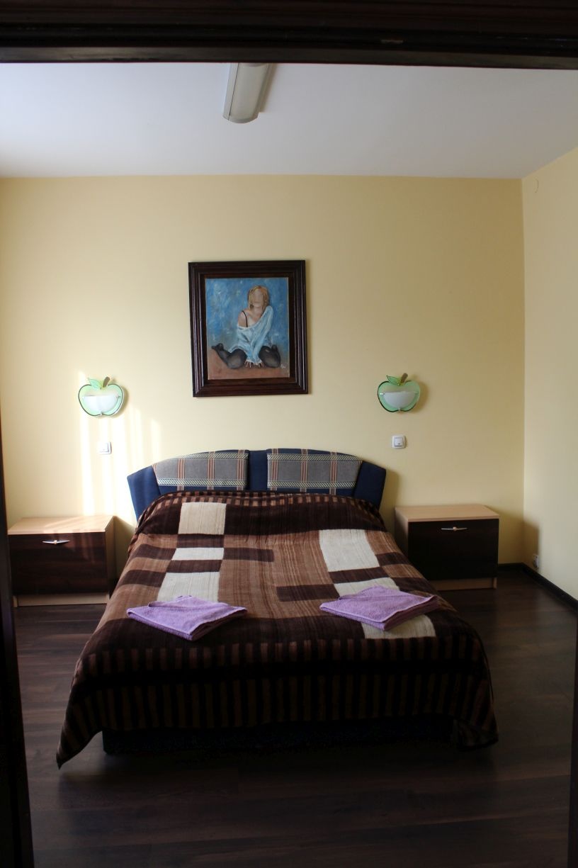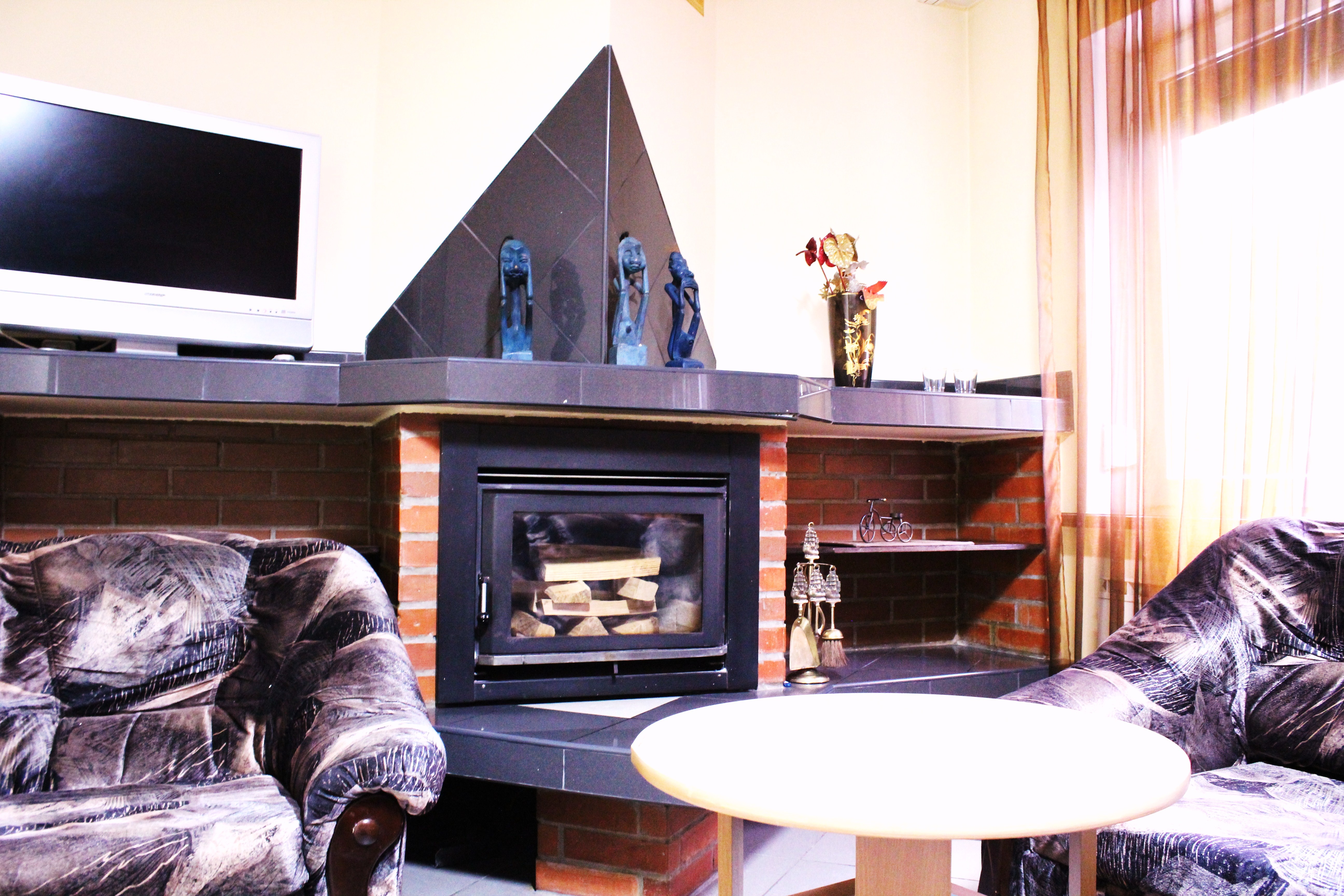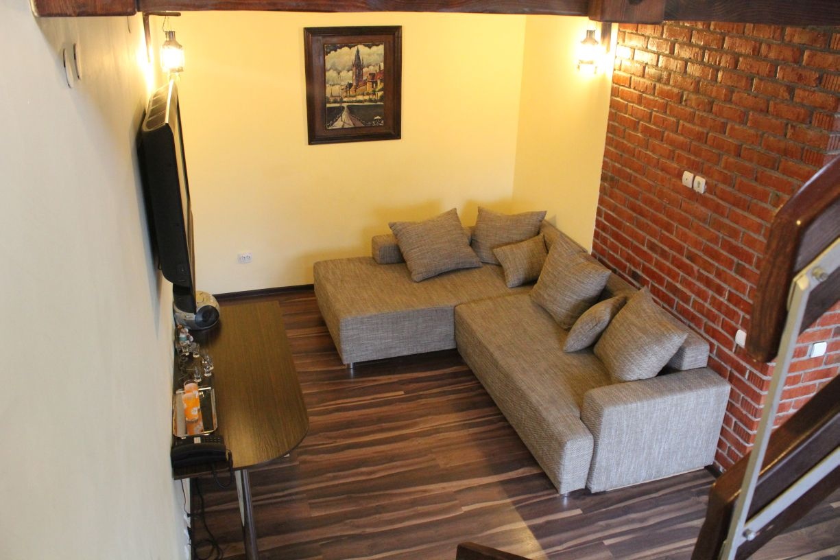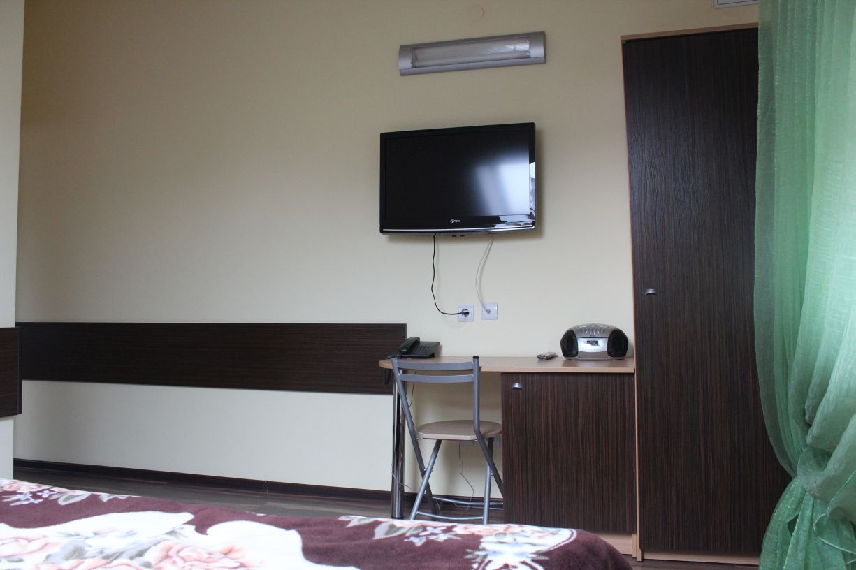 Гостям предлагается размещение в светлых комнатах, интерьер которых оформлен в рустикальном стиле в теплой цветовой гамме с использованием деревянной отделки. Все комнаты оборудованы телевизором с плоским экраном, холодильником и собственной ванной комнатой.