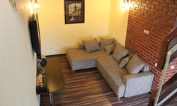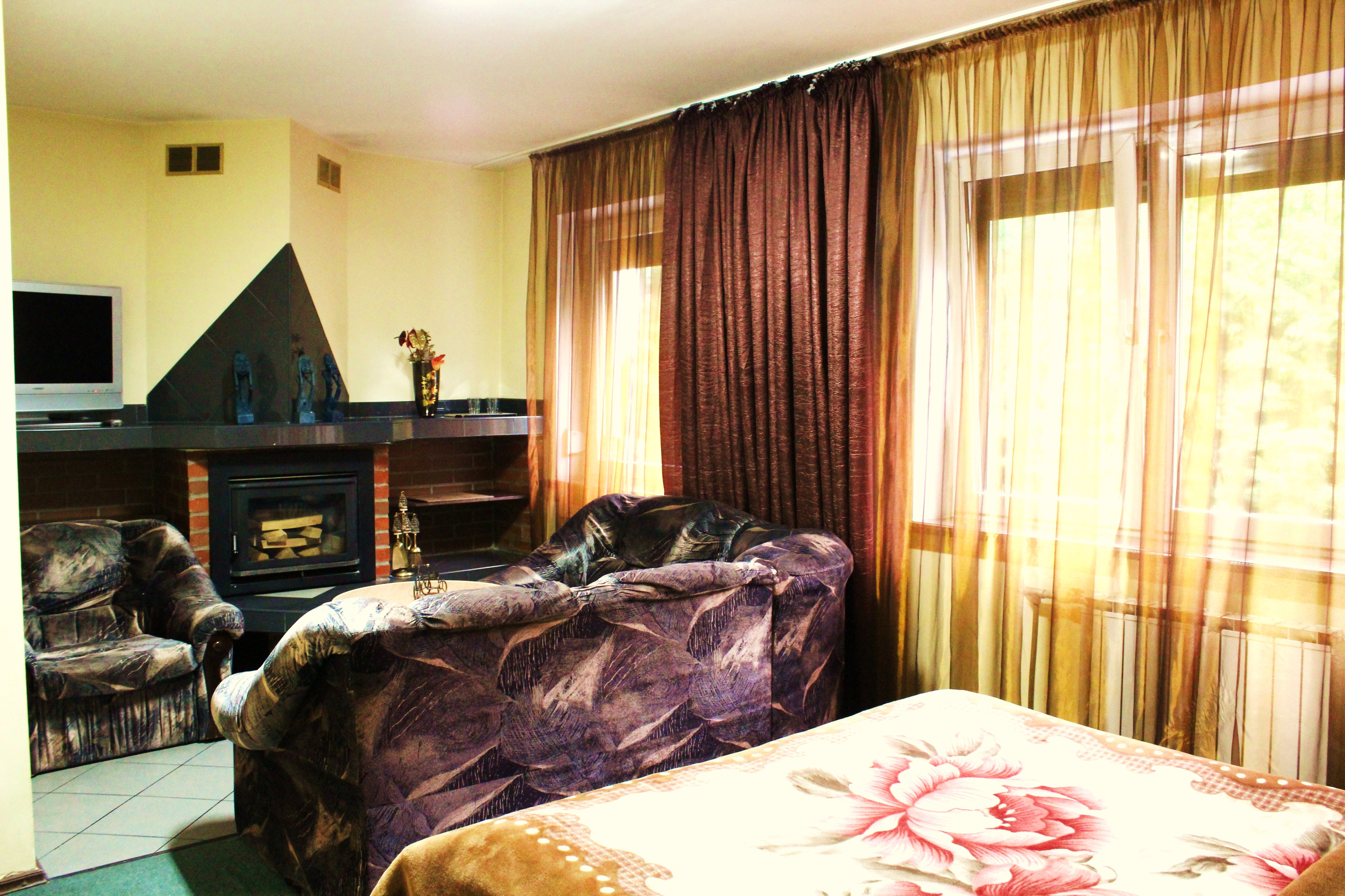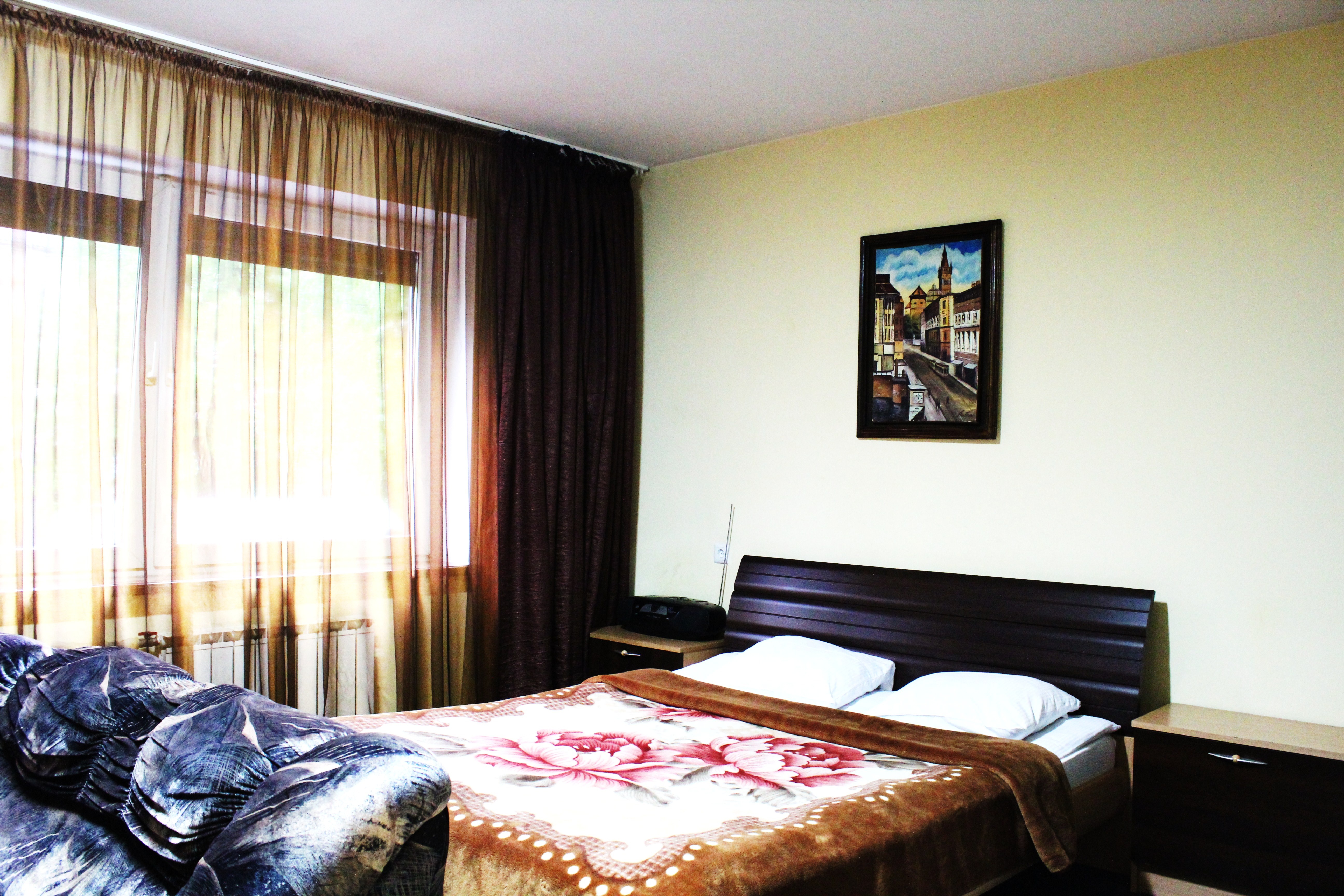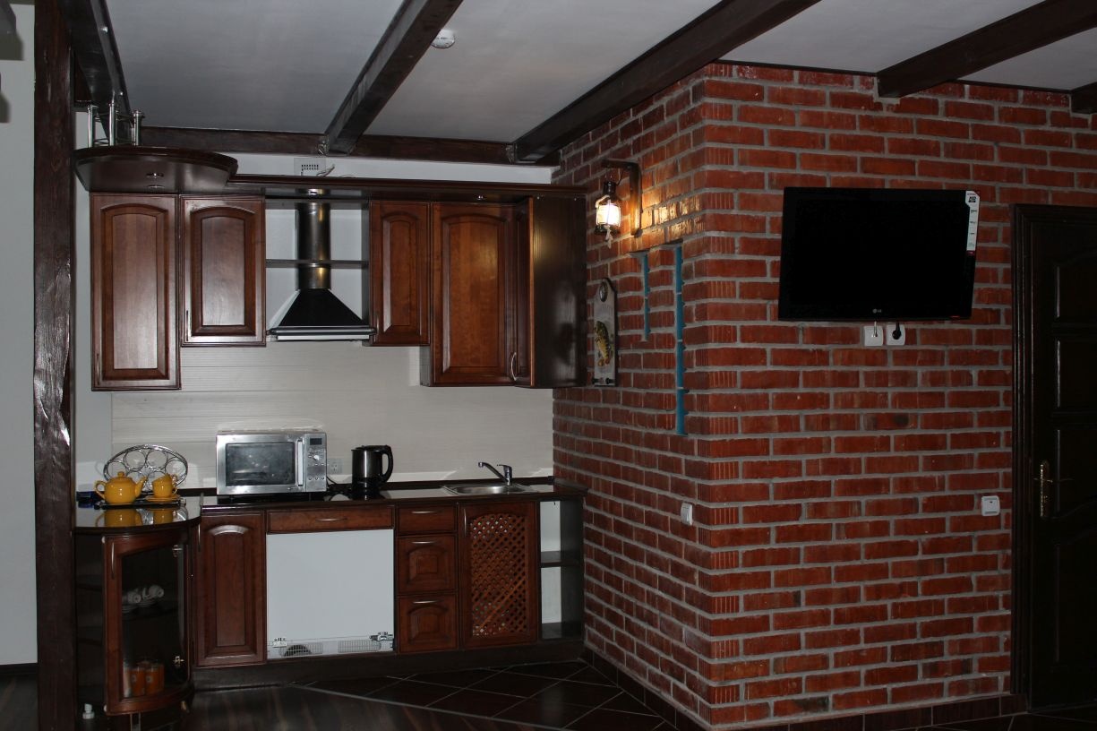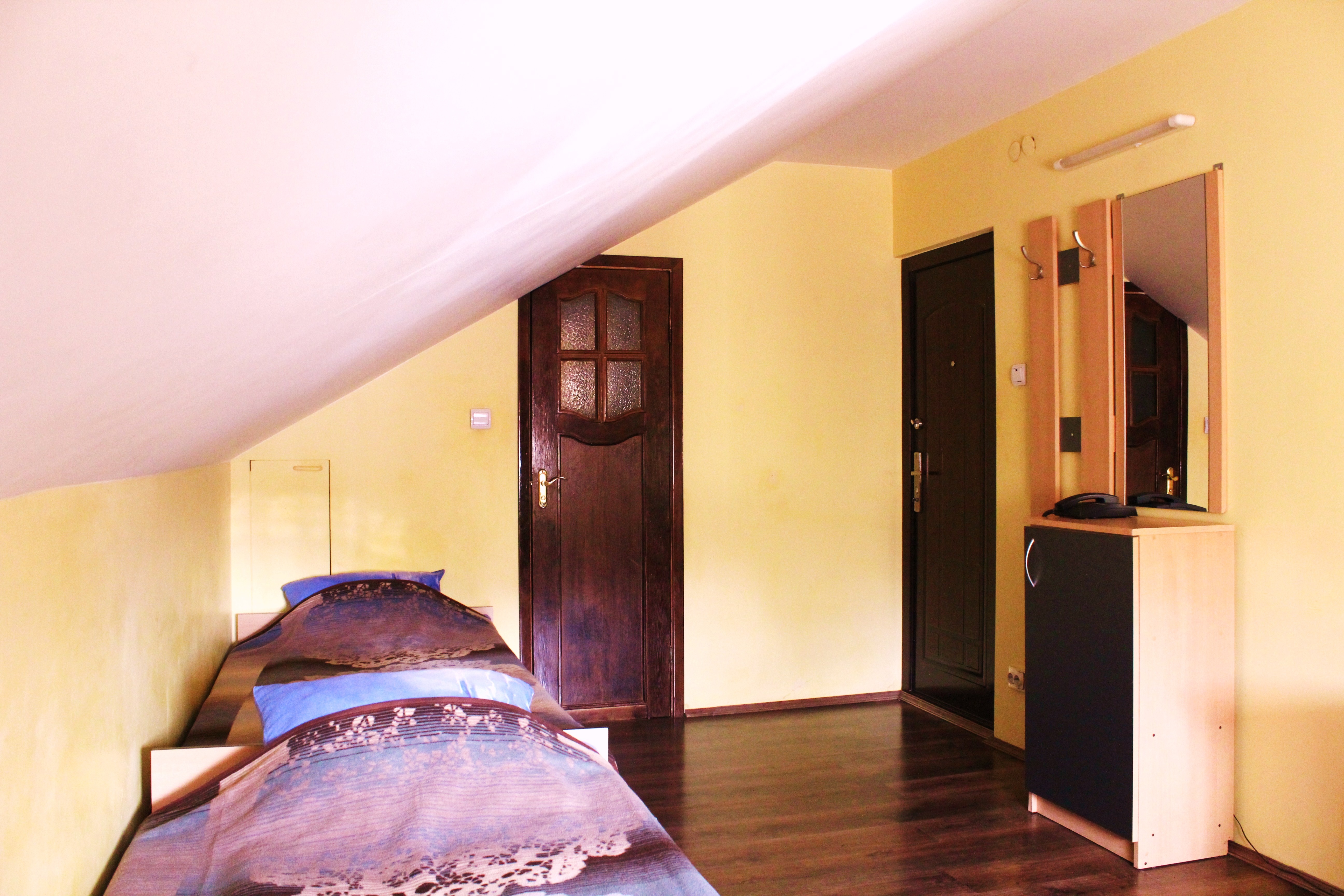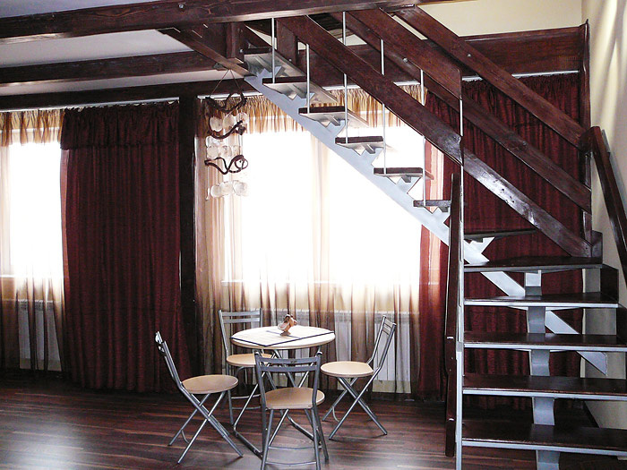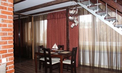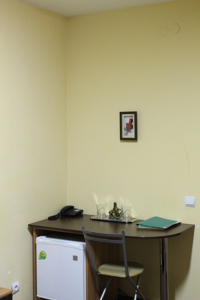 Гостям предлагается размещение в светлых комнатах, интерьер которых оформлен в рустикальном стиле в теплой цветовой гамме с использованием деревянной отделки. Все комнаты оборудованы телевизором с плоским экраном, холодильником и собственной ванной комнатой.
