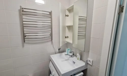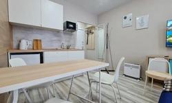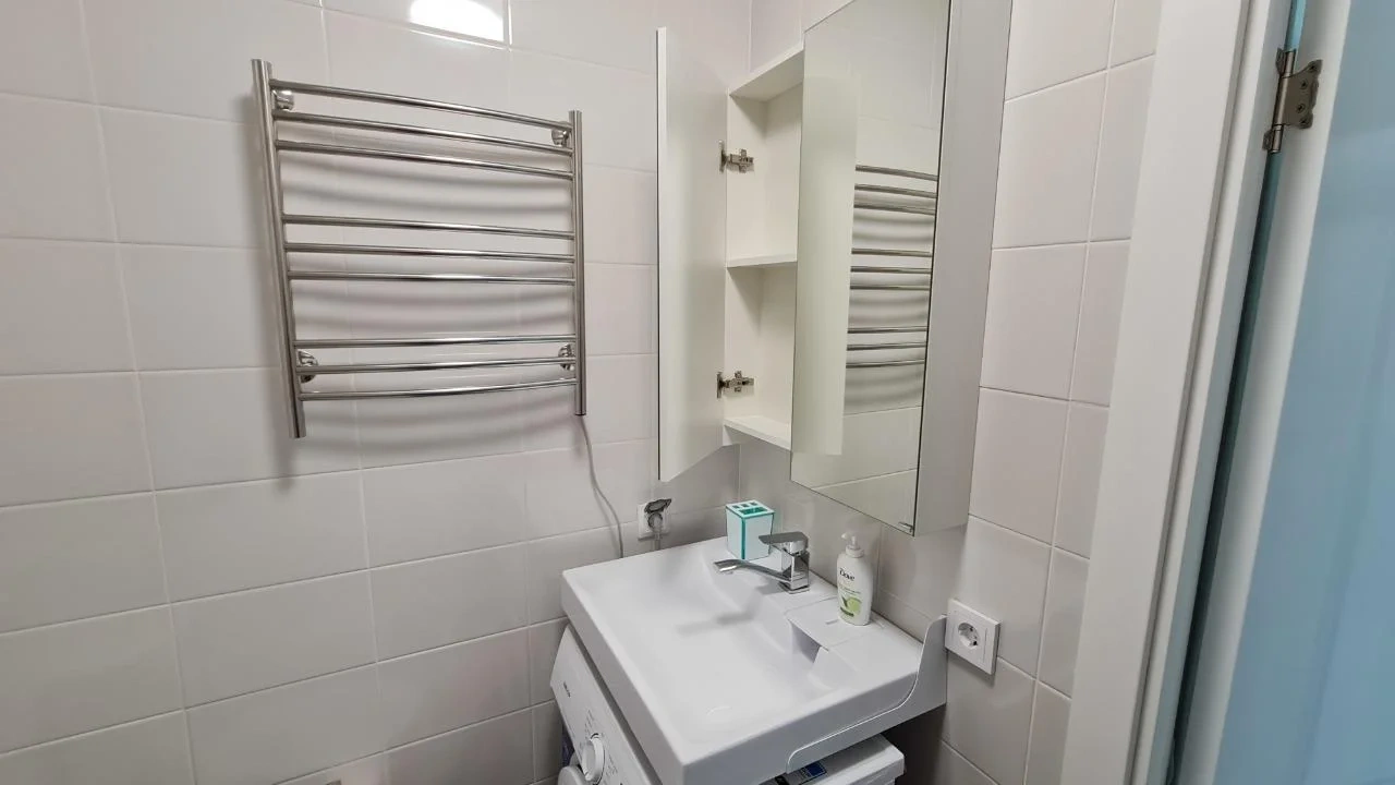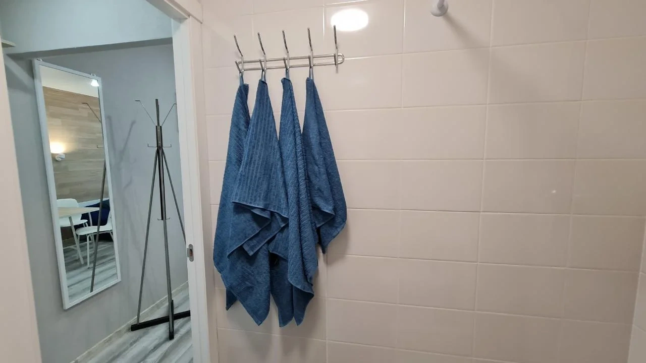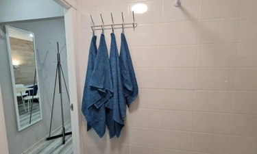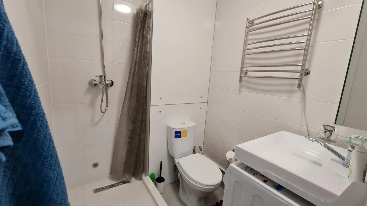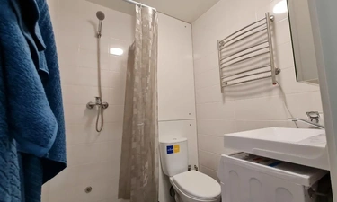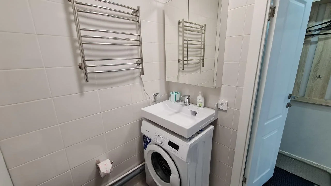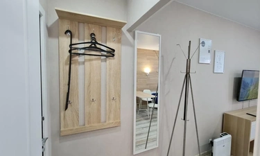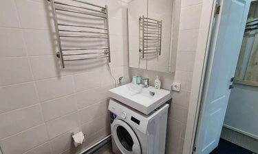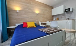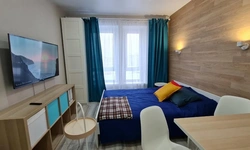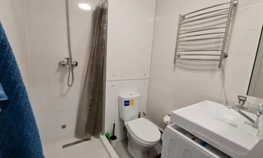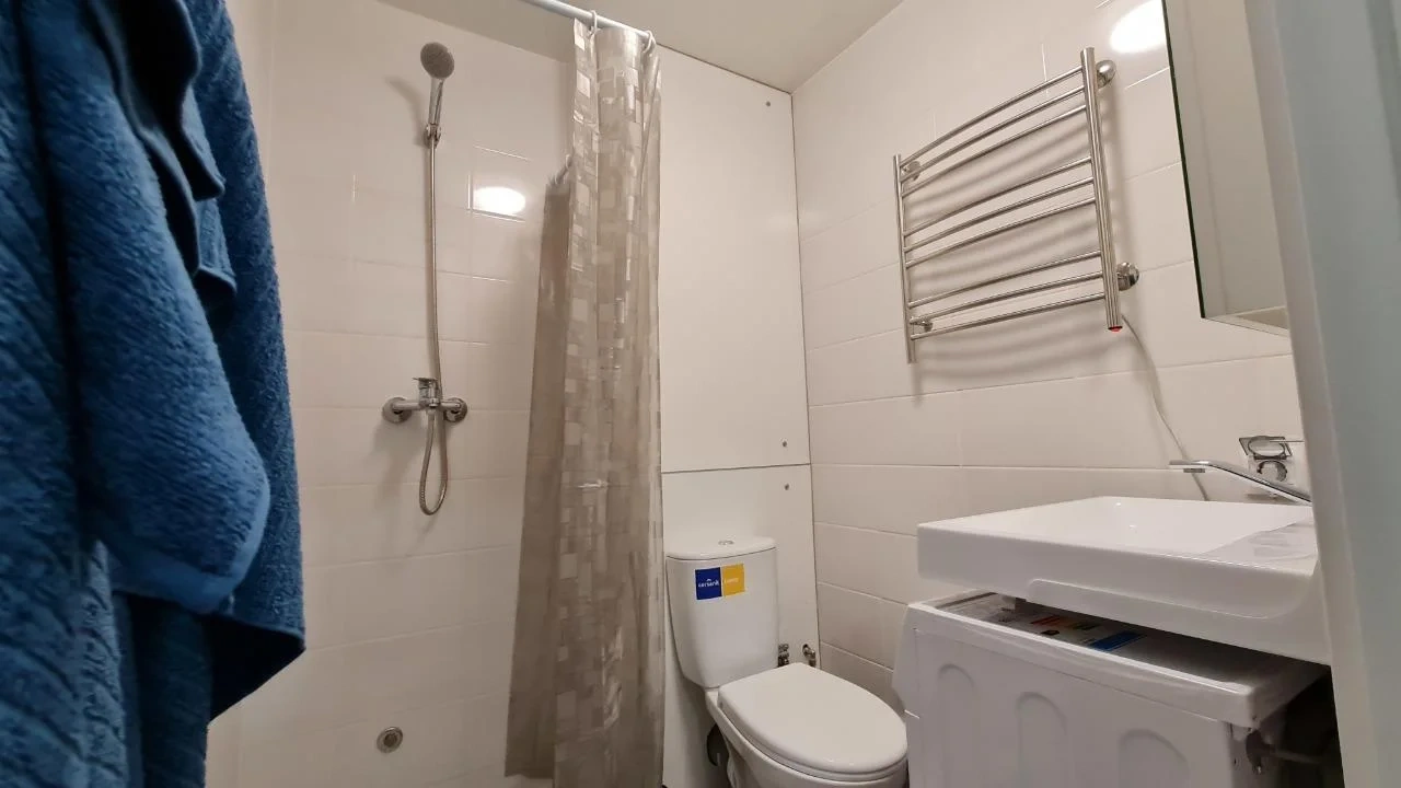 В данной квартире имеется двуспальная кровать с удобным ортопедическим матрасом. Плательный шкаф, телевизор диагональю 50, smart tv. Высокий крайний этаж, над ваши никого нет. Тишина и покой.
