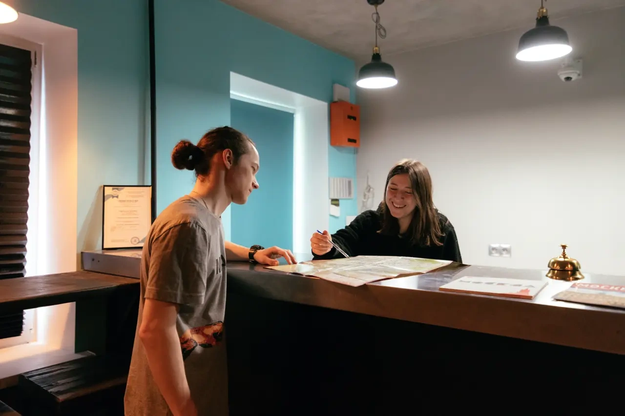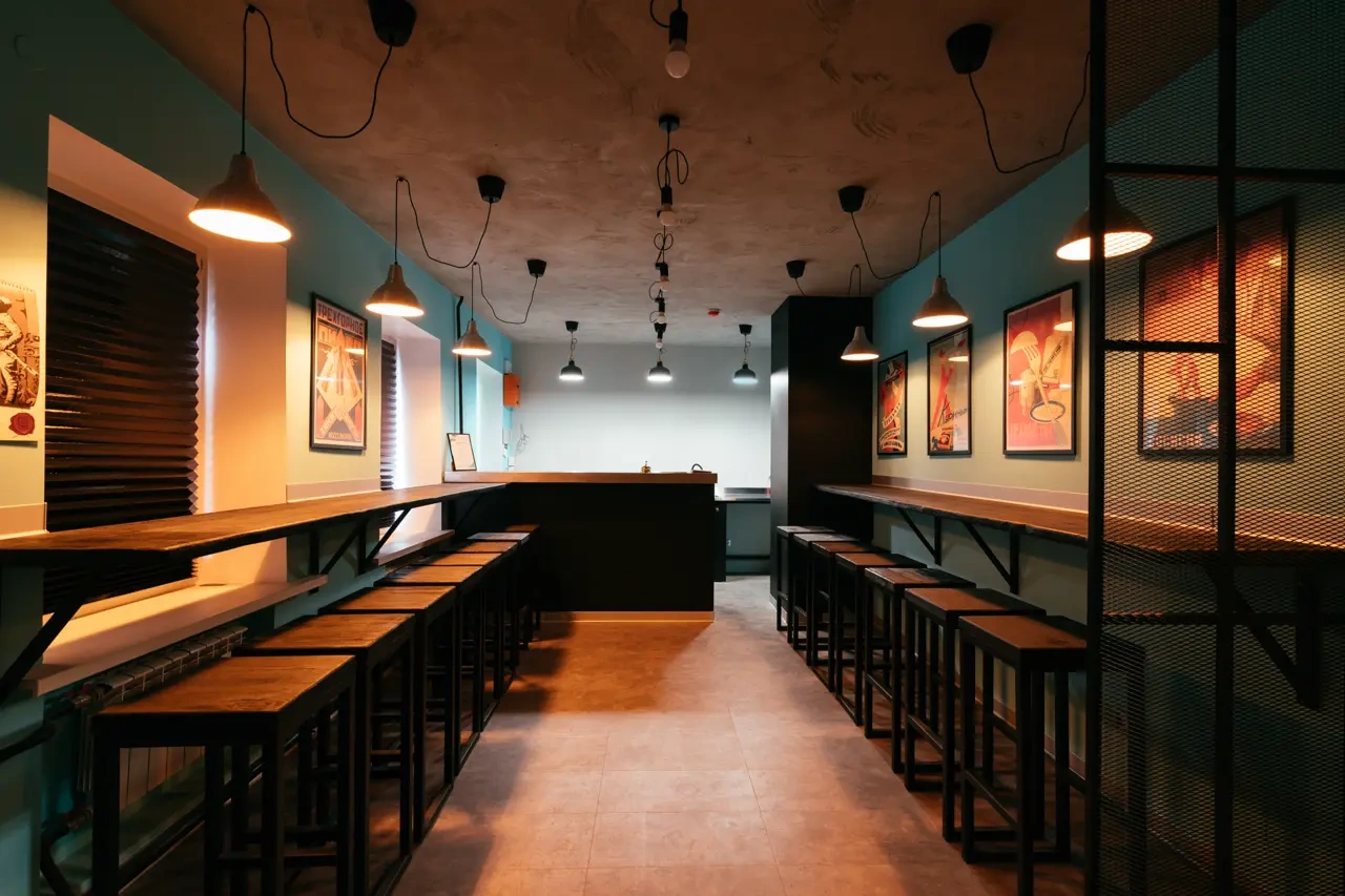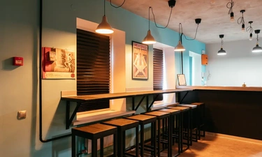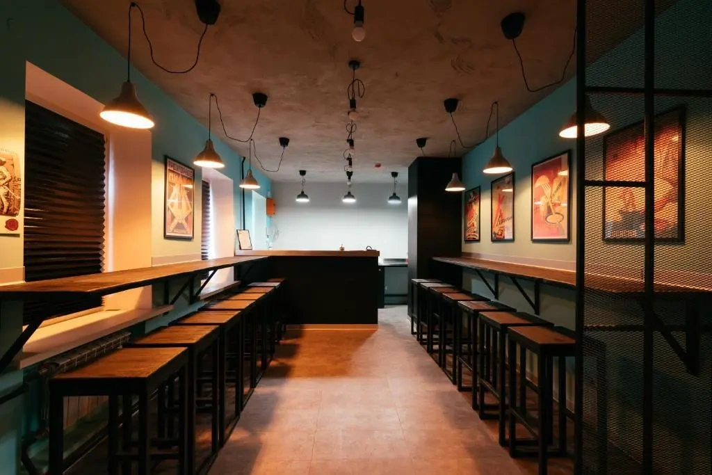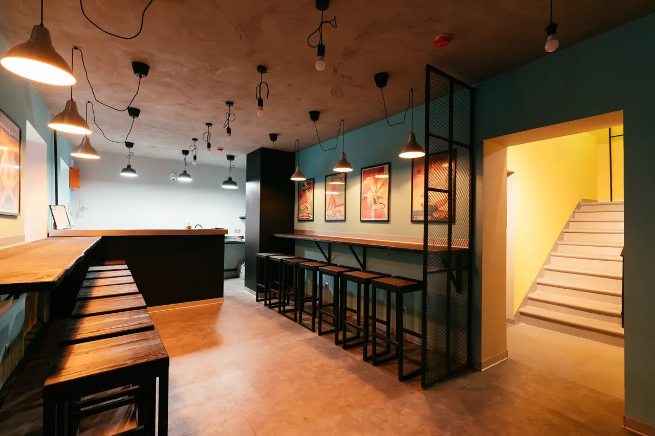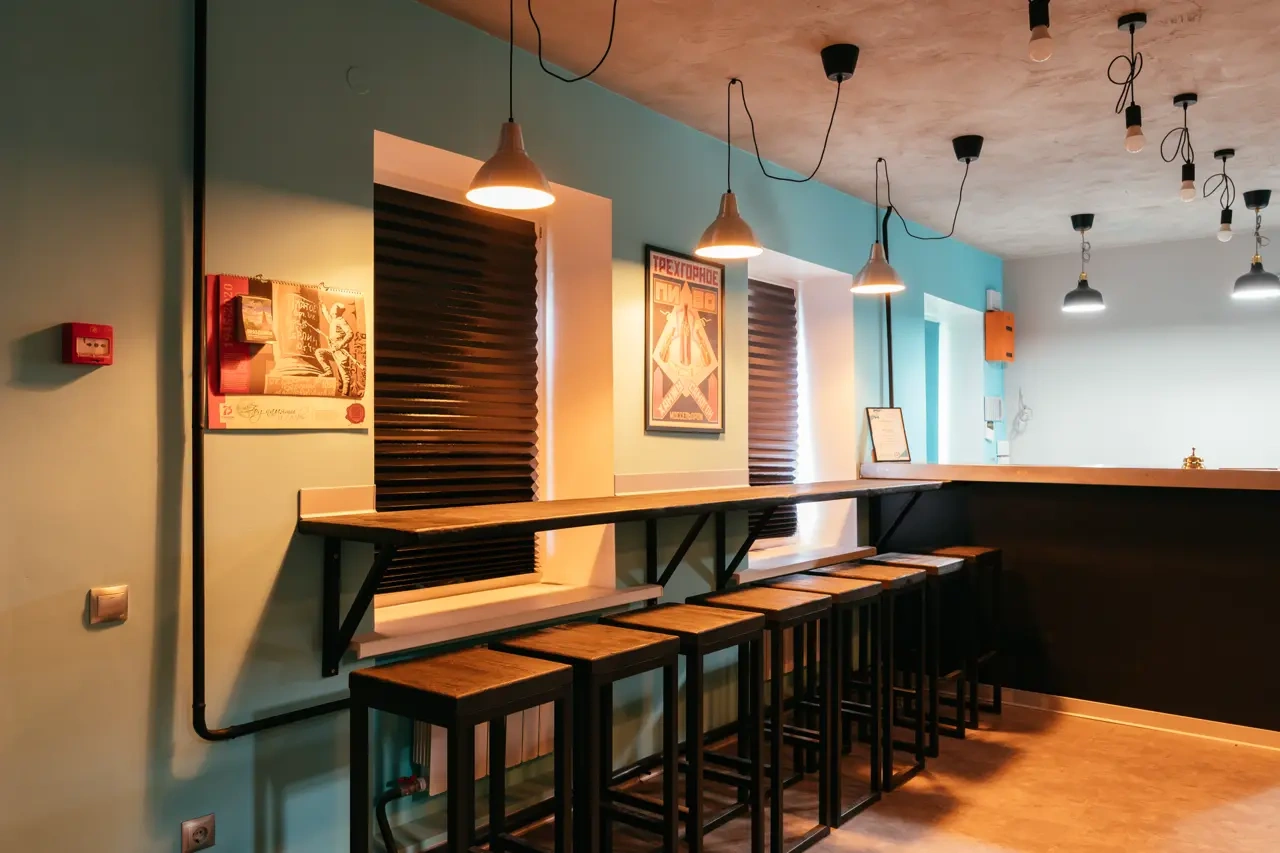 Сам отель выполнен в стиле СССР, на стенах много плакатов советского времени.