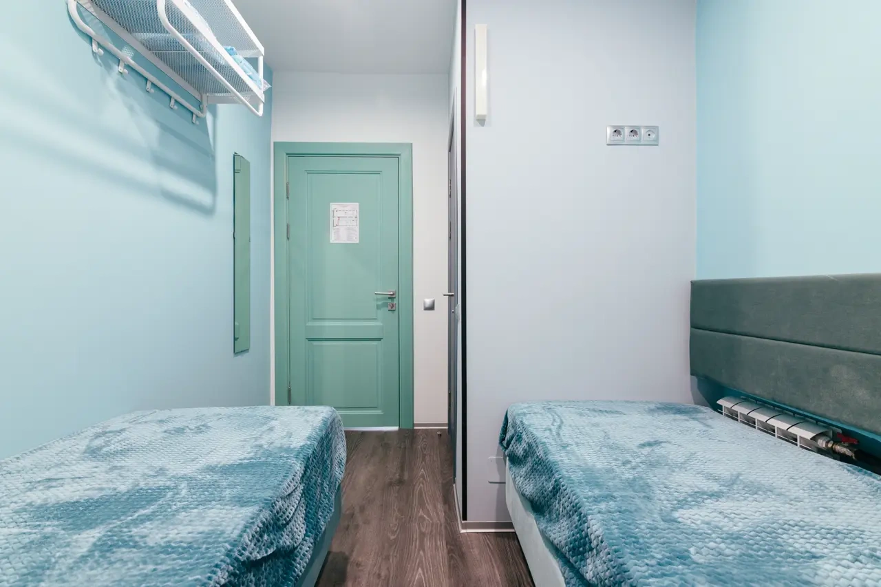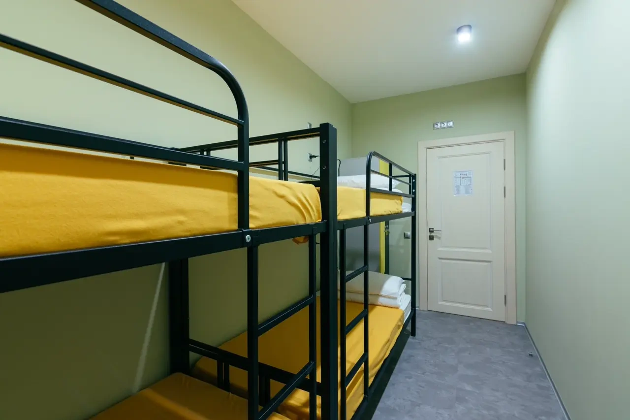 Койко-место в небольшом номере на 4 человек. Предоставляем шкафчики для хранения вещей, полотенца. Душ и туалет - общие. Есть два душевых, два туалета, поэтому очередей в них не будет :)