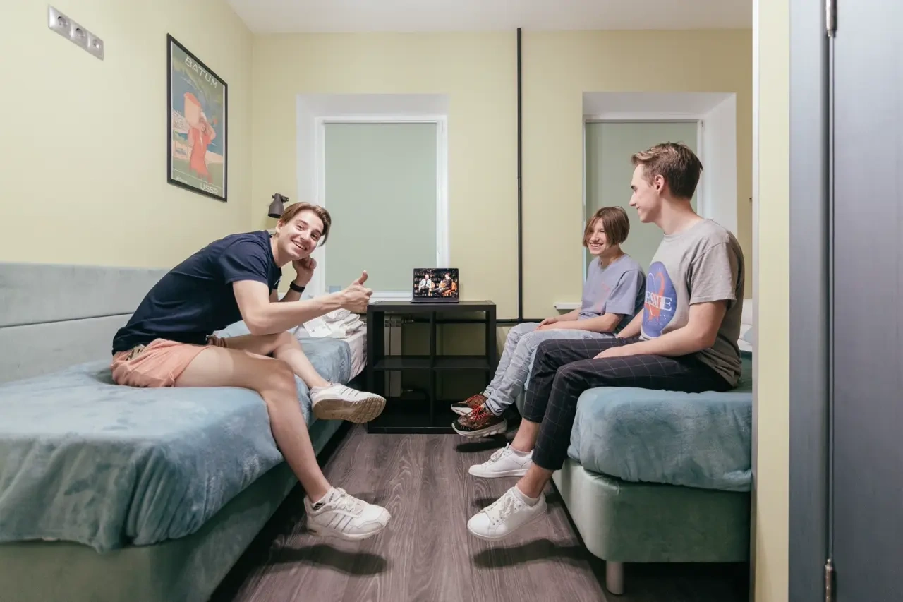 Для тех, кто любит путешествовать с семье и друзьями. Просторный номер на троих человек с персональным душем и туалетом. Мягкие матрасы, полотенца, фен, а так же уборка номера включены в стоимость.