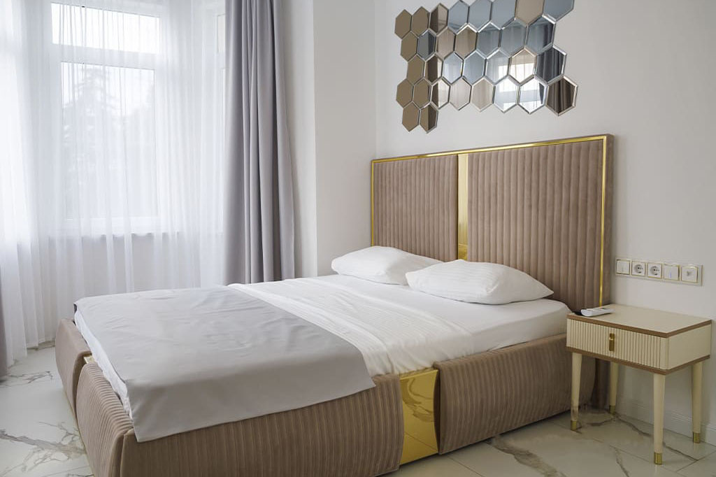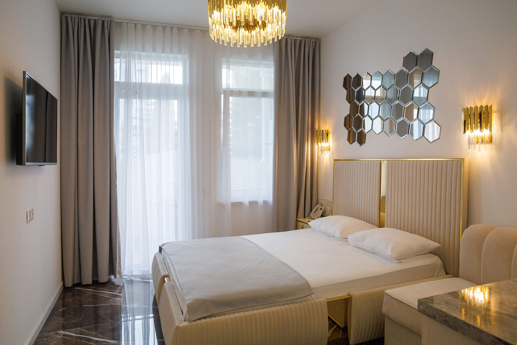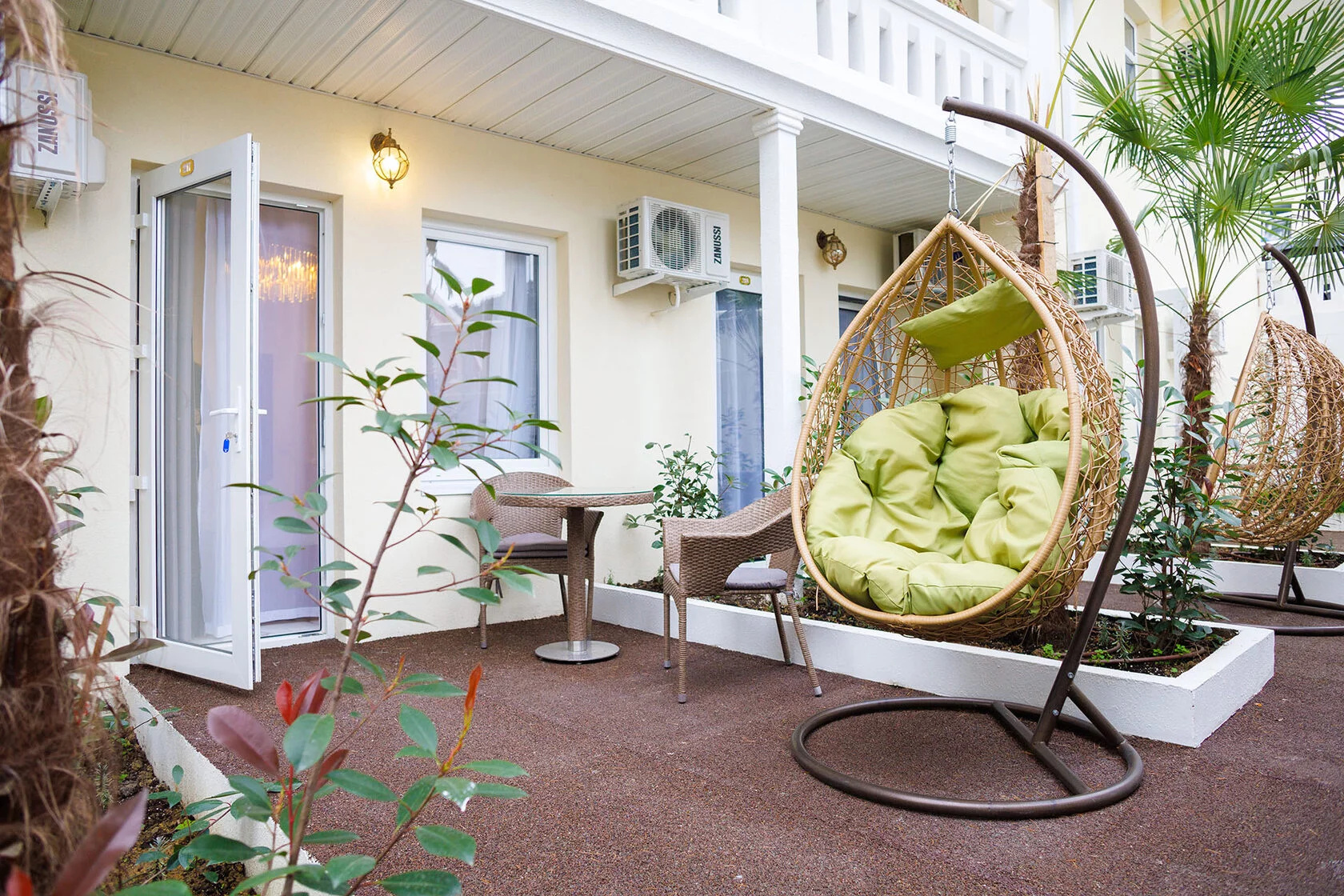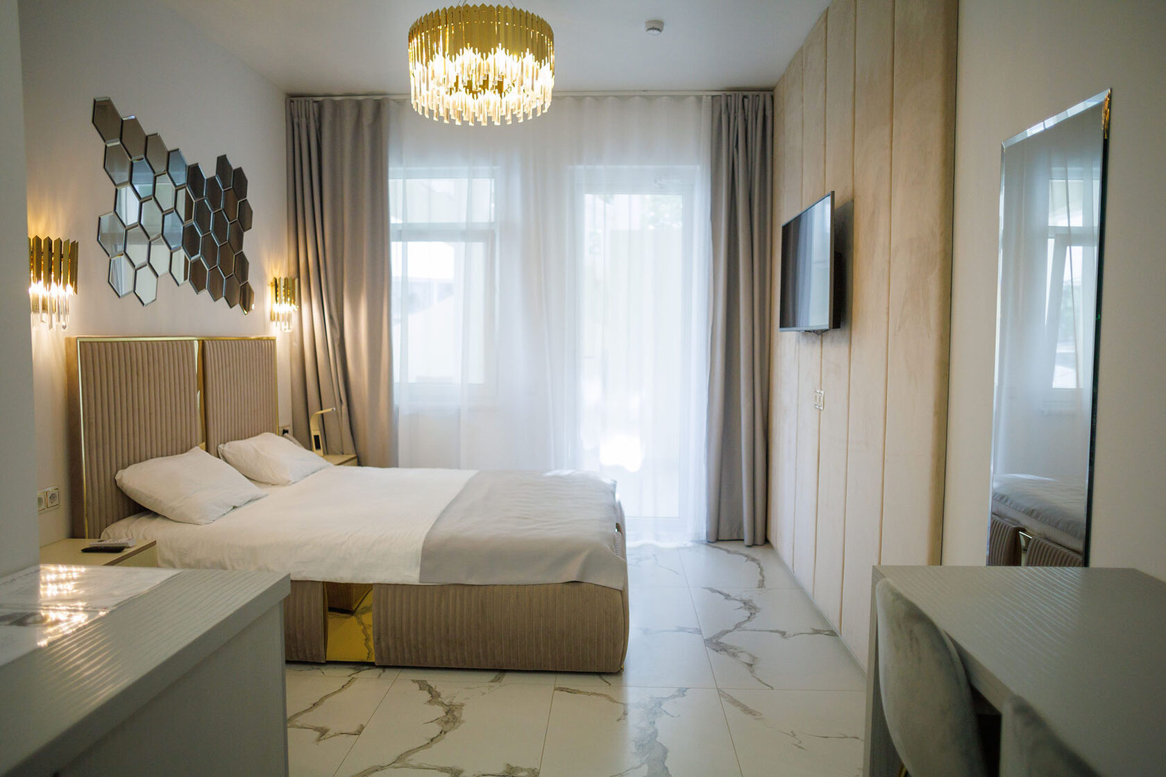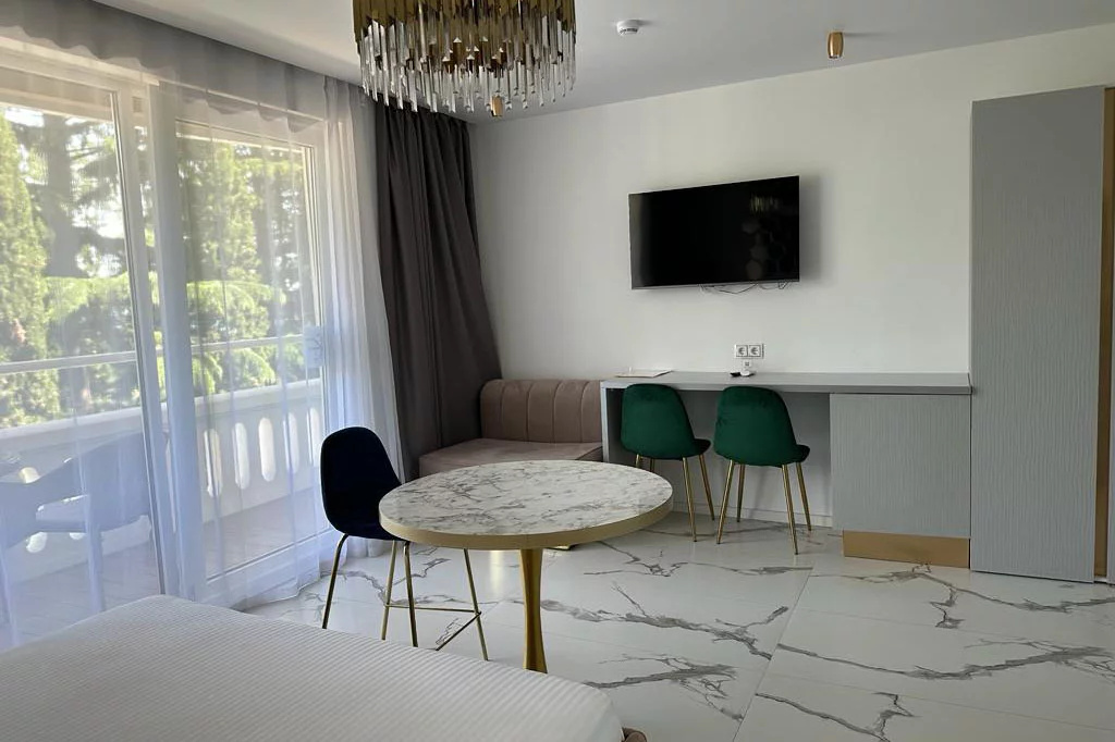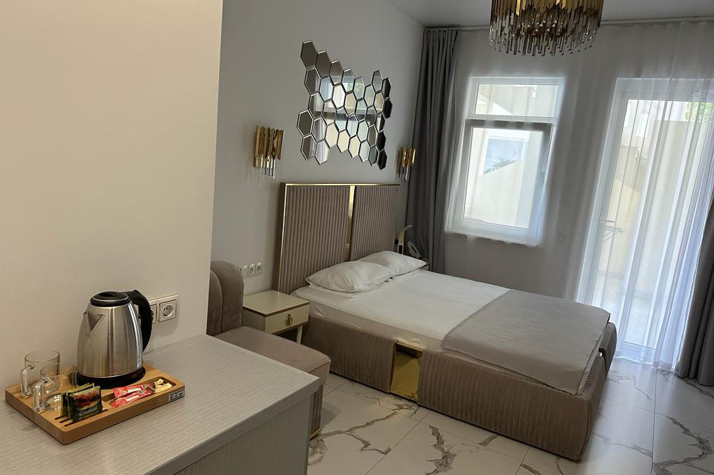 Стильные номера с видом на море обеспечат вам приятный отдых. Разместиться предлагается в современных номерах высокого уровня комфорта, каждый из которых оснащенных мебелью и техникой. В свободное время постояльцы могут отдохнуть в бассейне или в сауне, не выходя за территорию комплекса.