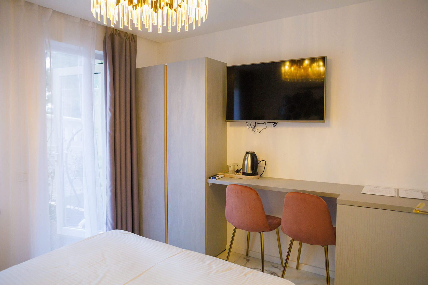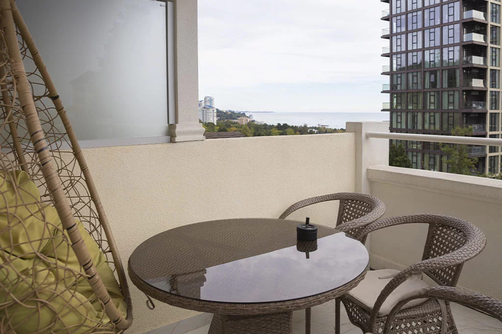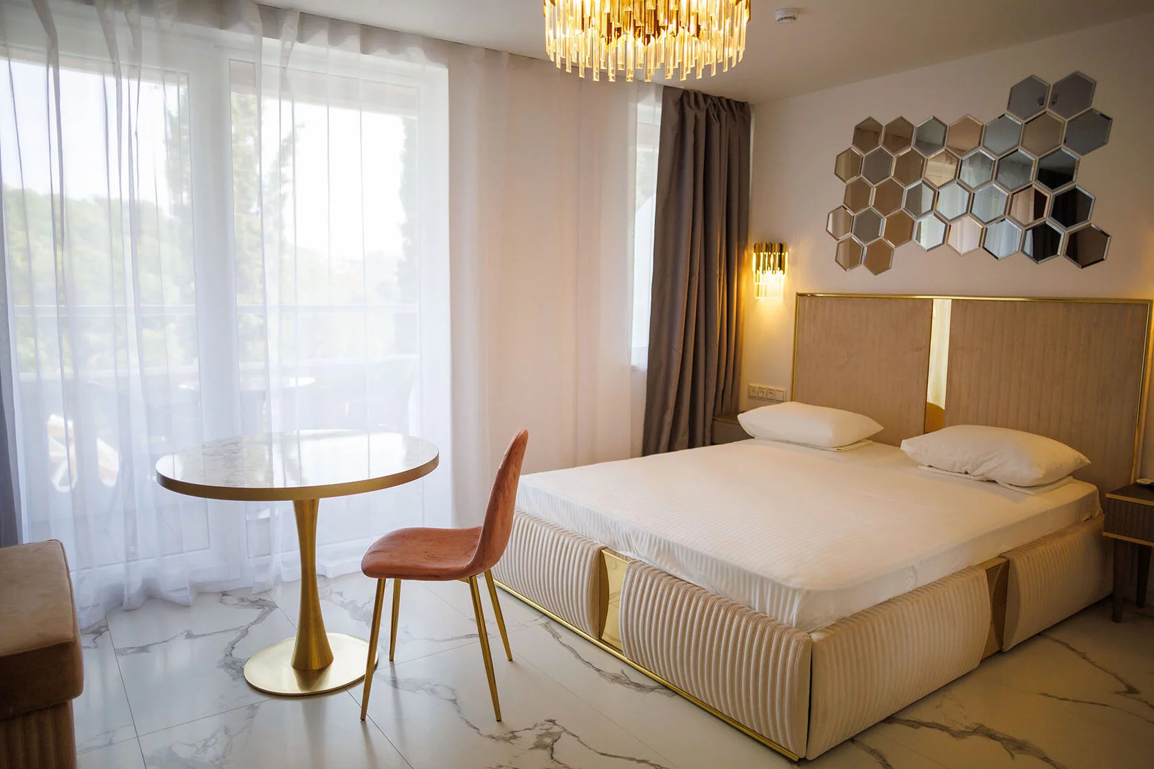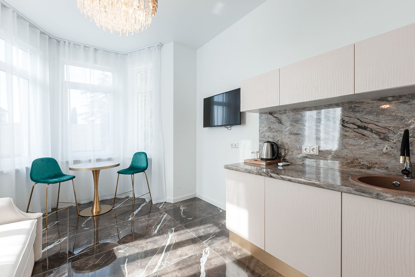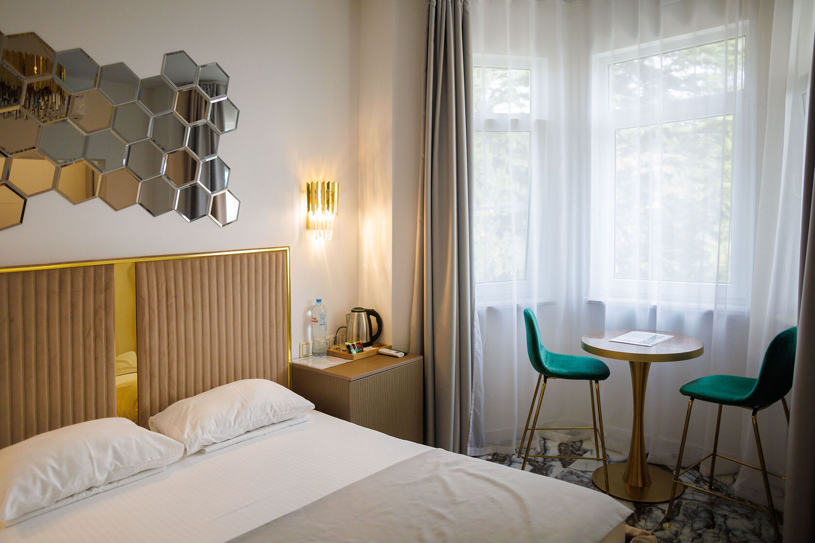 Стильные номера с видом на море обеспечат вам приятный отдых. Разместиться предлагается в современных номерах высокого уровня комфорта, каждый из которых оснащенных мебелью и техникой. В свободное время постояльцы могут отдохнуть в бассейне или в сауне, не выходя за территорию комплекса.