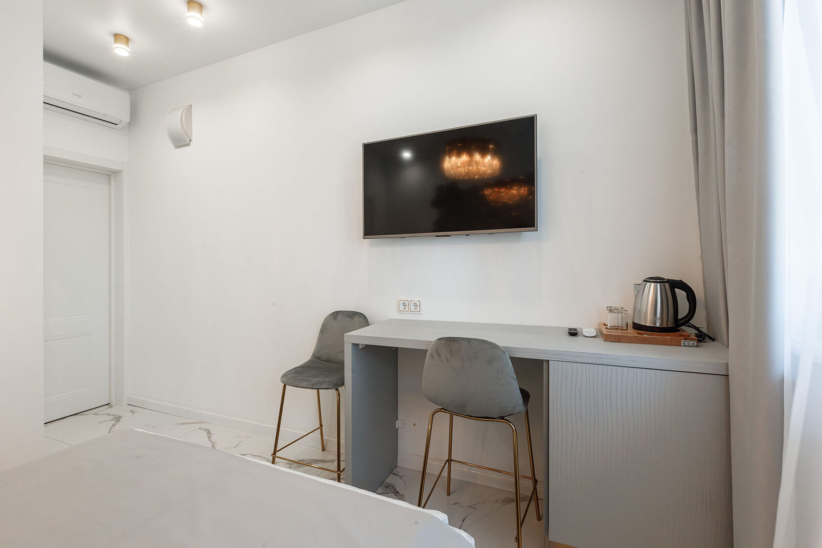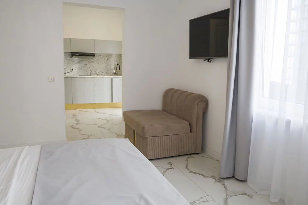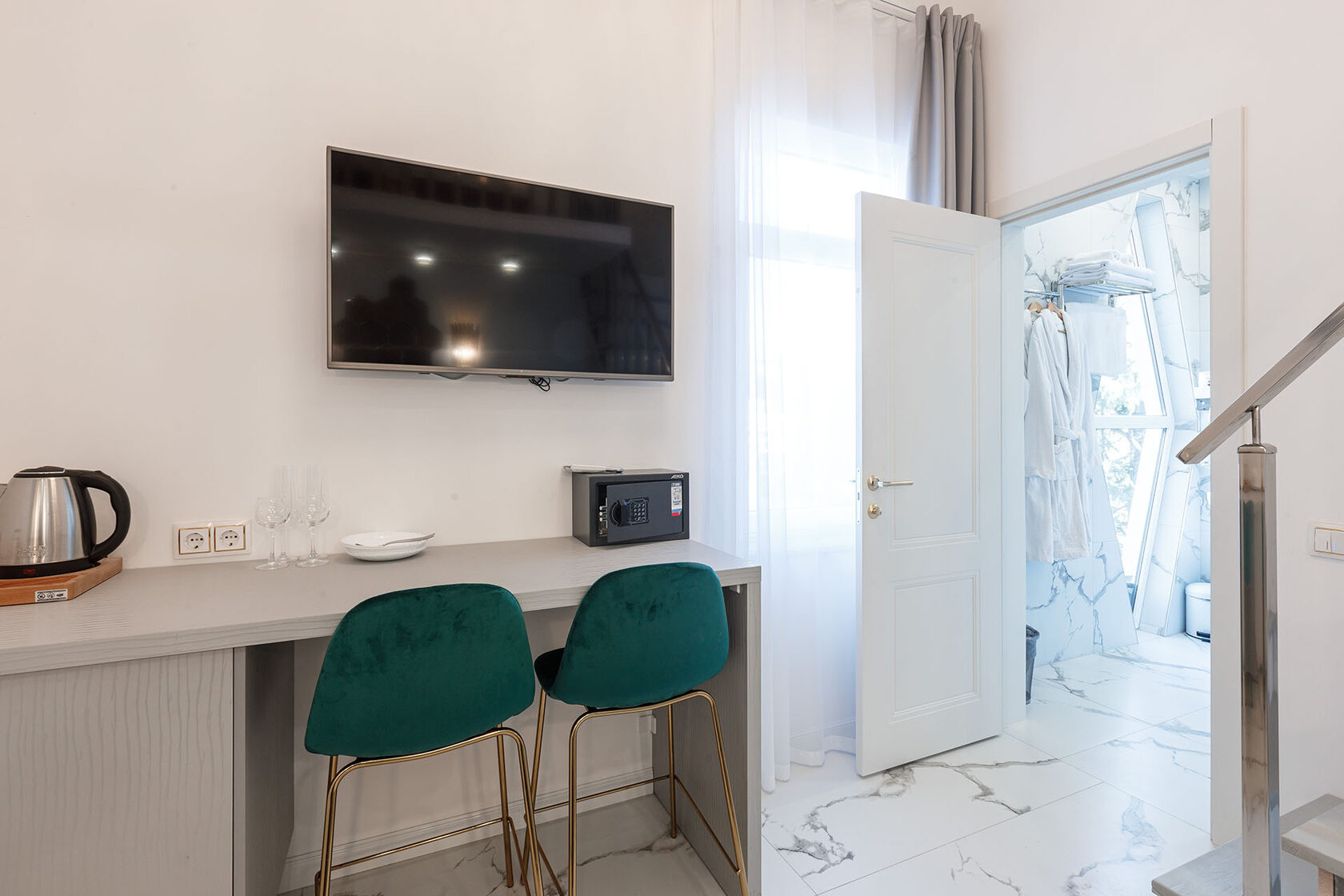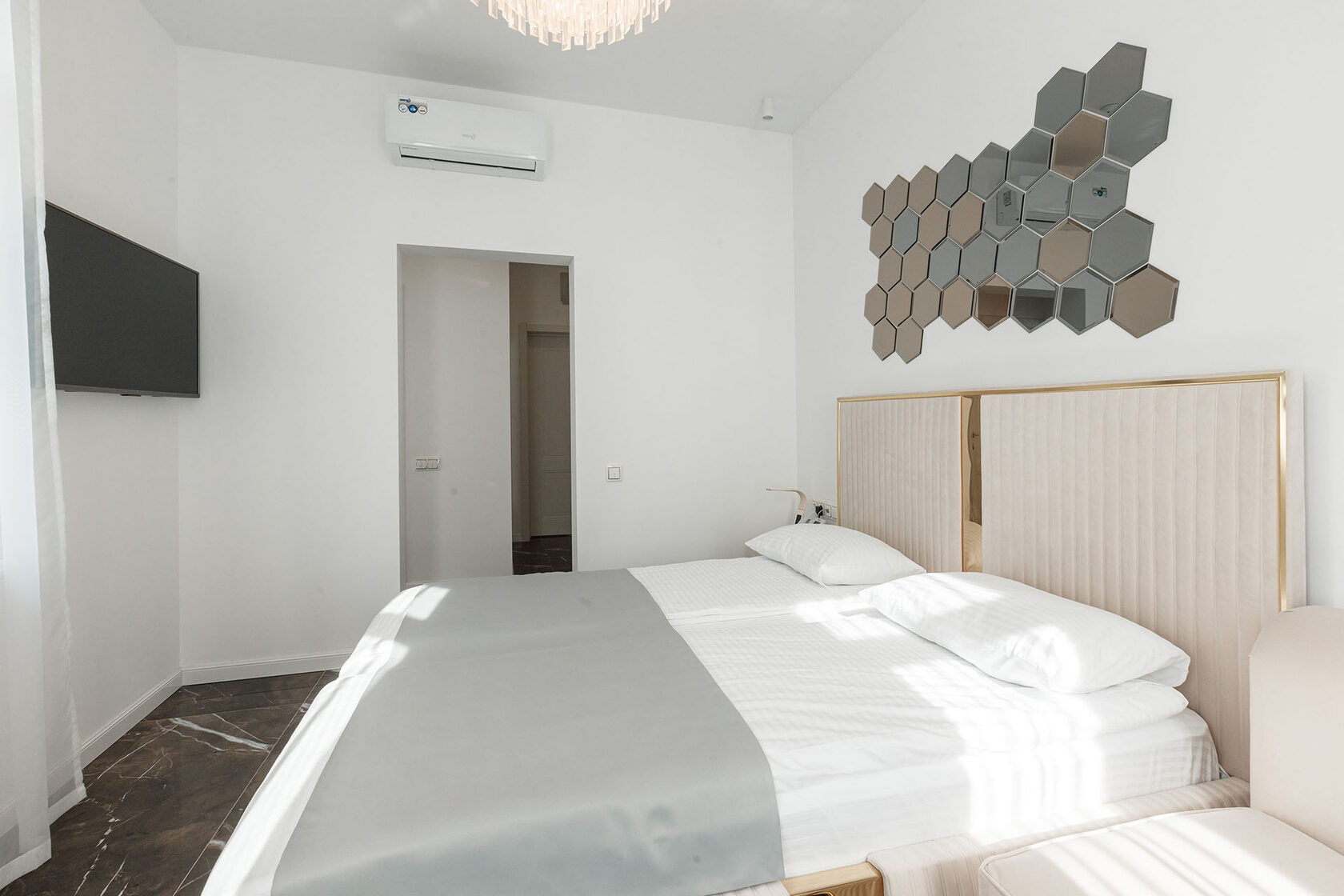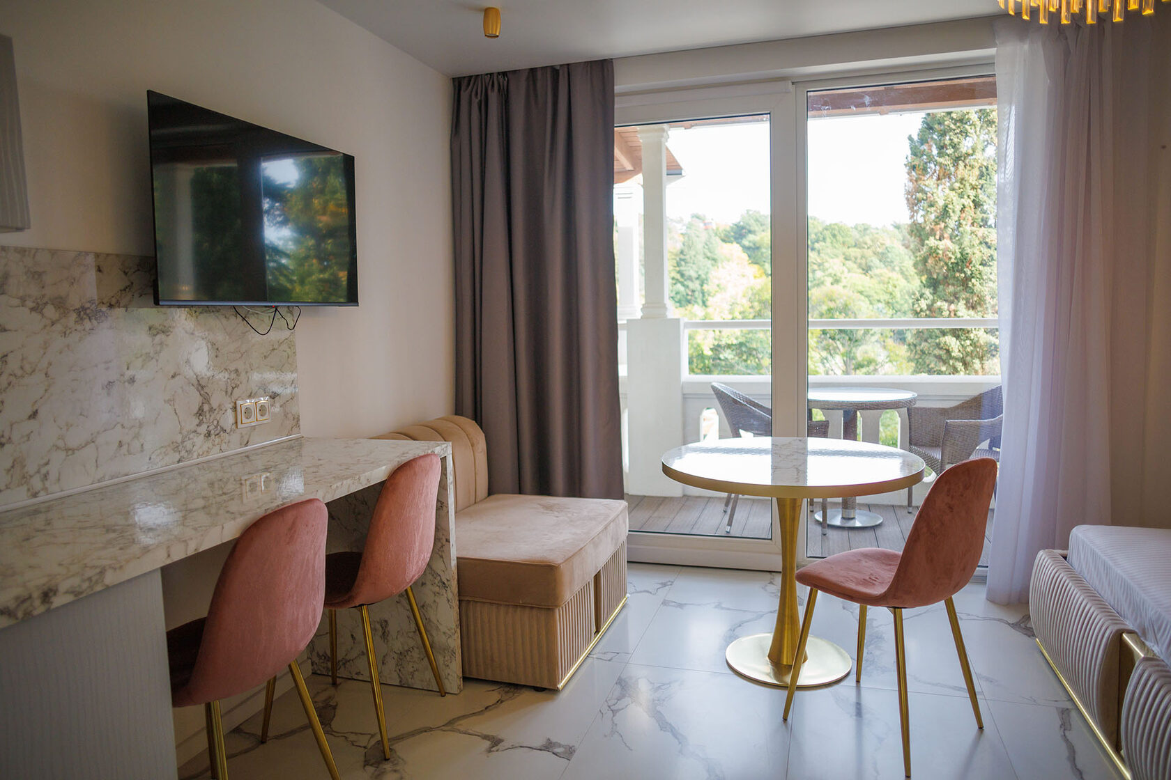 Стильные номера с видом на море обеспечат вам приятный отдых. Разместиться предлагается в современных номерах высокого уровня комфорта, каждый из которых оснащенных мебелью и техникой. В свободное время постояльцы могут отдохнуть в бассейне или в сауне, не выходя за территорию комплекса.