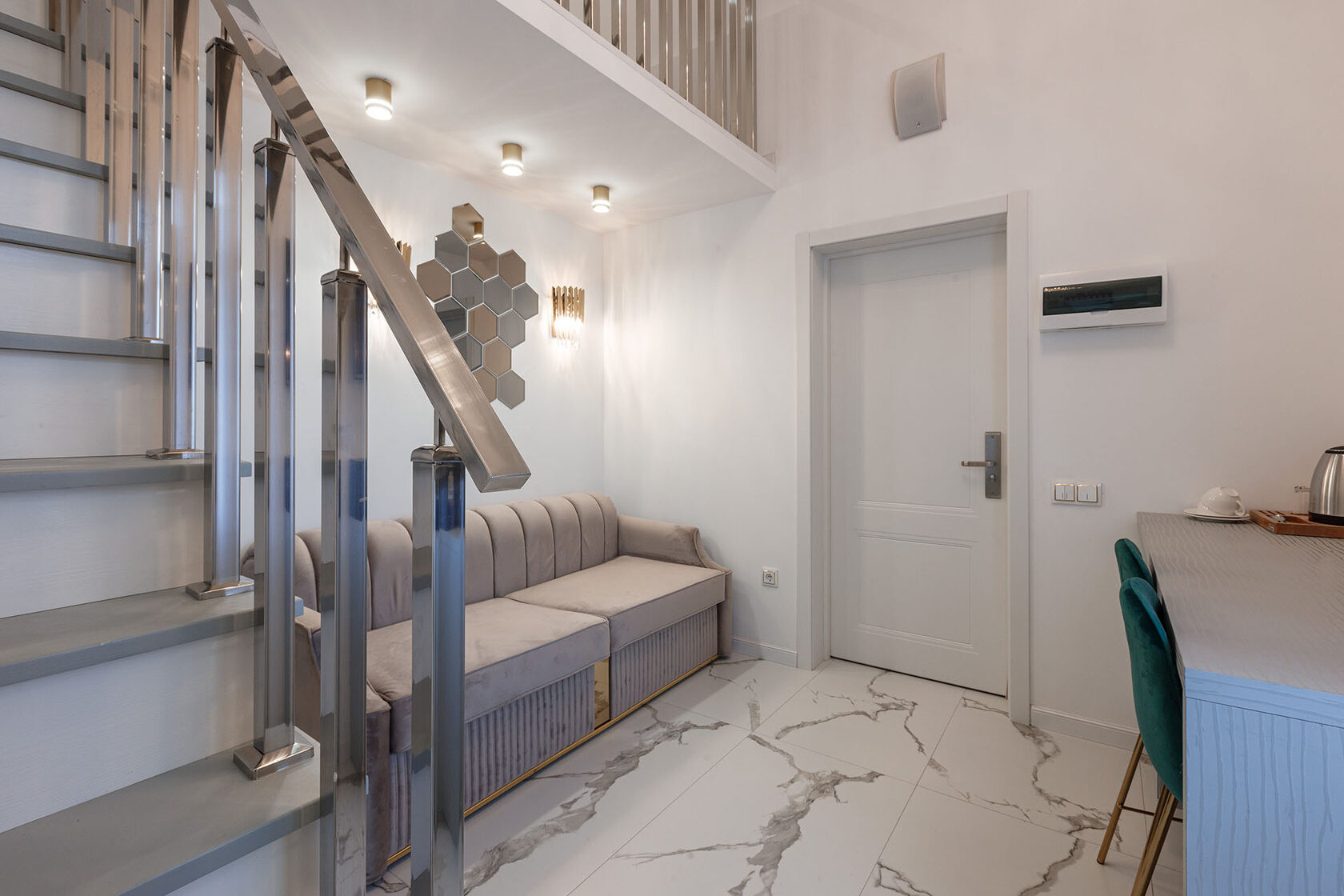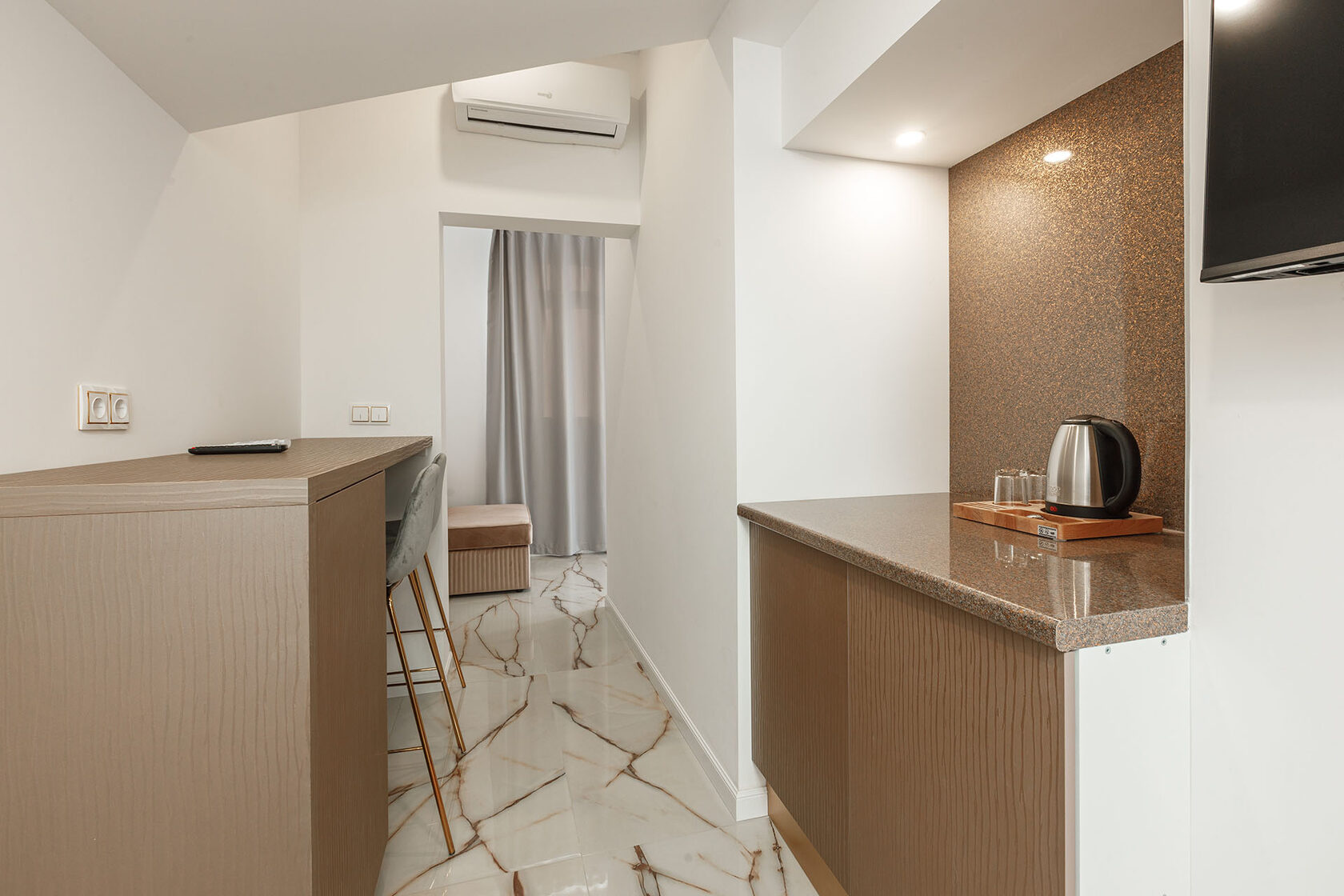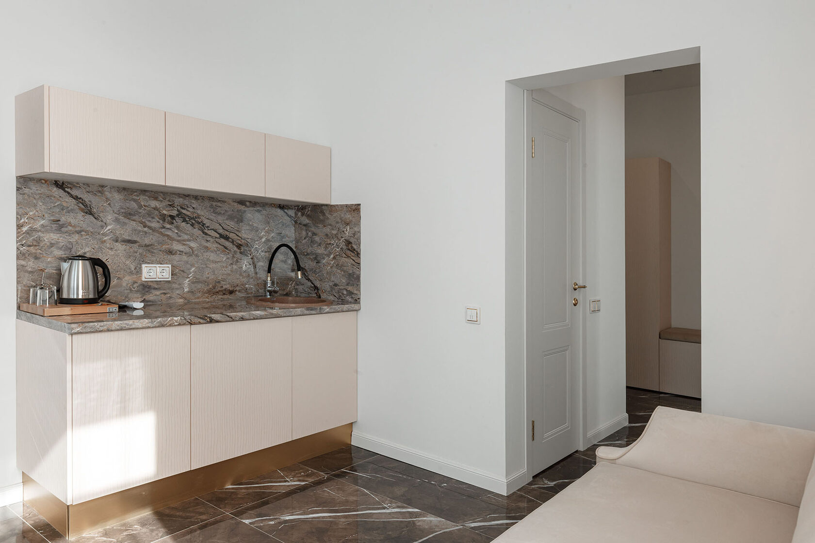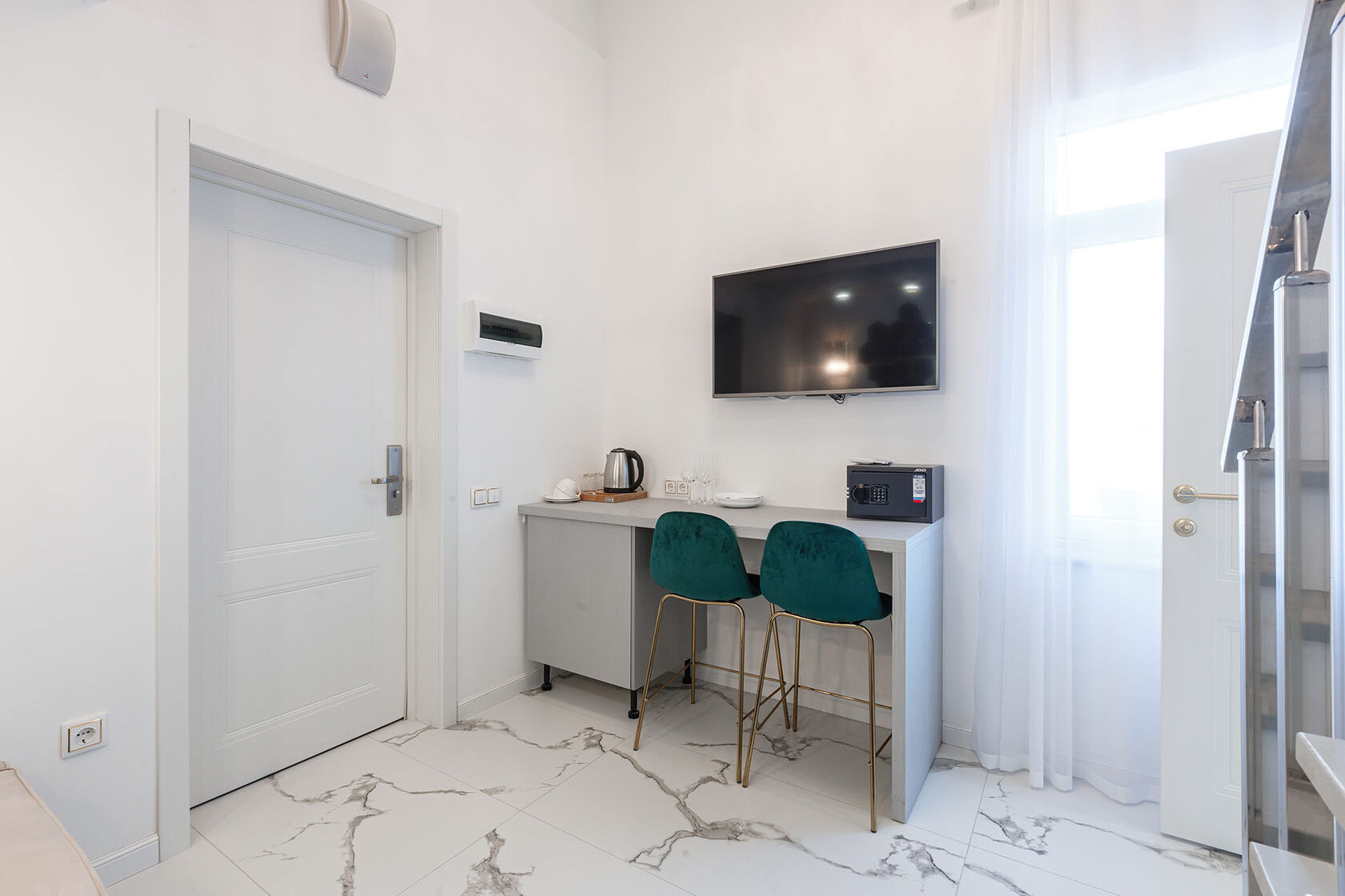 Стильные номера с видом на море обеспечат вам приятный отдых. Разместиться предлагается в современных номерах высокого уровня комфорта, каждый из которых оснащенных мебелью и техникой. В свободное время постояльцы могут отдохнуть в бассейне или в сауне, не выходя за территорию комплекса.