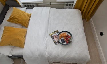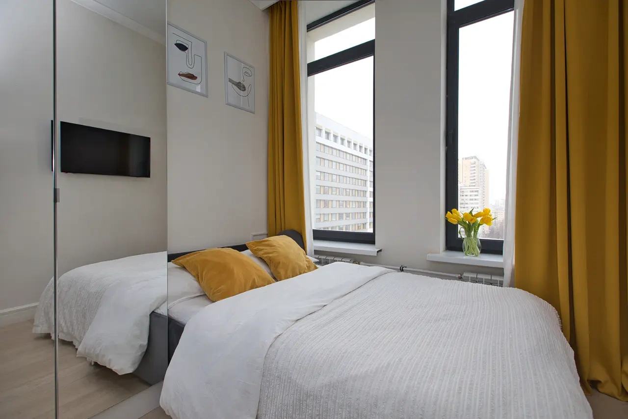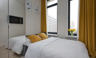 В квартире имеется одно двуспальное (140х200). Для проведения досуга есть wi-fi,телевизор (smart-tv),радио.