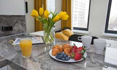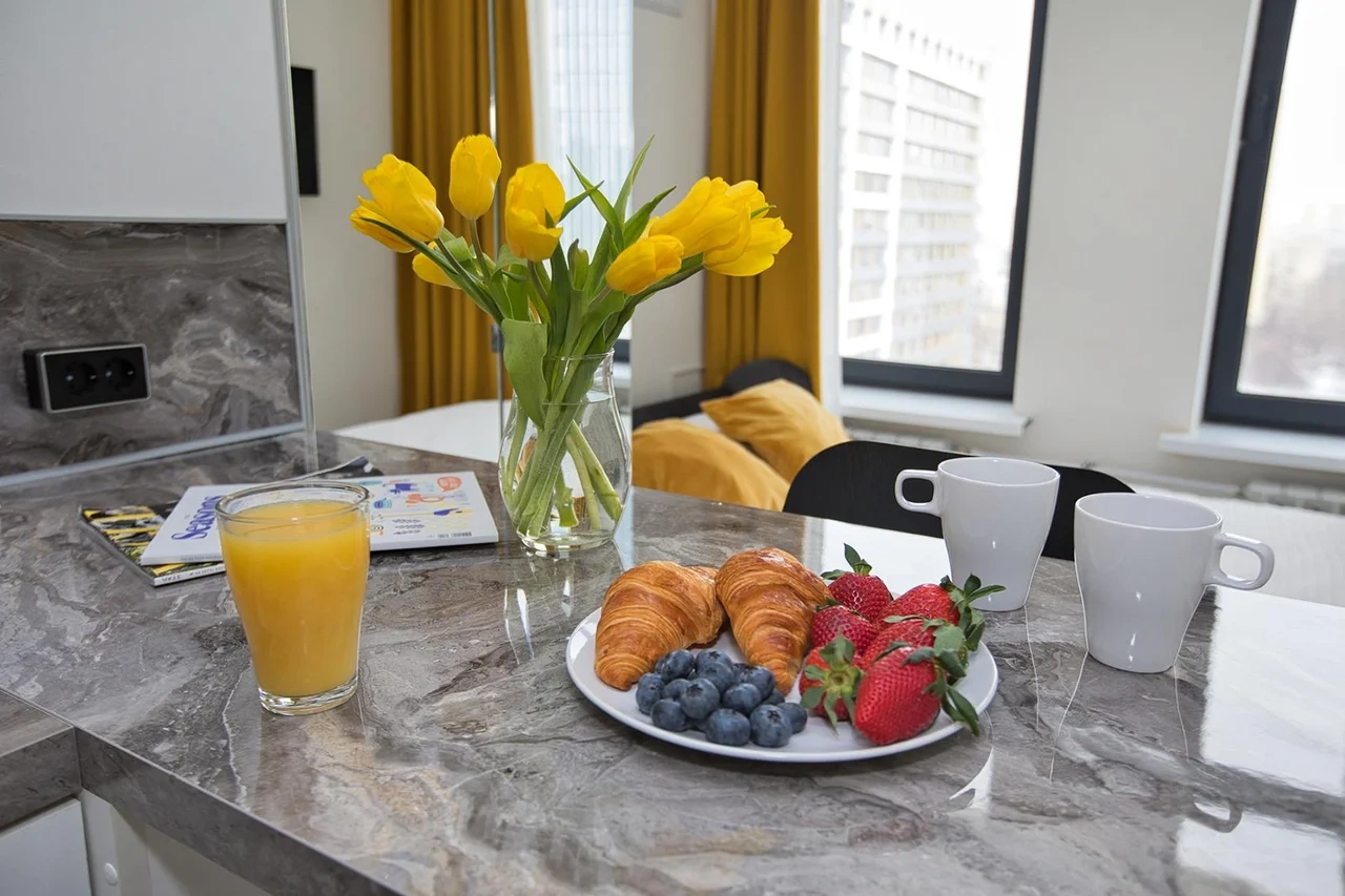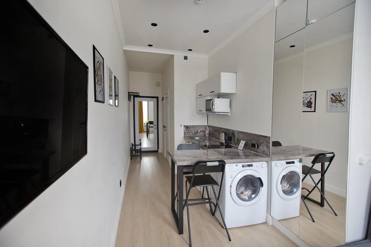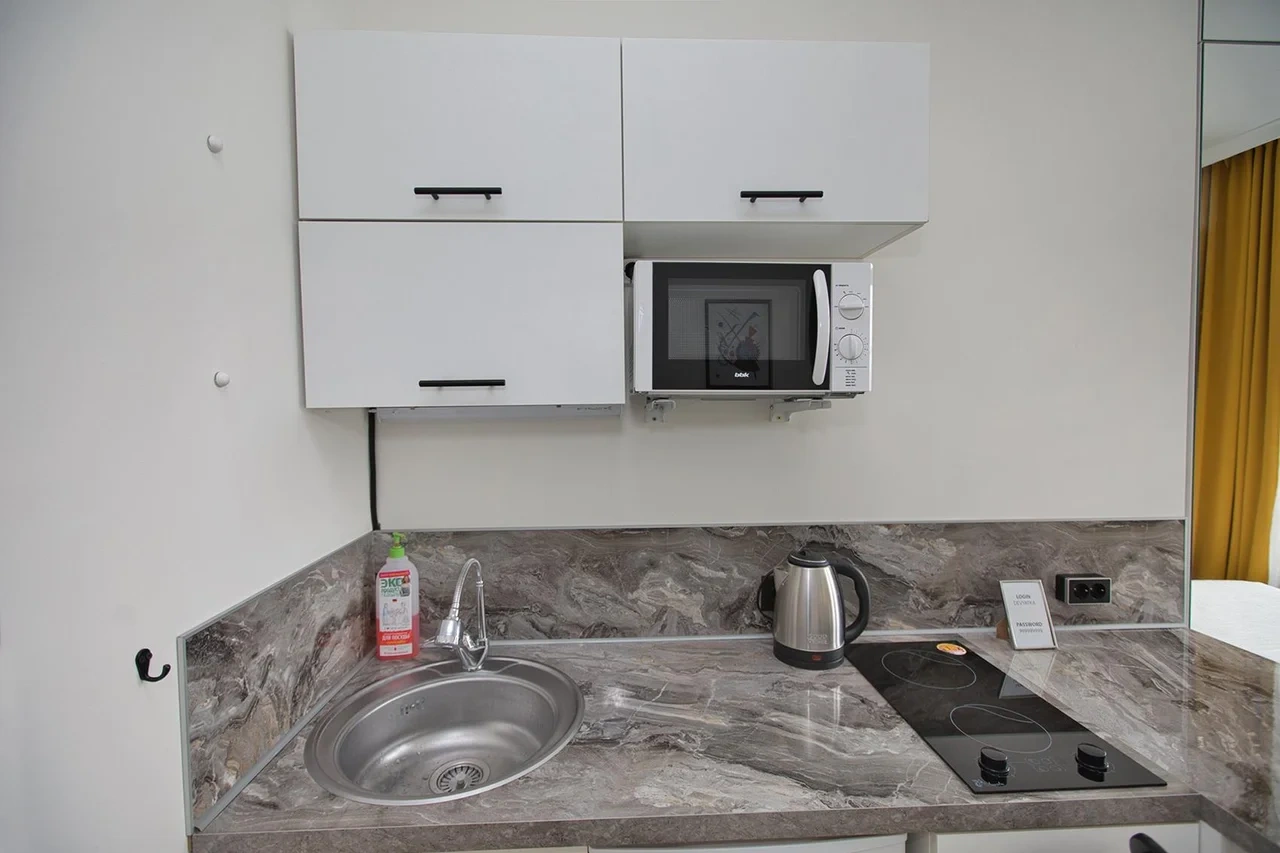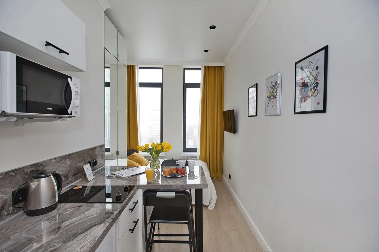 Не смотря на свою компактность в апартаментах есть все необходимое для комфортного проживания.