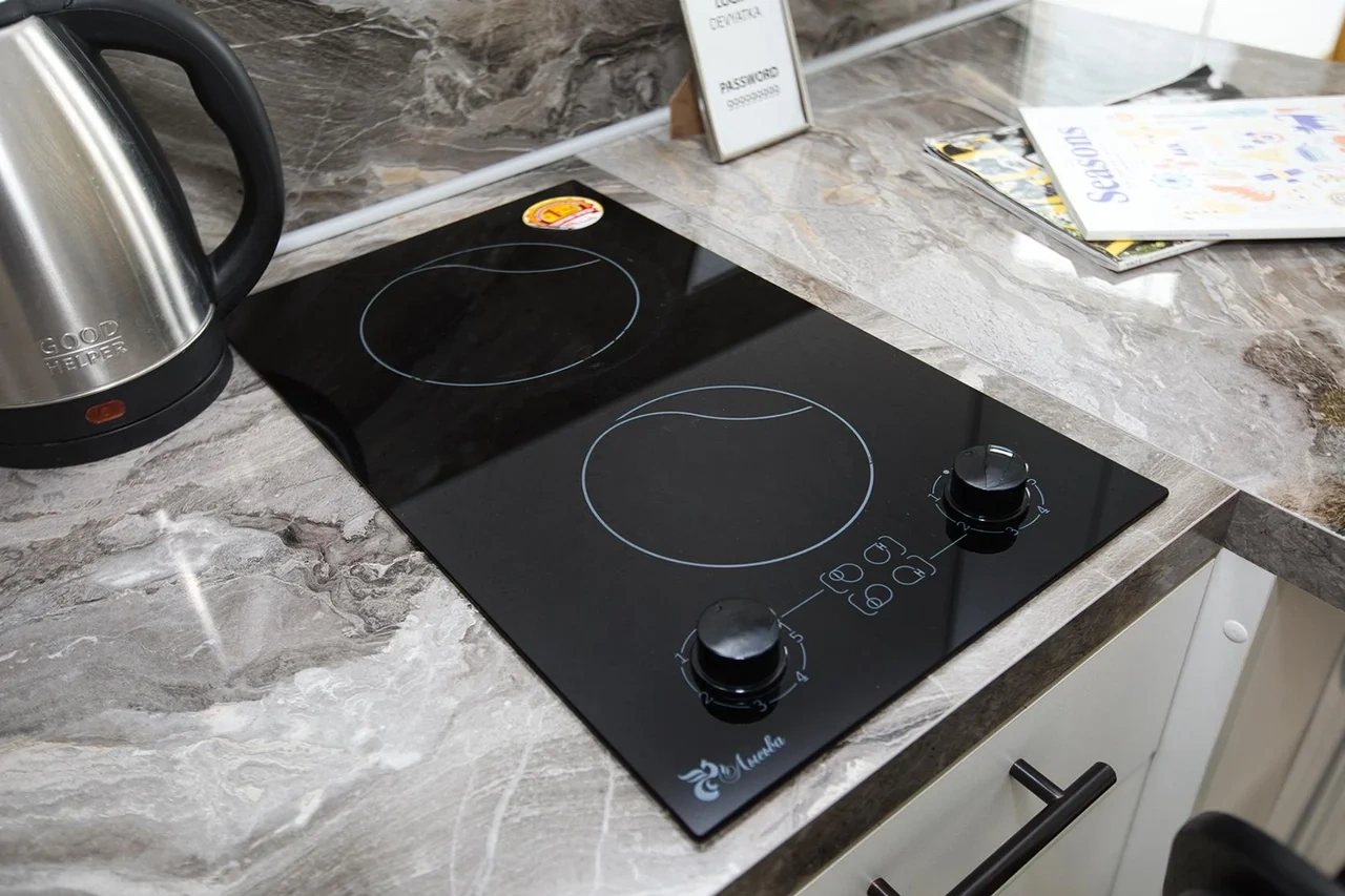 В кухонной зоне есть вся необходимая для приготовления и приема пищи посуда.