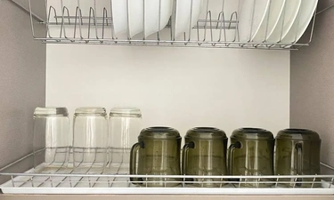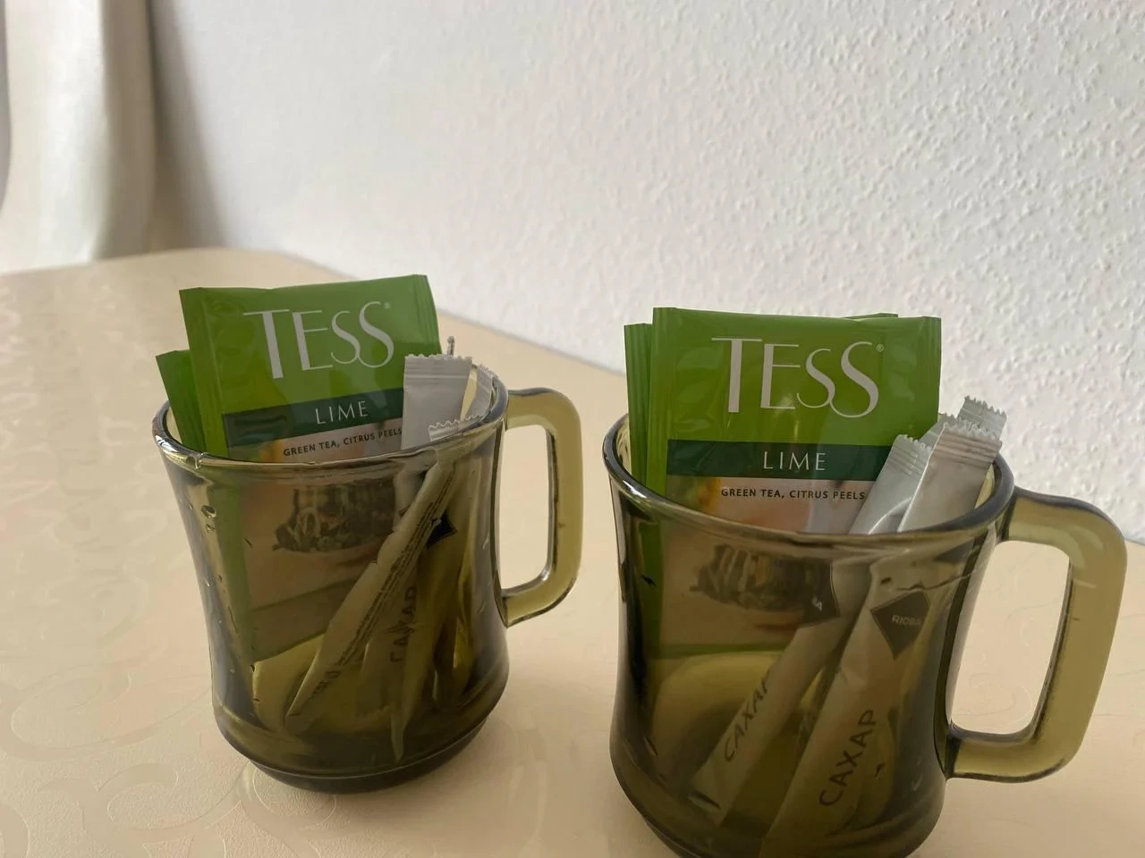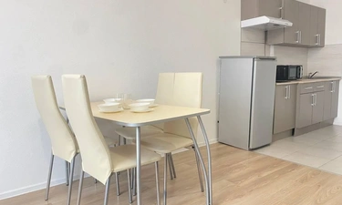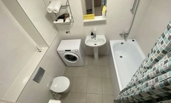 Есть вся необходимая кухонная гарнитура и столовые принадлежности на 4 гостей. В ванной комнате: для каждого гостя полотенце, тапочки, зубной набор, шампунь, гель для душа. Стиральная машина и фен.