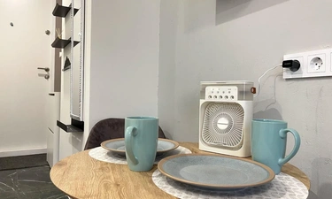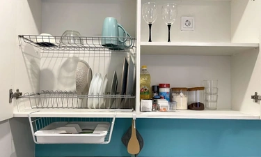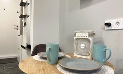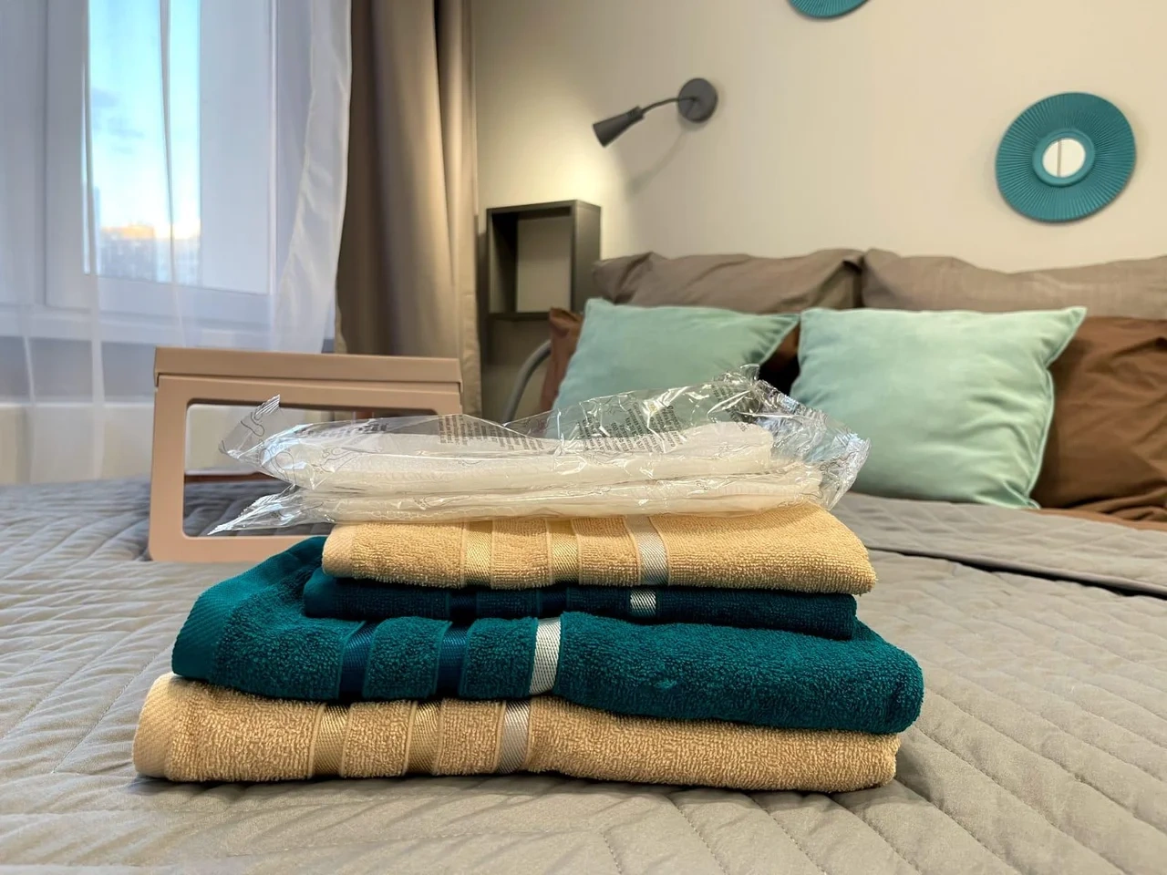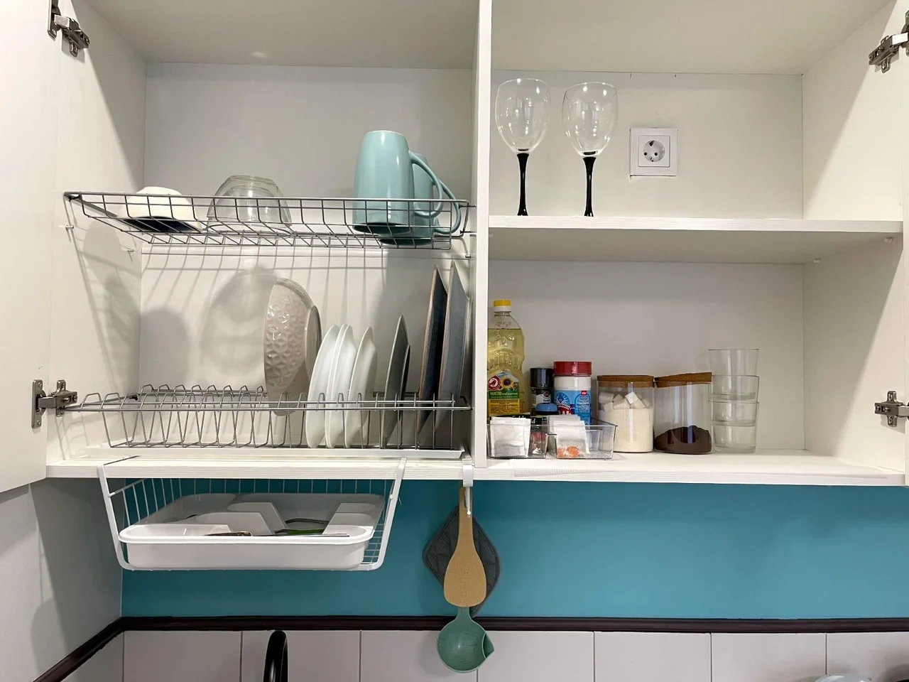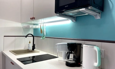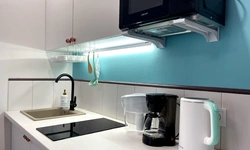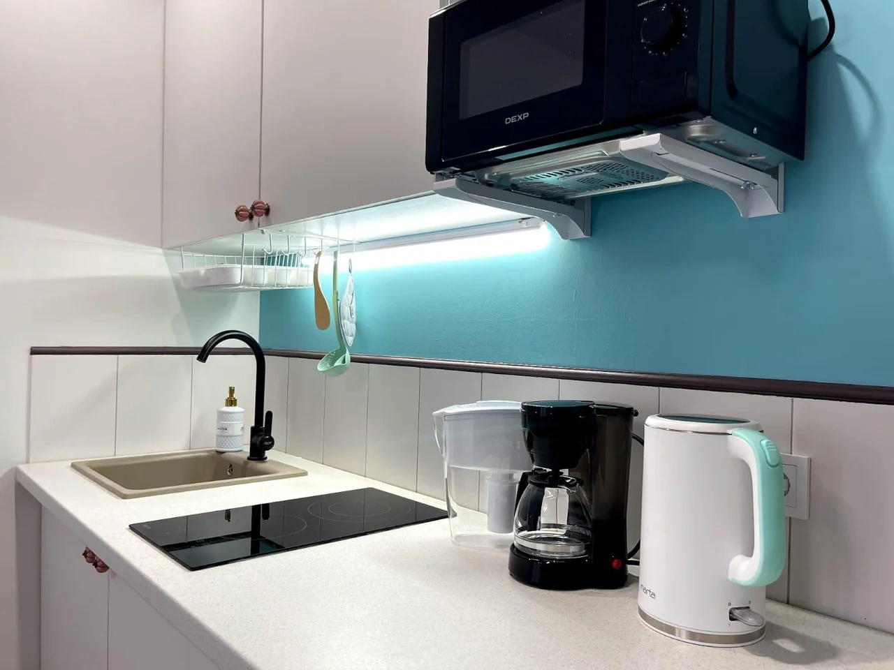 - Бытовая техника: холодильник, микроволновка, Эл. Чайник, варочная панель, утюг, фен, гладильная доска, стиральная машина с сушкой