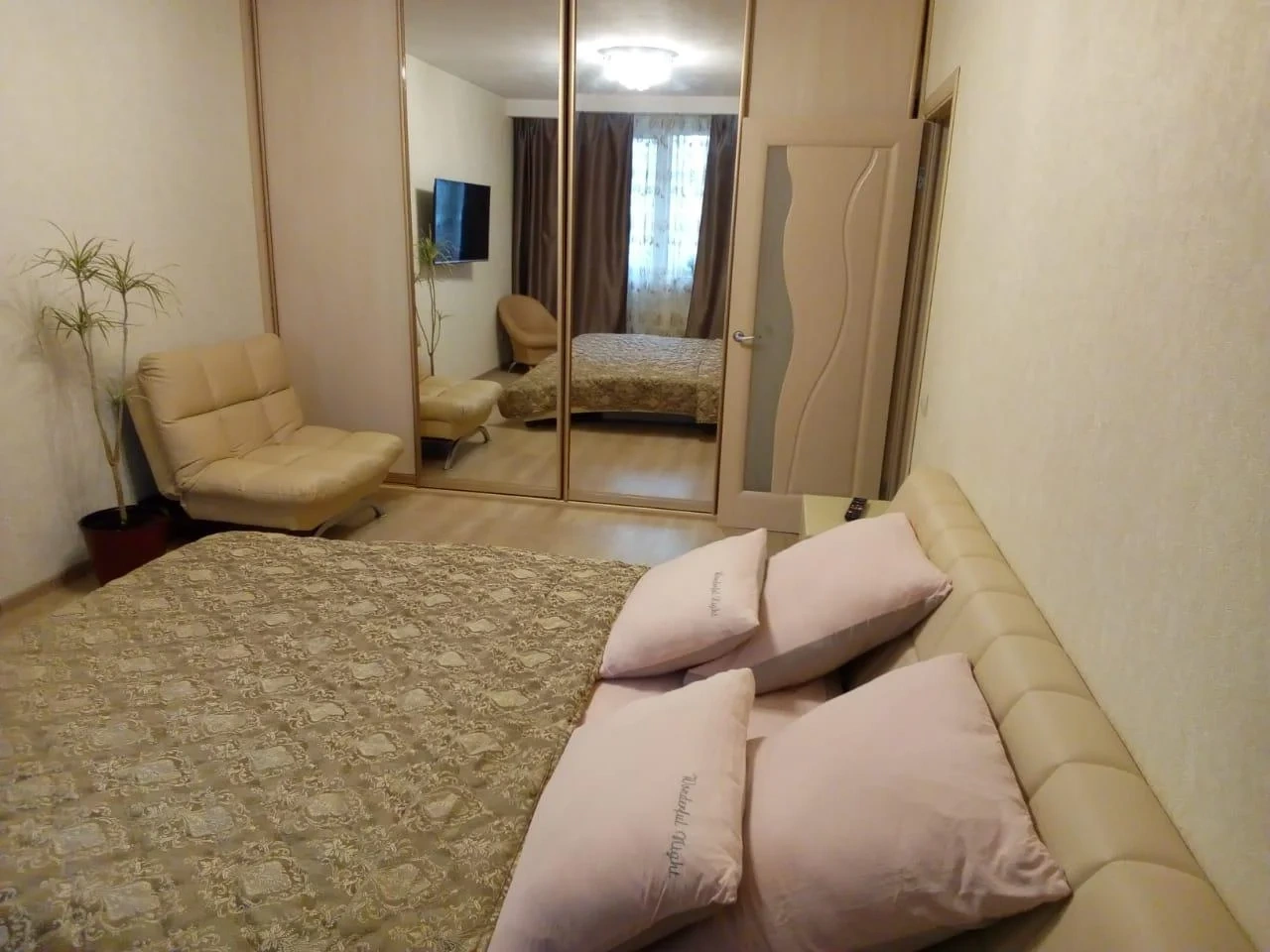 Удобная двуспальная кровать, оборудованная кухня (плита, микроволновка, холодильник, посуда), стиральная машинка, застекленная лоджия. Бесплатный wi-fi. Вокруг развитая инфраструктура - торговый центр, продовольственные магазины на любой вкус.
