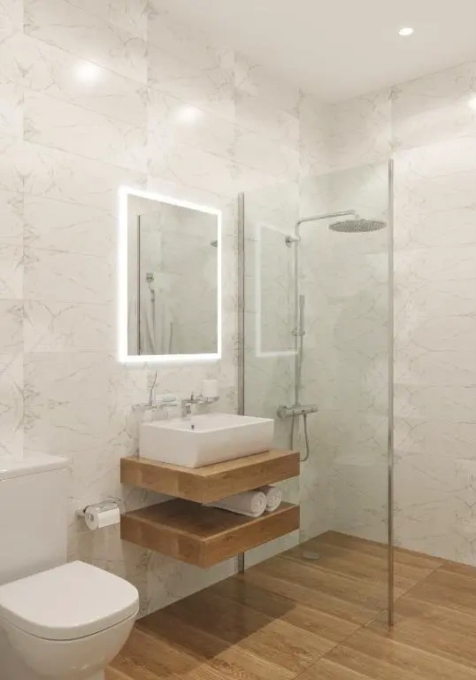 Тёплую воду в душе пришлось несколько минут "подождать". Скорее можно назвать её "едва" тёплой...