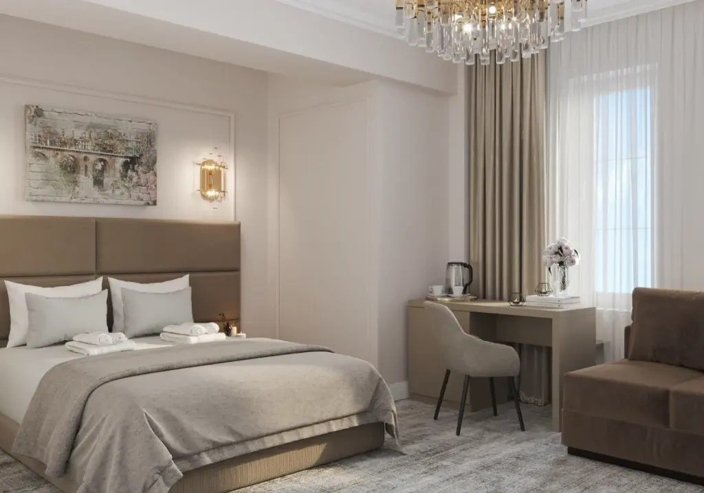 Данный отель не соответствует фото, номер на фото в разы лучше, чем в жизни, очень уставший ремонт, затертости/потертости, сам отель расположен в самом центре, что круто, но в каком-то здании бц, где на первом этаже обменник и совершенно не презентабельная входная зона. Уровень 4-ых звезд явно не соблюден, персонал не внимателен, на ресепшн никакой приветливости, но главное это ремонт, фото слишком идеальные