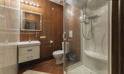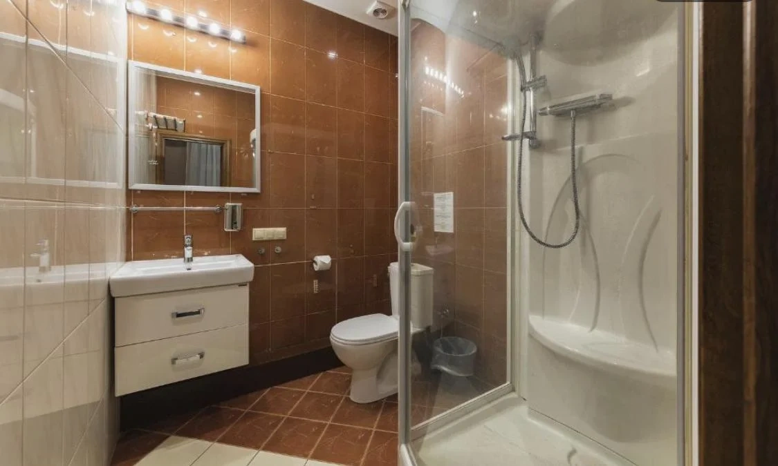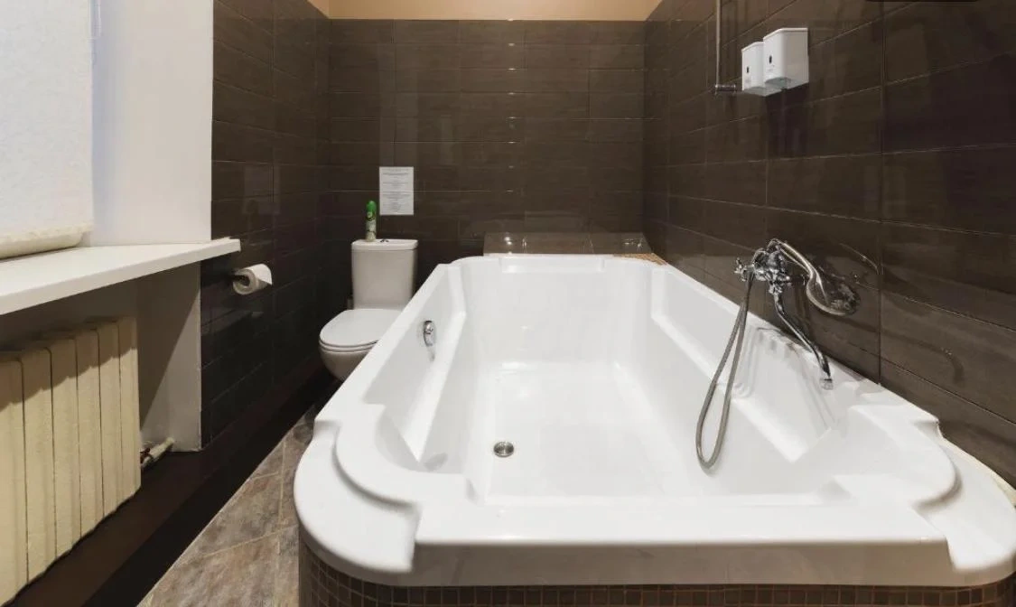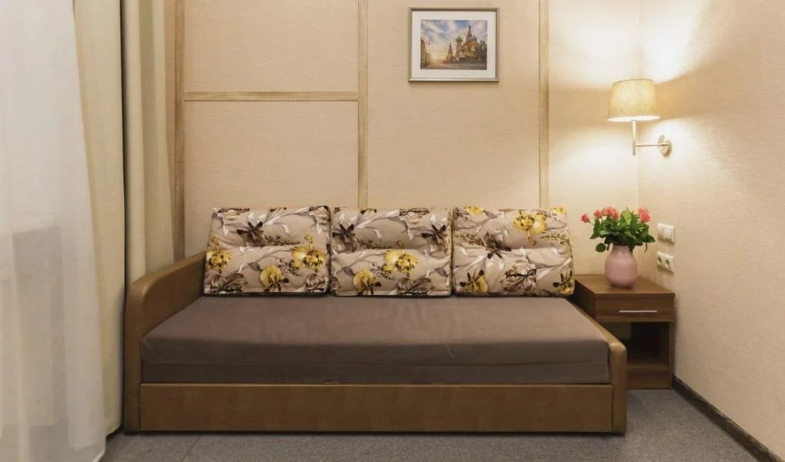 Грязный номер. Диван в пятнах, отрадный пуфик, на ковролине разводы, в ванной затхлый запас, разводы и налет. Оказалось (об этом нигде не написано), что в туалете стоит канализационный насос. Мало того, что он ужасно шумный, так еще и работает не только вовремя пользования туалетом. Спокойно выспаться точно не получится. Дополняет картину дребезжащий холодильник. Темный номер, совершенно не уютный. Не рекомендую от слова совсем