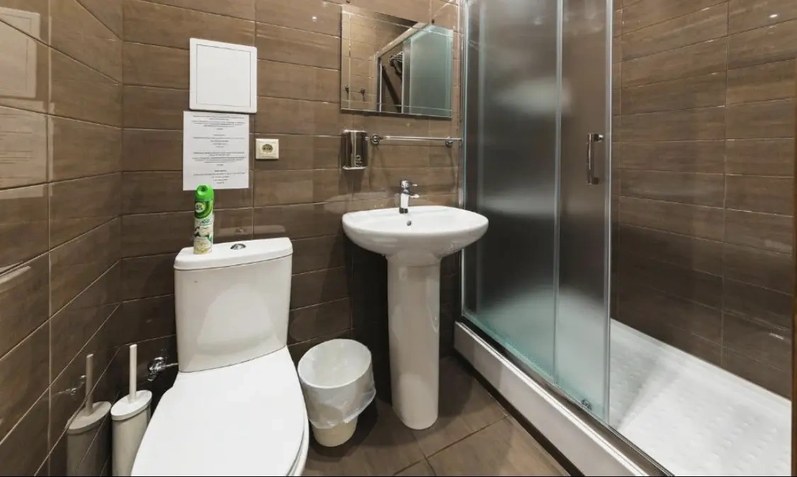 Запах канализации, на стене плесень, и отходящие от нее обои, ужас, грязно, все старое и грязное и ужасно пахнет. Насос в санузле гремел так, что невозможно спать. Дверь не открывается в санузле, она застревает в коврилине, которому миллион лет, и приходится со всей силы дергать дверь по ковролину, чтобы наконец то выйти из санузла. Во входной двери дырка. Зеркала в прихожей нет.
