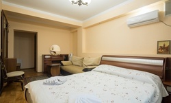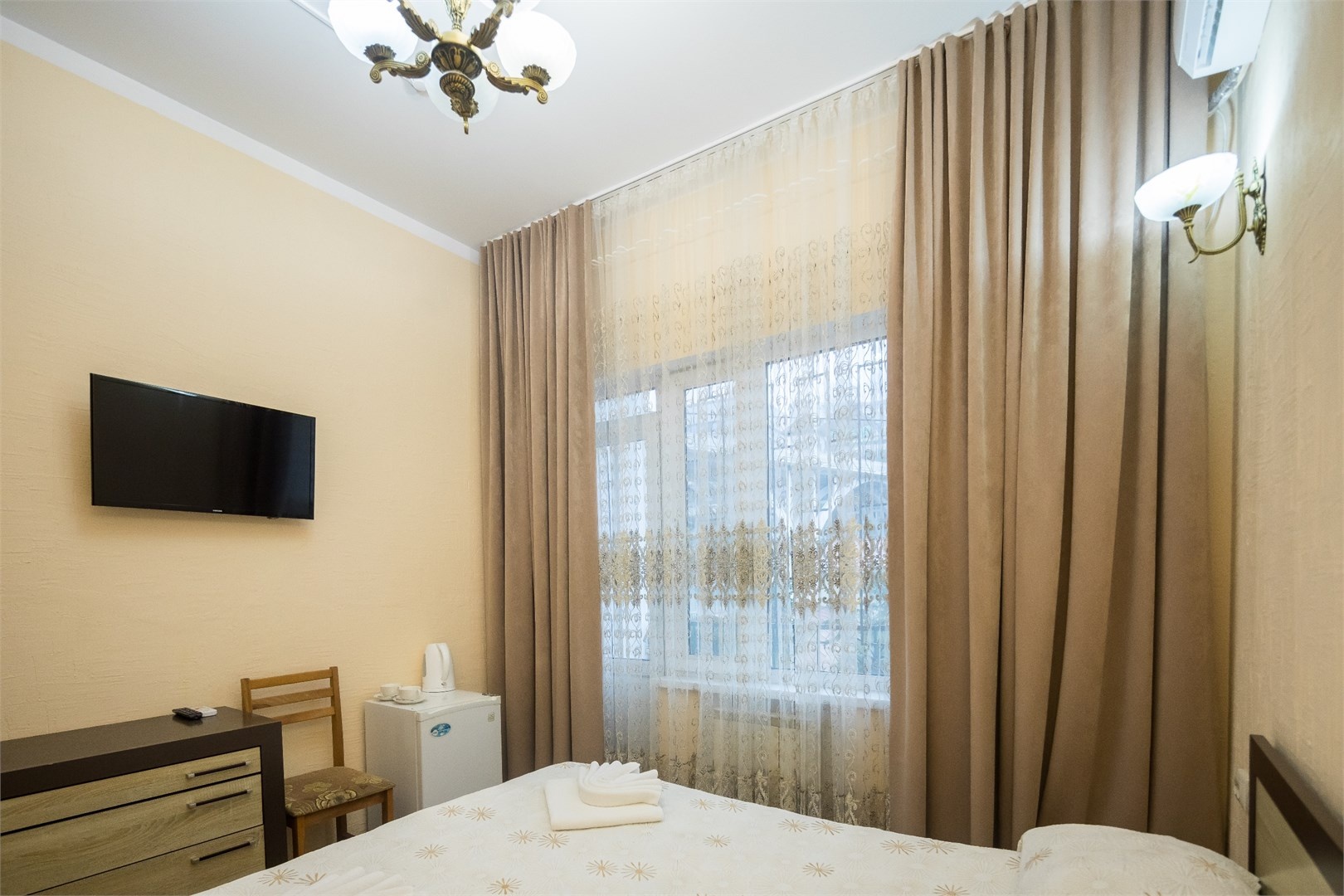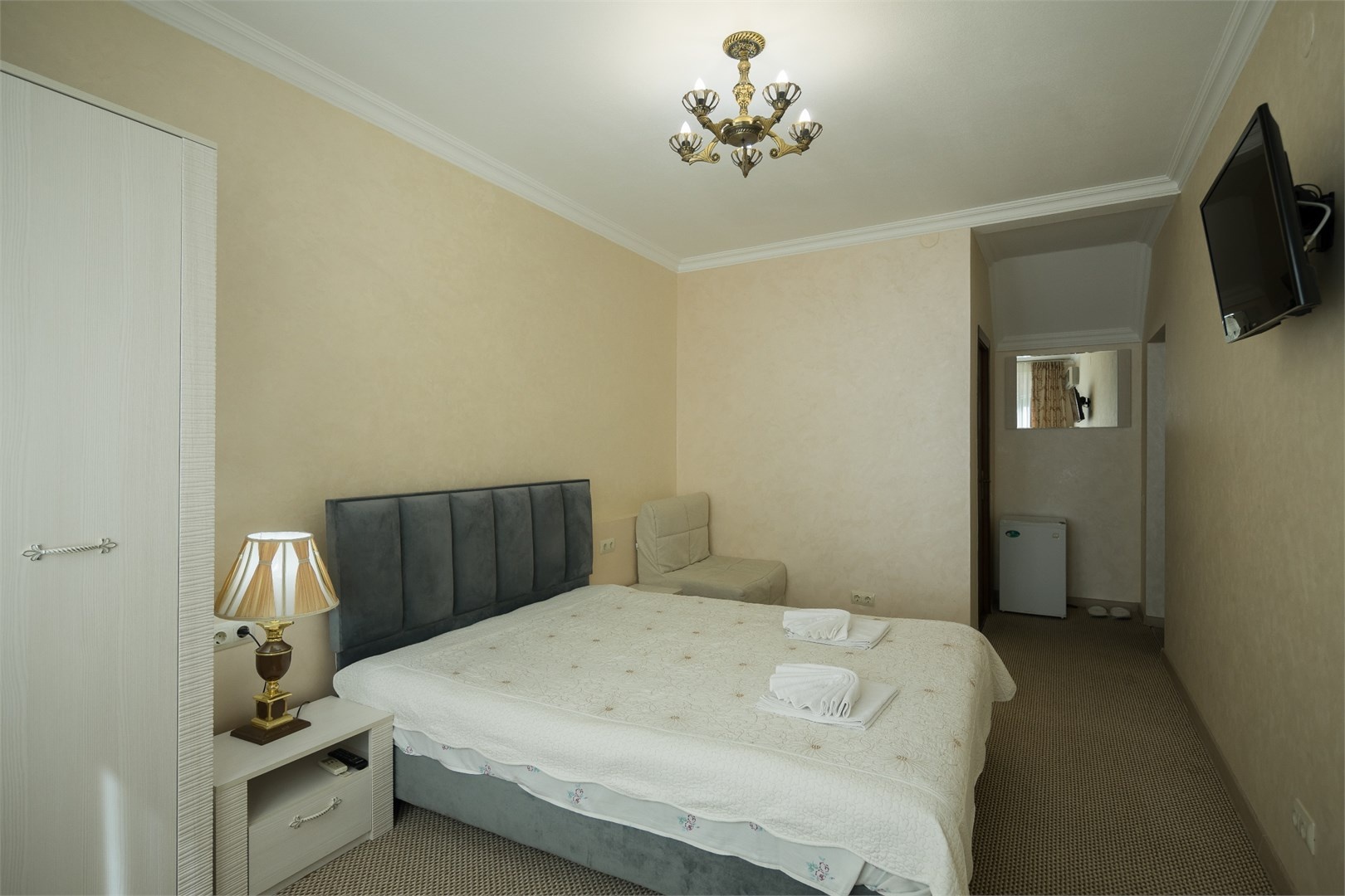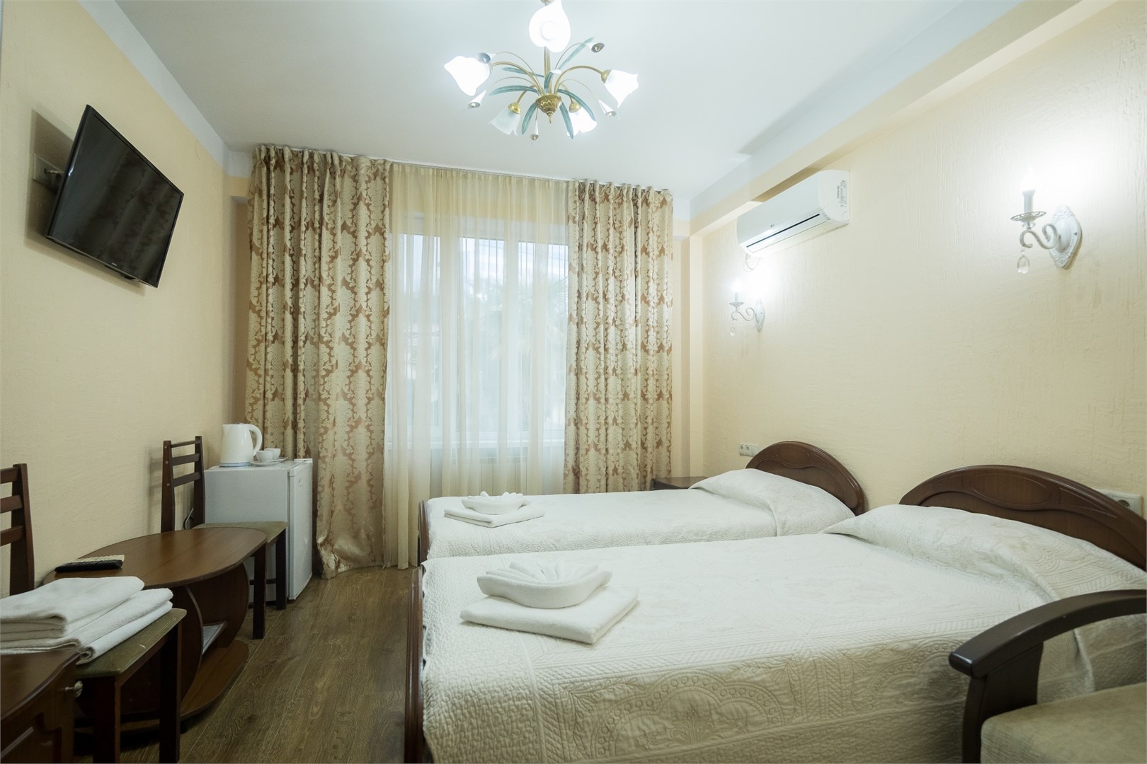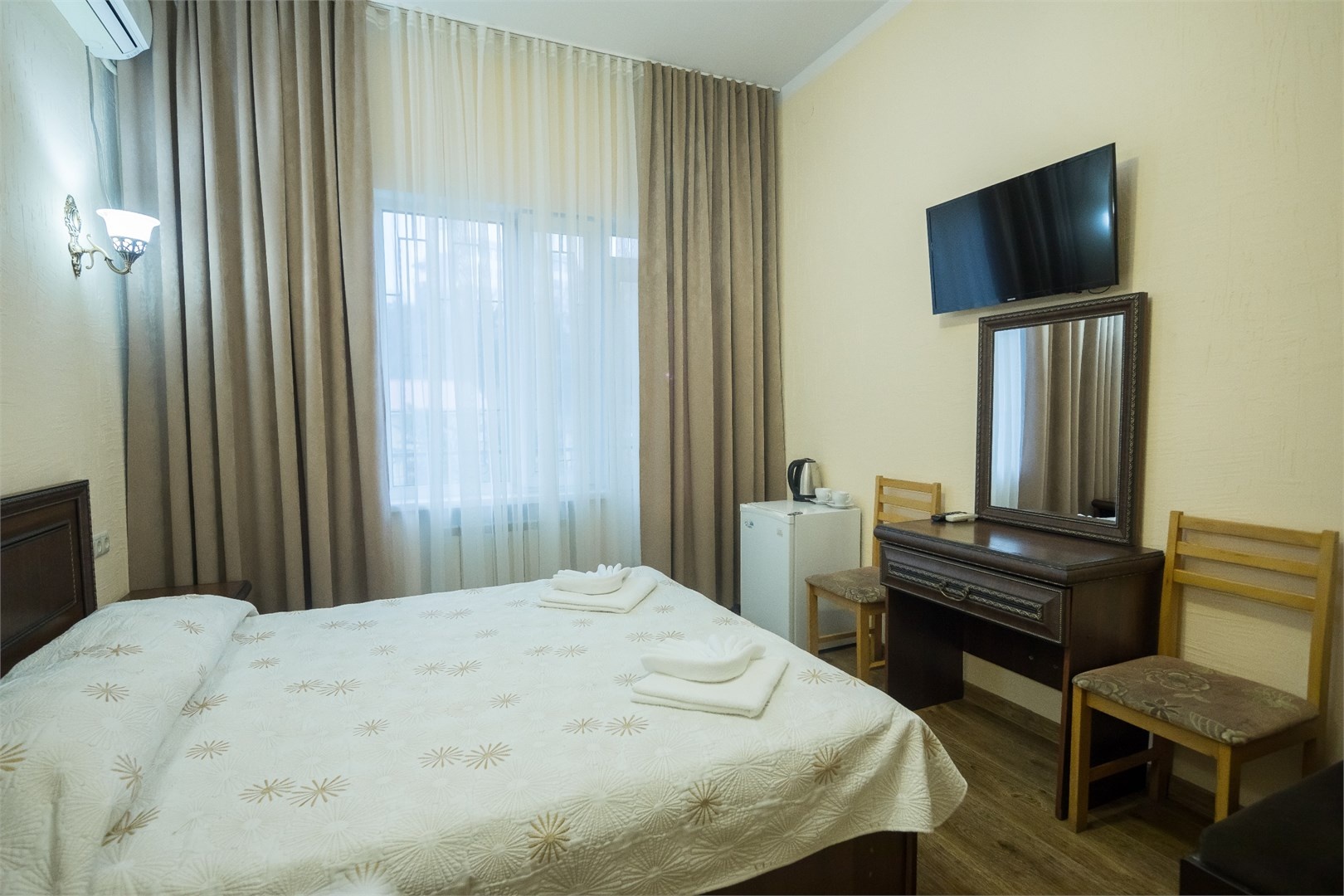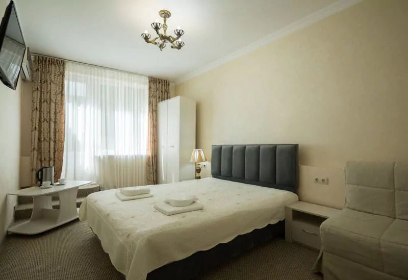 Все номера оборудованы удобными кроватями, сплит-системами, современными ТВ с плоским экраном, холодильниками, вместительными шкафами для одежды. В отдельных номерах есть мягкая мебель, сейфы для ценных вещей и балконы. В каждом номере индивидуальная ванная комната с набором полотенец, гигиенических принадлежностей, санузлом, раковиной и феном.