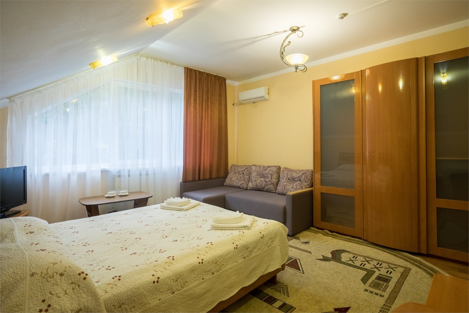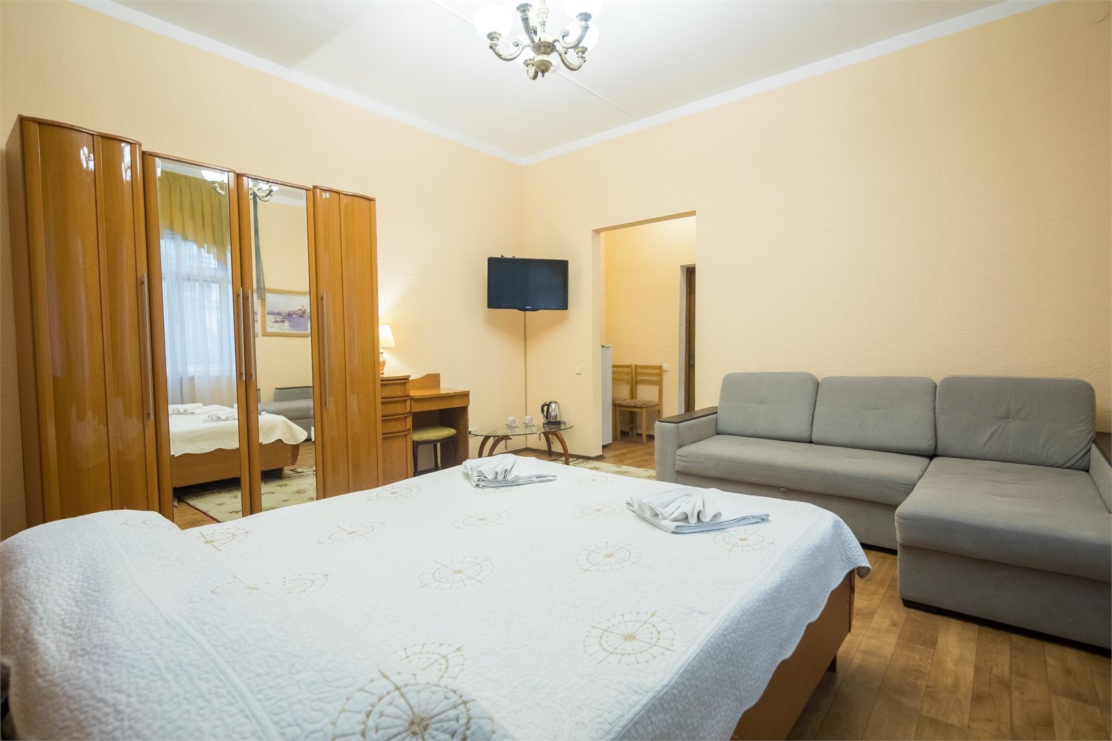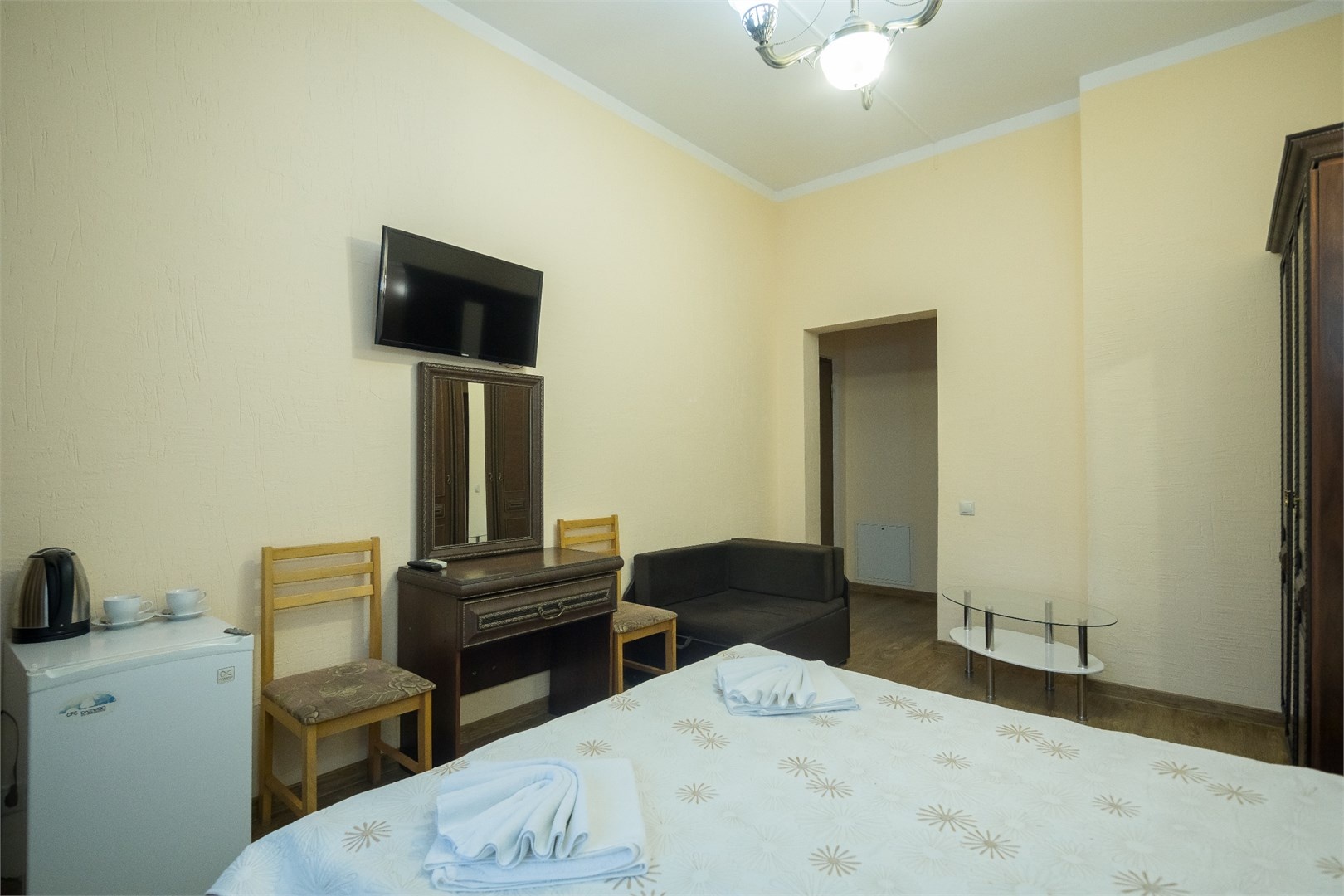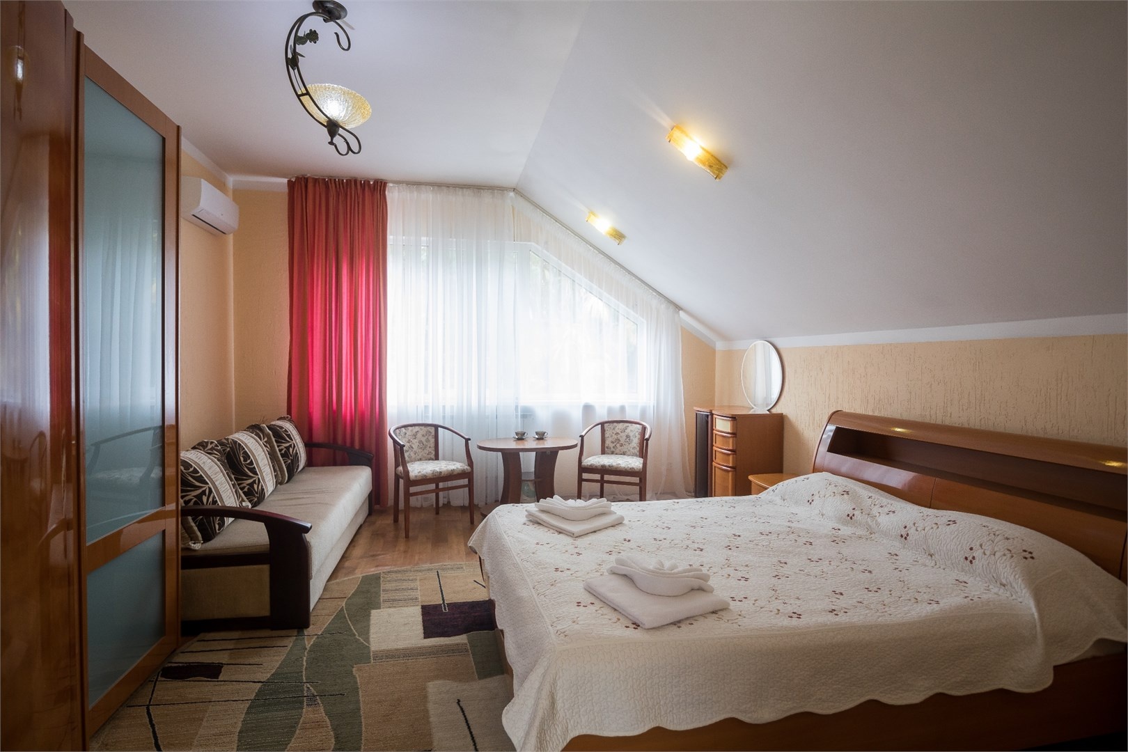 Все номера оборудованы удобными кроватями, сплит-системами, современными ТВ с плоским экраном, холодильниками, вместительными шкафами для одежды. В отдельных номерах есть мягкая мебель, сейфы для ценных вещей и балконы. В каждом номере индивидуальная ванная комната с набором полотенец, гигиенических принадлежностей, санузлом, раковиной и феном.