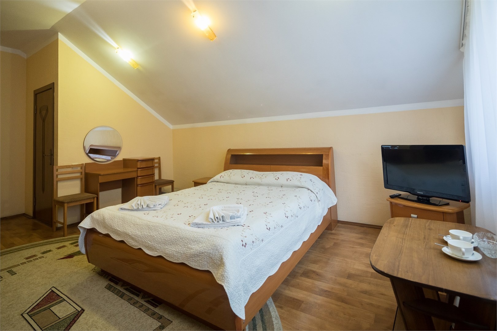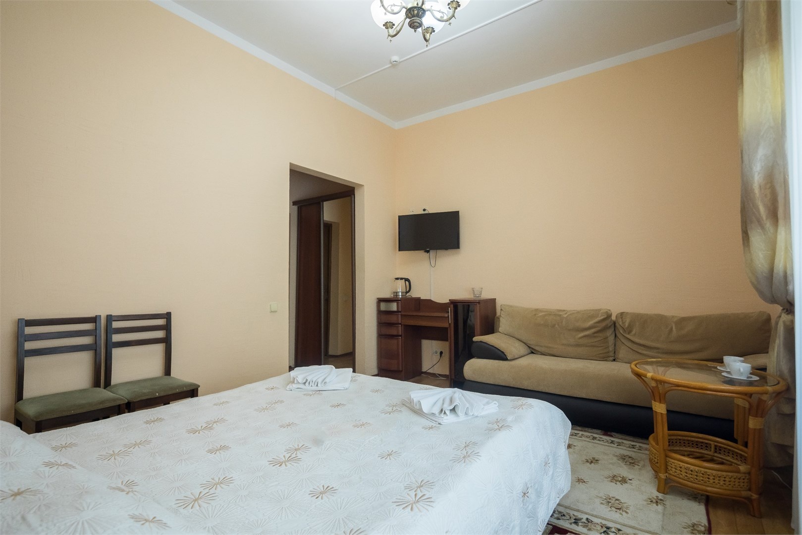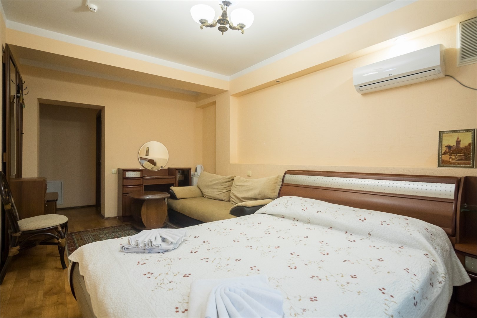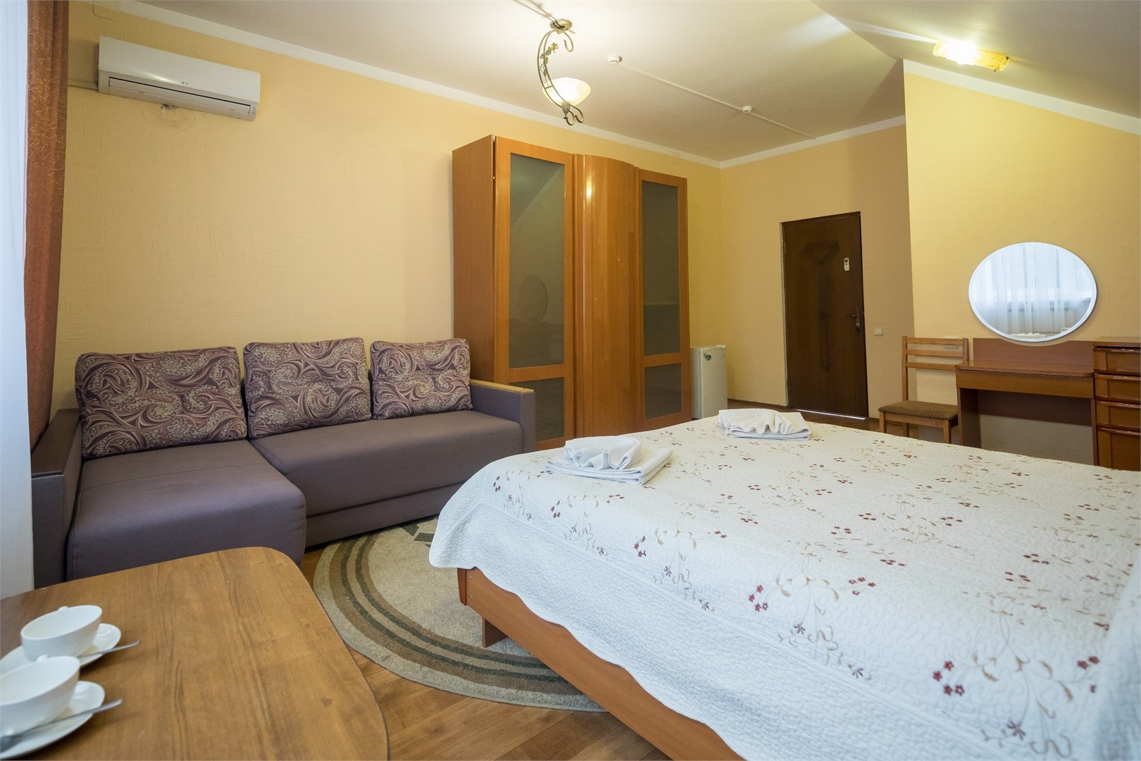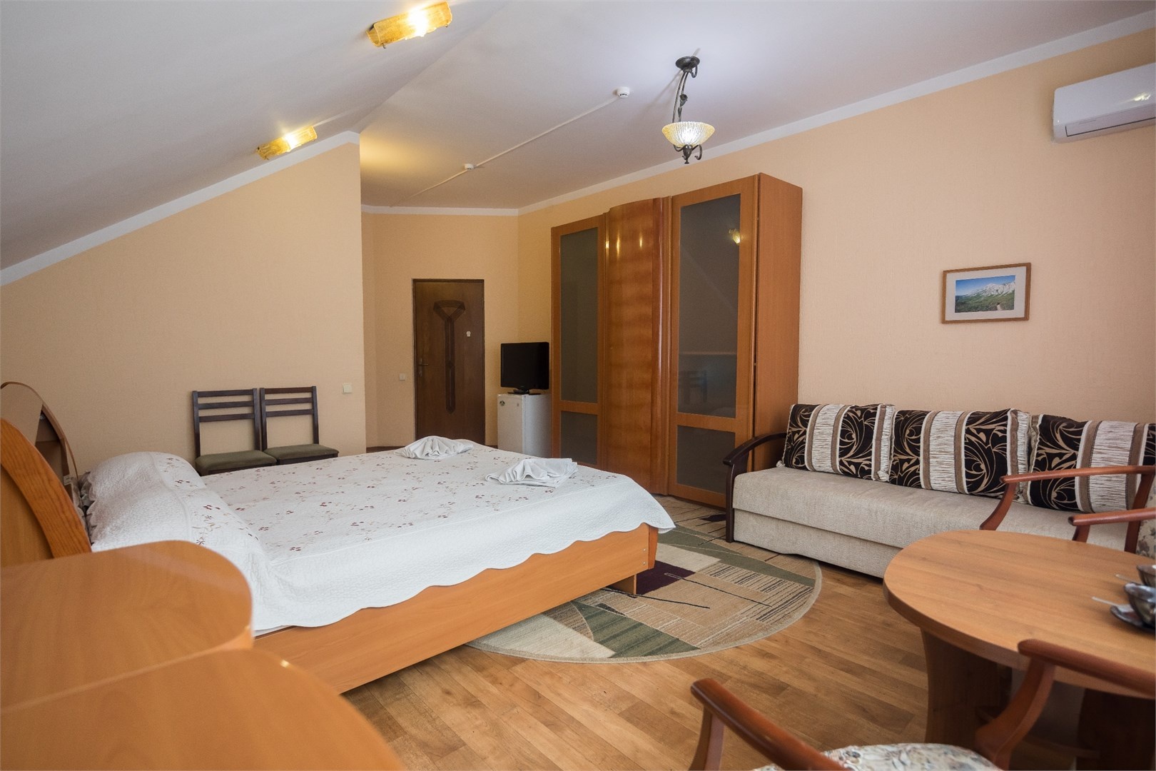 Все номера оборудованы удобными кроватями, сплит-системами, современными ТВ с плоским экраном, холодильниками, вместительными шкафами для одежды. В отдельных номерах есть мягкая мебель, сейфы для ценных вещей и балконы. В каждом номере индивидуальная ванная комната с набором полотенец, гигиенических принадлежностей, санузлом, раковиной и феном.