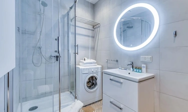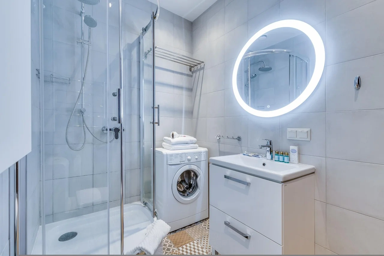 - в ванной комнате: душевая кабина, фен, стиральная машина, комплекты полотенец, тапочки, зубные щетки, жидкое мыло, гель для душа, шампунь, стиральный порошок;