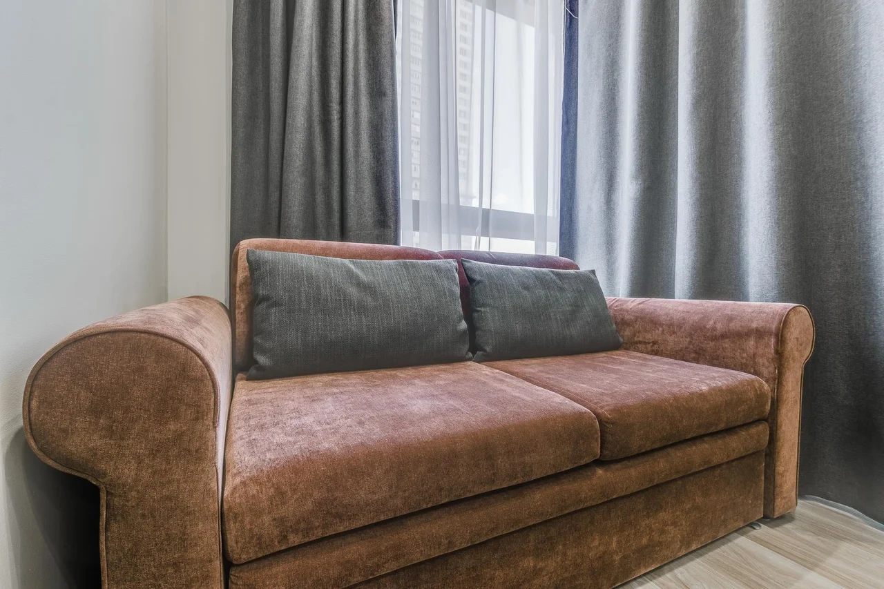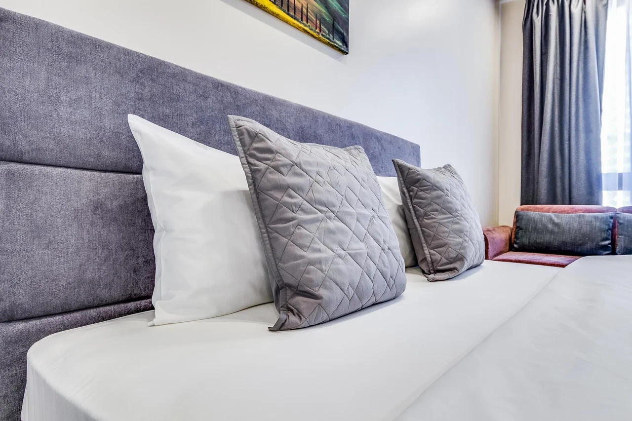 - двуспальная кровать и раскладной диван. Белоснежное постельное бельё;